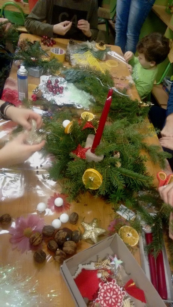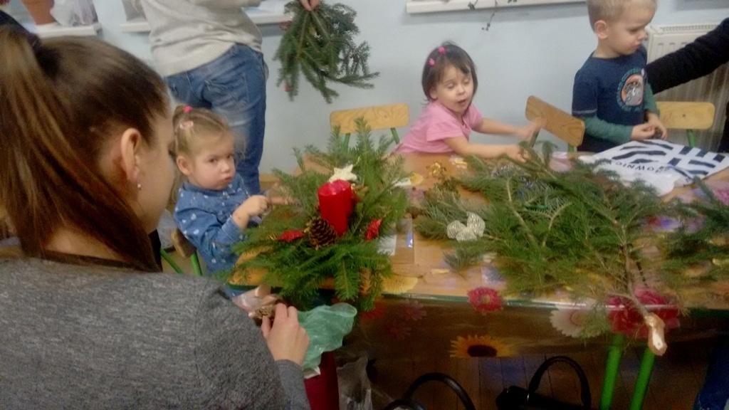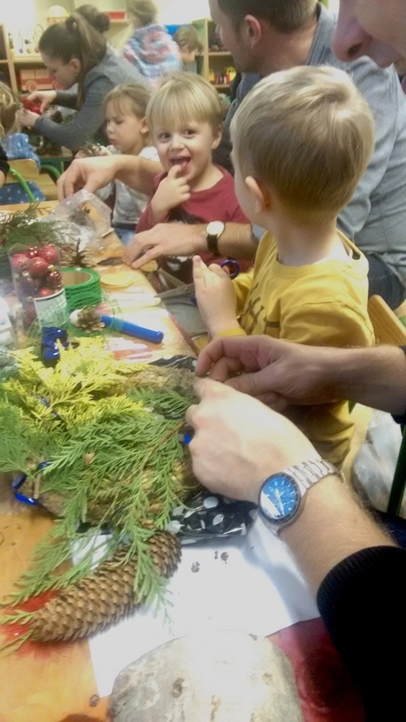 Miło było 15-go grudnia w naszej grupie Smyków. W rodzinnej atmosferze, pełnej radości- rodzice wraz z pociechami i nauczycielami wykonywali piękne stroiki bożonarodzeniowe. Wszyscy wykazali się wielką inwencją twórczą. Stroiki będą ozdabiały świąteczny stół na naszej wspólnej Wigilii, nadając niepowtarzalnego klimatu. Tegoroczne warsztaty zakończyły się występem naszych kochanych Milusińskich, którzy zaśpiewali swoim Rodzicom piosenkę o Świętym Mikołaju. Dziękujemy serdecznie Rodzicom, że znaleźli dla nas czas, a wszystkim życzymy zdrowych, spokojnych Świąt Bożego Narodzenia!