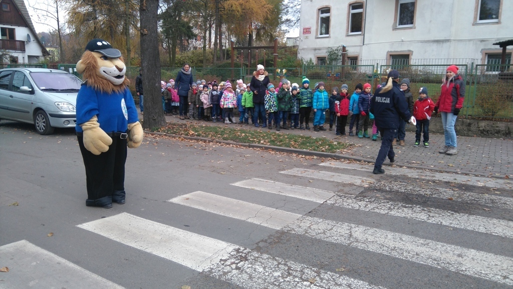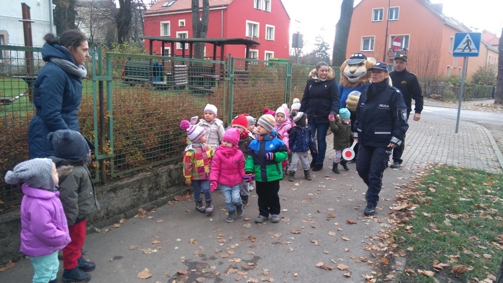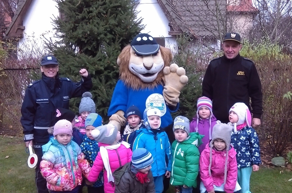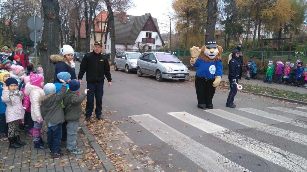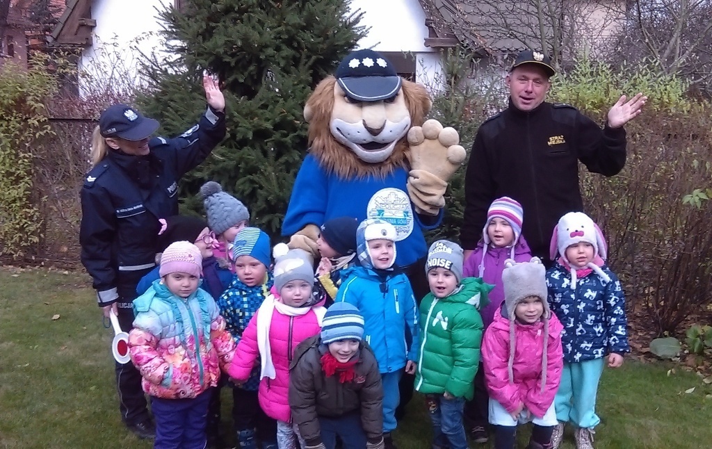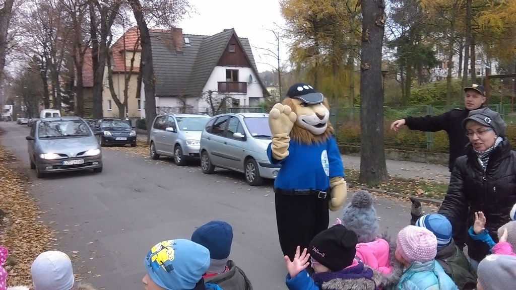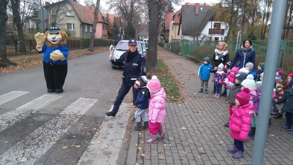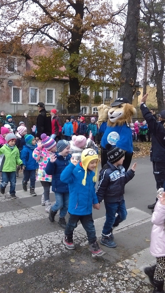 Dnia 10.11.2016 do naszego przedszkola zawitał niesamowity gość - komisarz Lew policjant, który nauczył nas bezpiecznie i prawidło przechodzić przez ulicę. Najpierw pokazał nam miejsce, gdzie przechodzi się przez ulicę i wytłumaczył co oznacza znak, który stoi przy przejściu dla pieszych. Przypomniał, gdzie mamy zatrzymać się na chodniku i w którą stronę najpierw spojrzeć. Kiedy już wszystko wiedzieliśmy mogliśmy przechodzić bezpiecznie przez przejście dla pieszych. Zajęcia w praktyce bardzo nam się podobały. Na pożegnanie zrobiliśmy sobie pamiątkowe zdjęcie z Komisarzem Lwem, panią policjantką oraz panem strażnikiem miejskim. To było bardzo pouczające spotkanie.