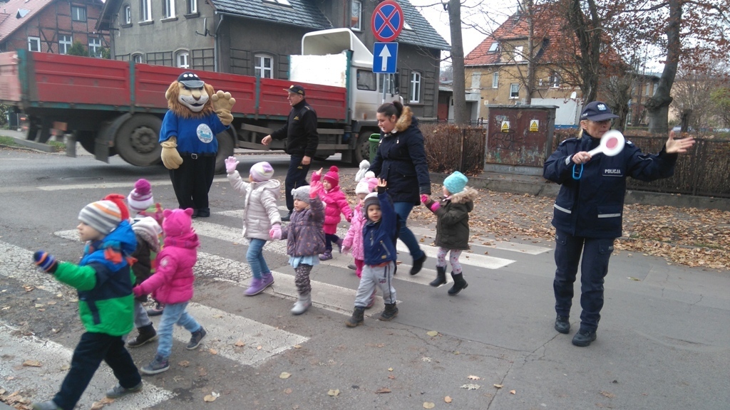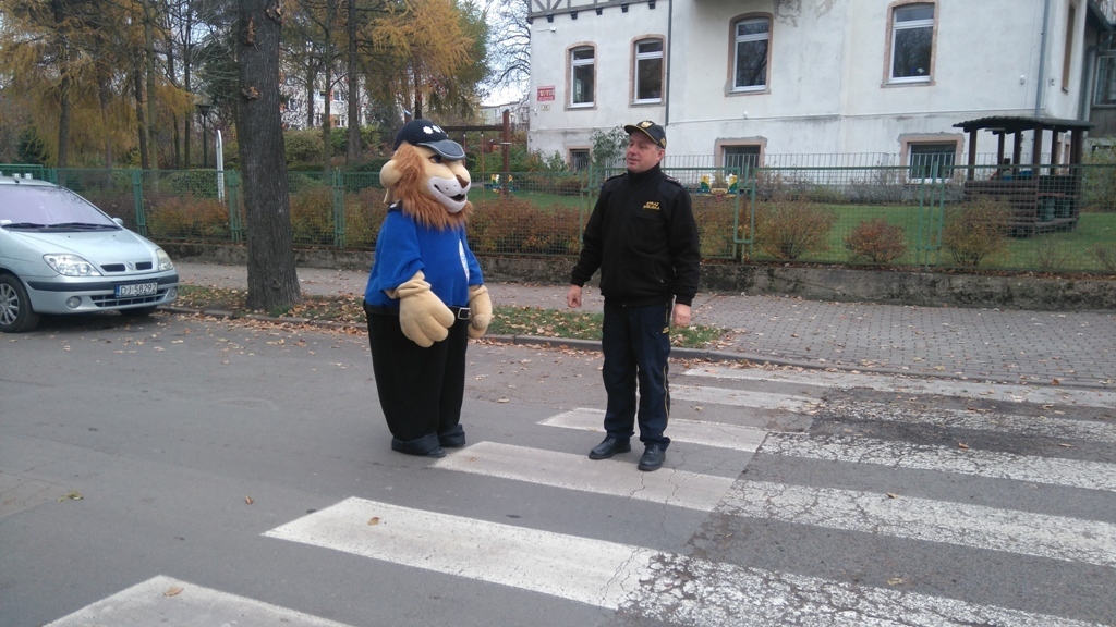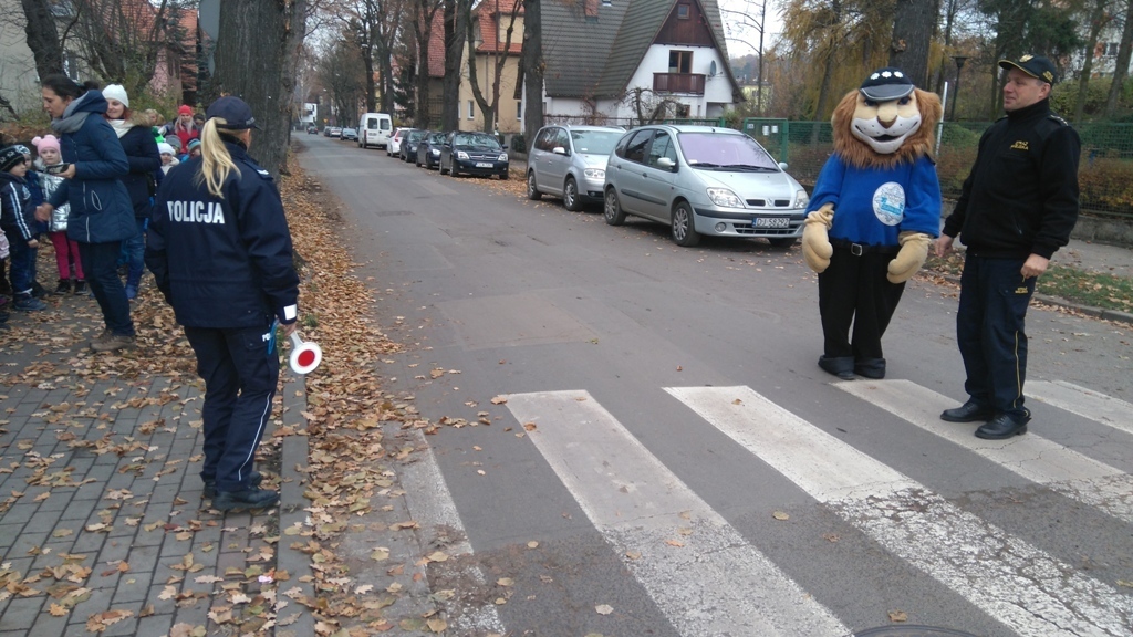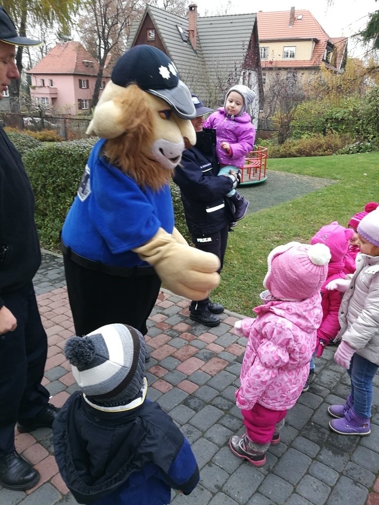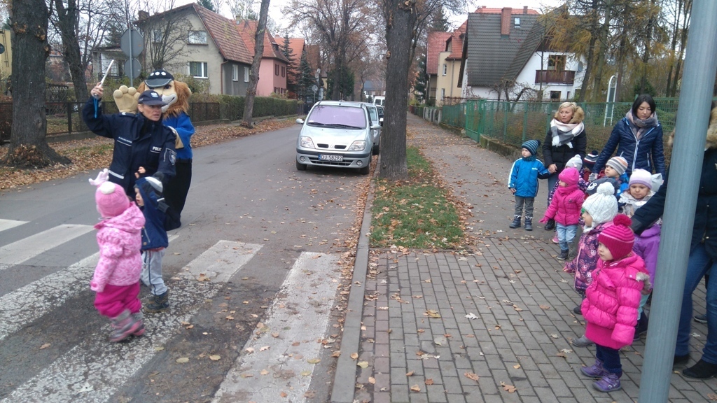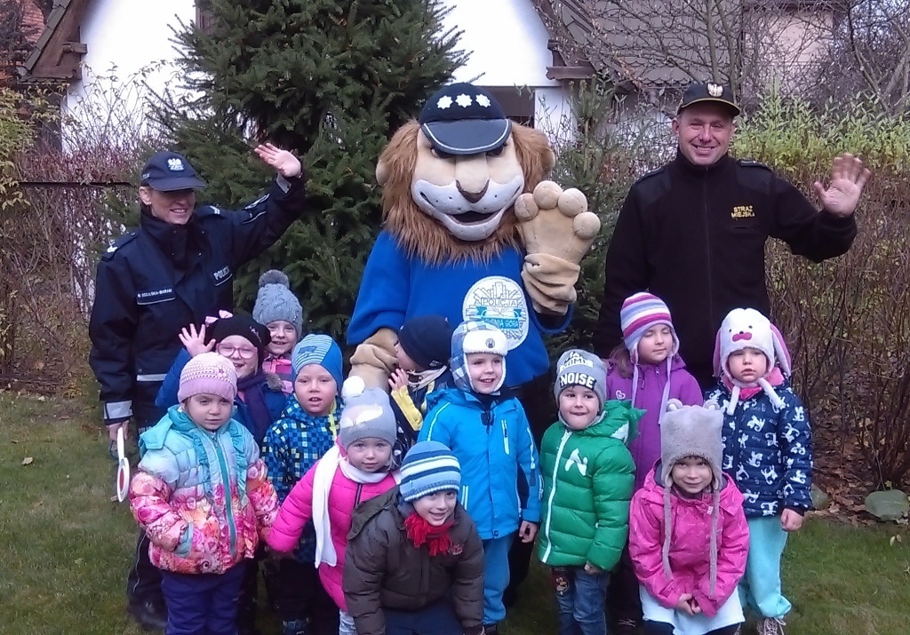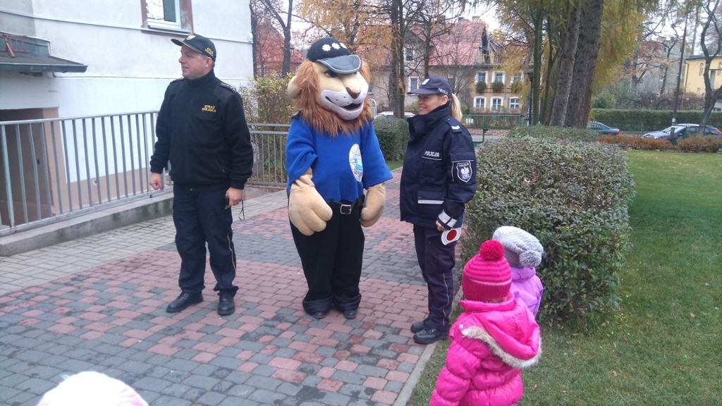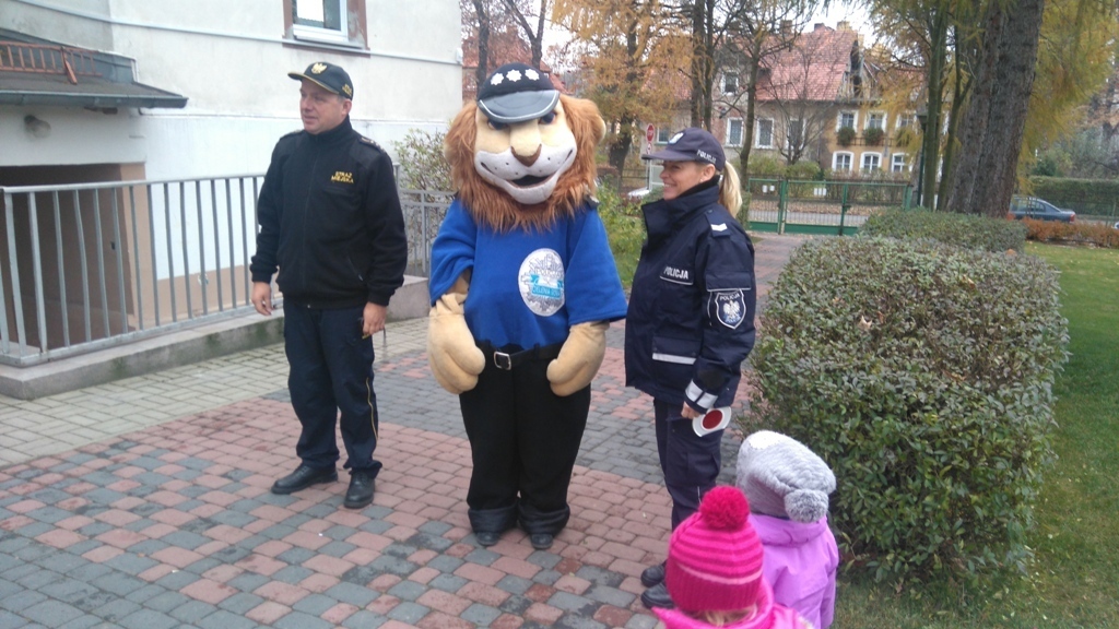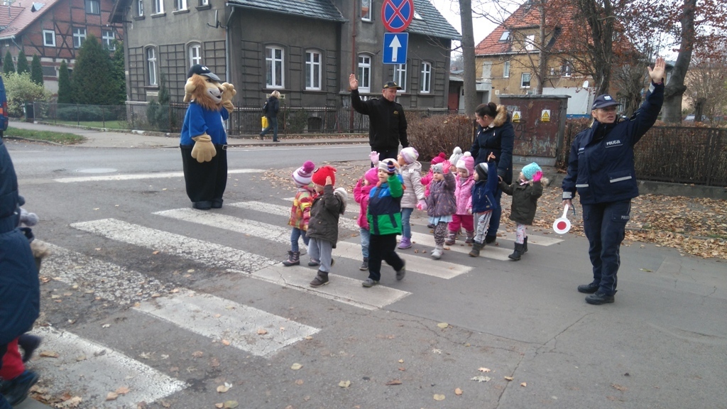 Dnia 10.11.2016 do naszego przedszkola zawitał niesamowity gość - komisarz Lew policjant, który nauczył nas bezpiecznie i prawidło przechodzić przez ulicę. Najpierw pokazał nam miejsce, gdzie przechodzi się przez ulicę i wytłumaczył co oznacza znak, który stoi przy przejściu dla pieszych. Przypomniał, gdzie mamy zatrzymać się na chodniku i w którą stronę najpierw spojrzeć. Kiedy już wszystko wiedzieliśmy mogliśmy przechodzić bezpiecznie przez przejście dla pieszych. Zajęcia w praktyce bardzo nam się podobały. Na pożegnanie zrobiliśmy sobie pamiątkowe zdjęcie z Komisarzem Lwem, panią policjantką oraz panem strażnikiem miejskim. To było bardzo pouczające spotkanie.