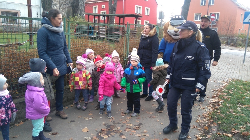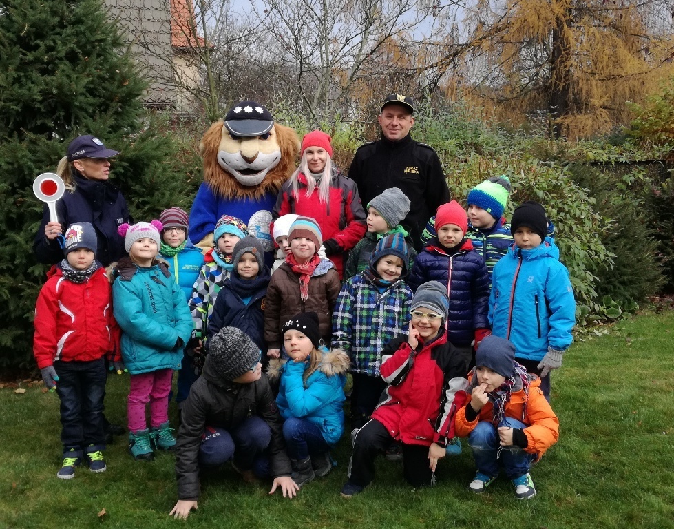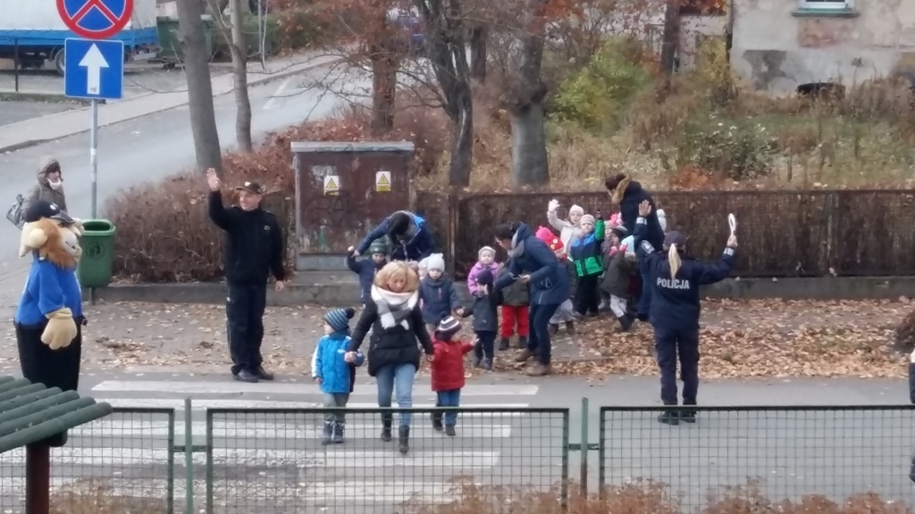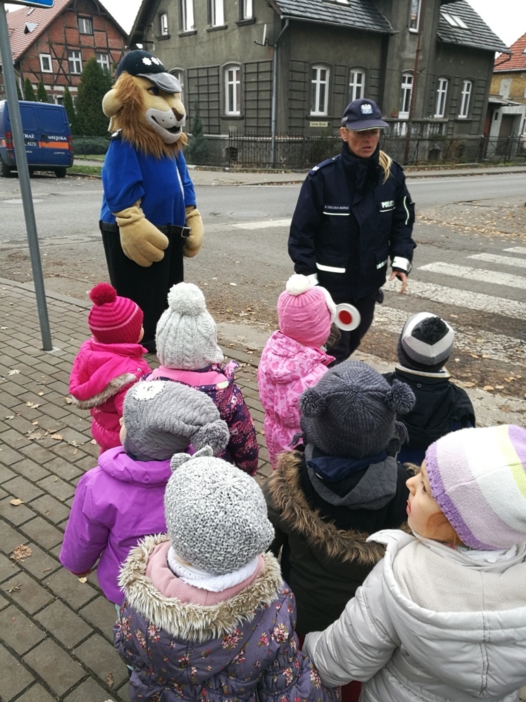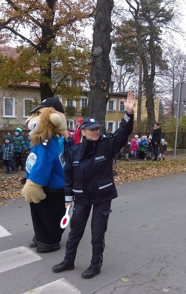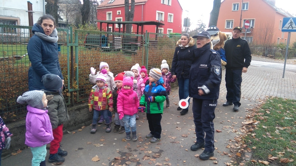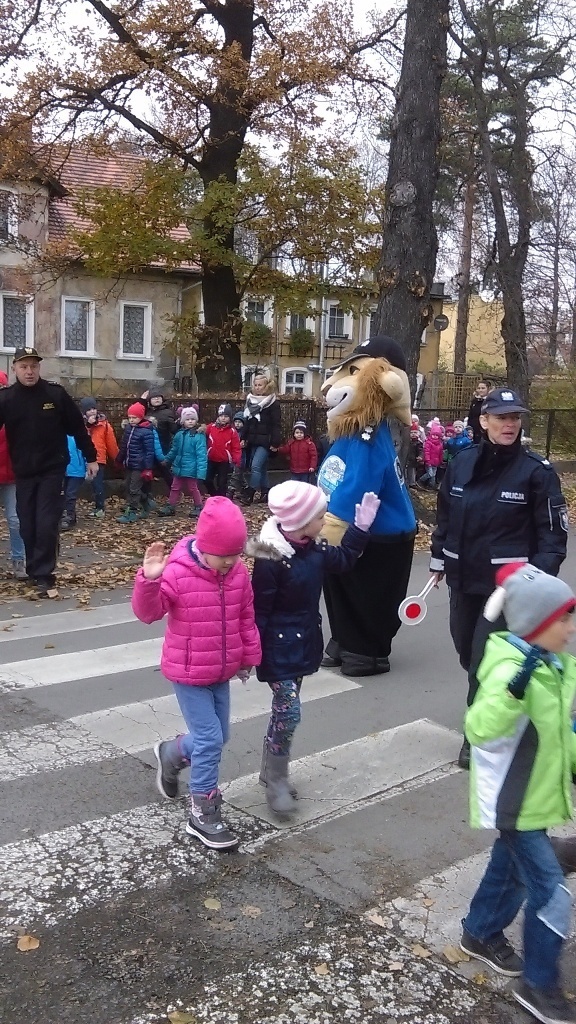 Dnia 10.11.2016 do naszego przedszkola zawitał niesamowity gość - komisarz Lew policjant, który nauczył nas bezpiecznie i prawidło przechodzić przez ulicę. Najpierw pokazał nam miejsce, gdzie przechodzi się przez ulicę i wytłumaczył co oznacza znak, który stoi przy przejściu dla pieszych. Przypomniał, gdzie mamy zatrzymać się na chodniku i w którą stronę najpierw spojrzeć. Kiedy już wszystko wiedzieliśmy mogliśmy przechodzić bezpiecznie przez przejście dla pieszych. Zajęcia w praktyce bardzo nam się podobały. Na pożegnanie zrobiliśmy sobie pamiątkowe zdjęcie z Komisarzem Lwem, panią policjantką oraz panem strażnikiem miejskim. To było bardzo pouczające spotkanie.