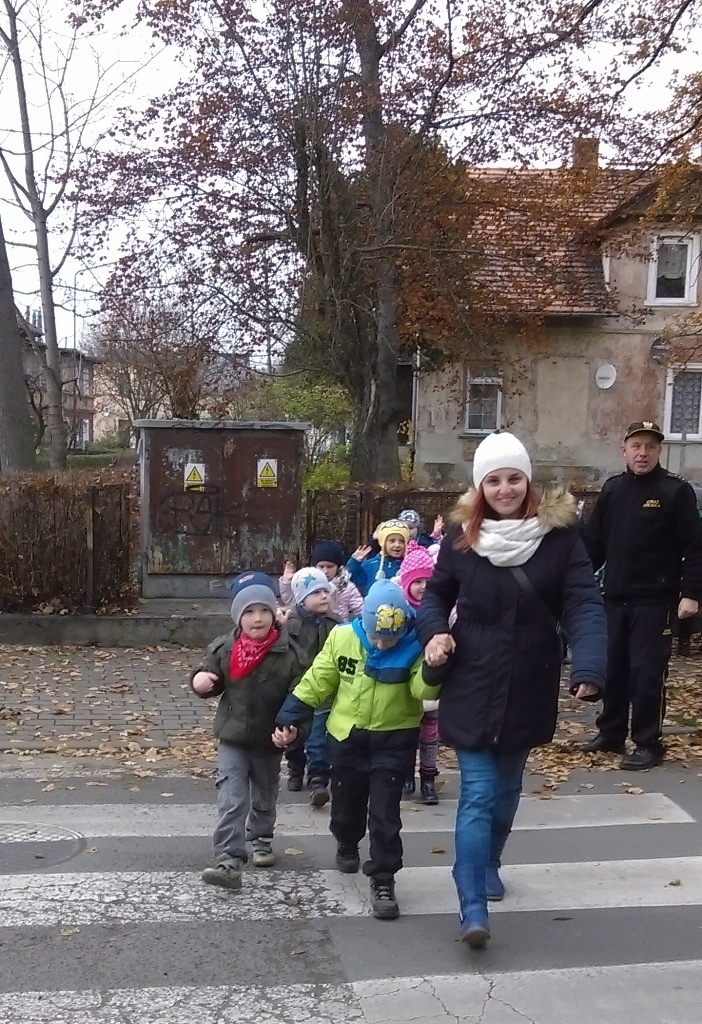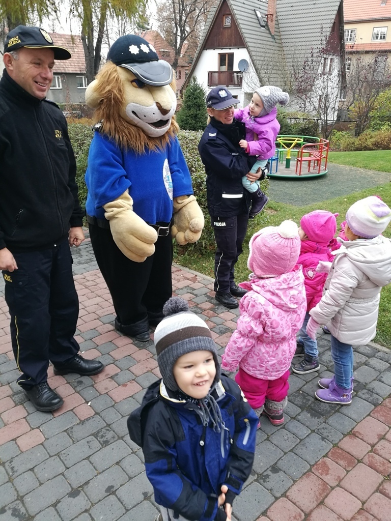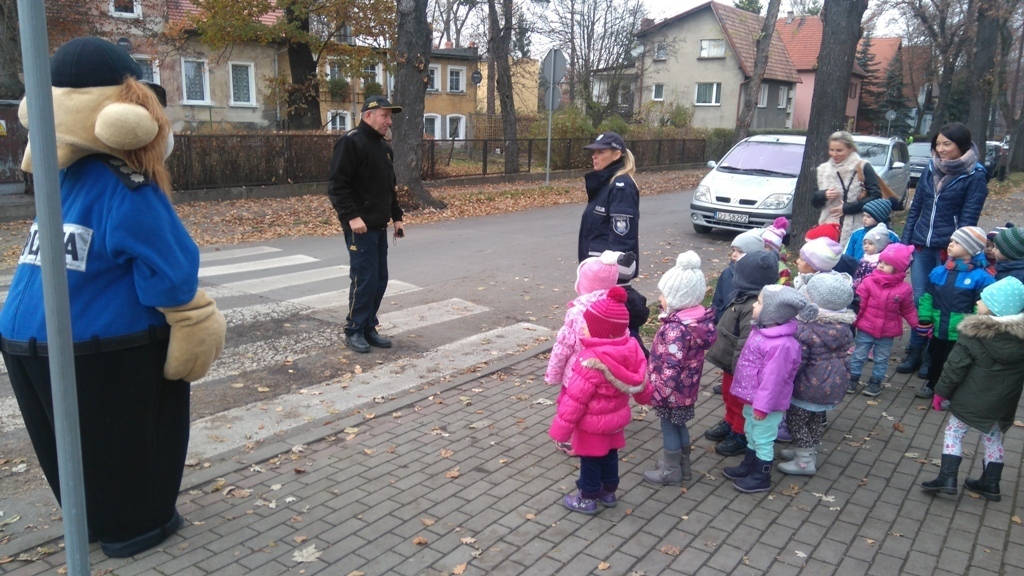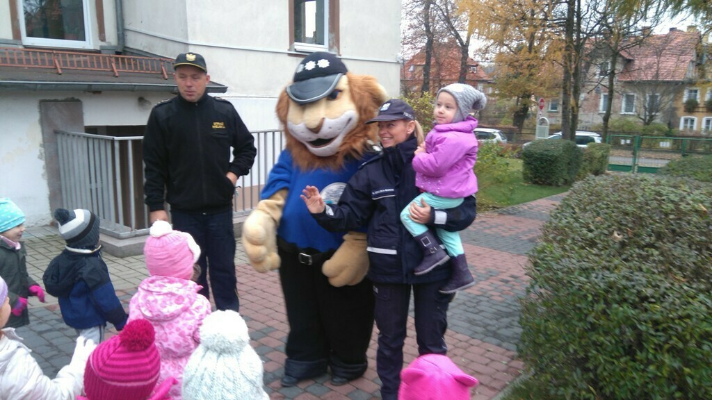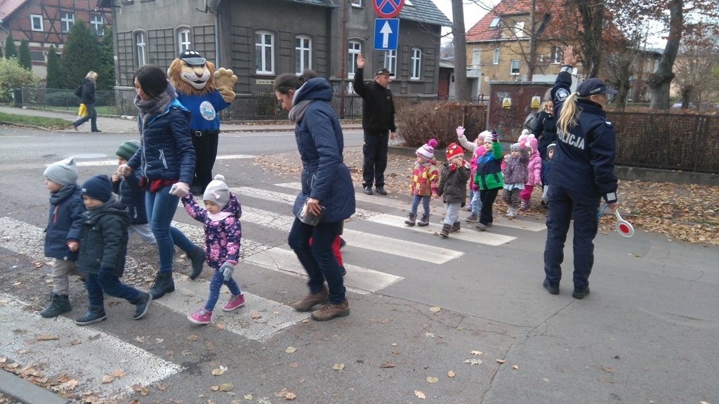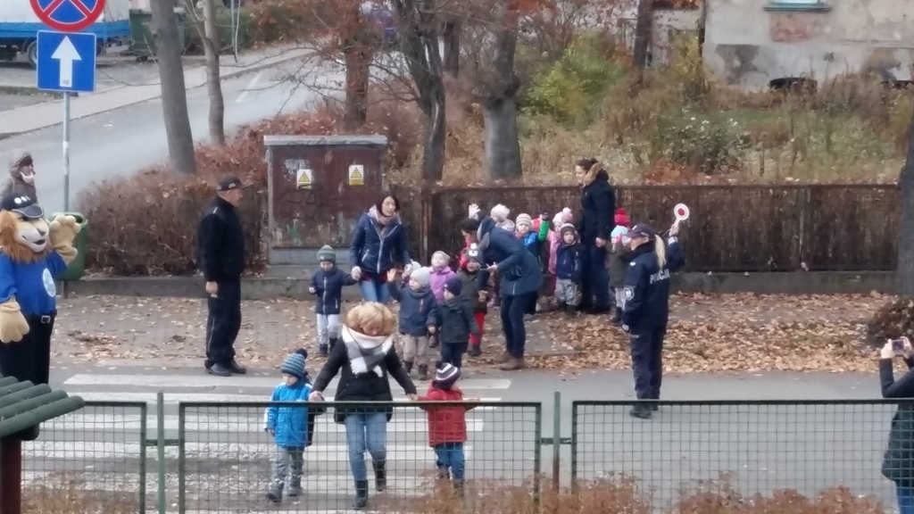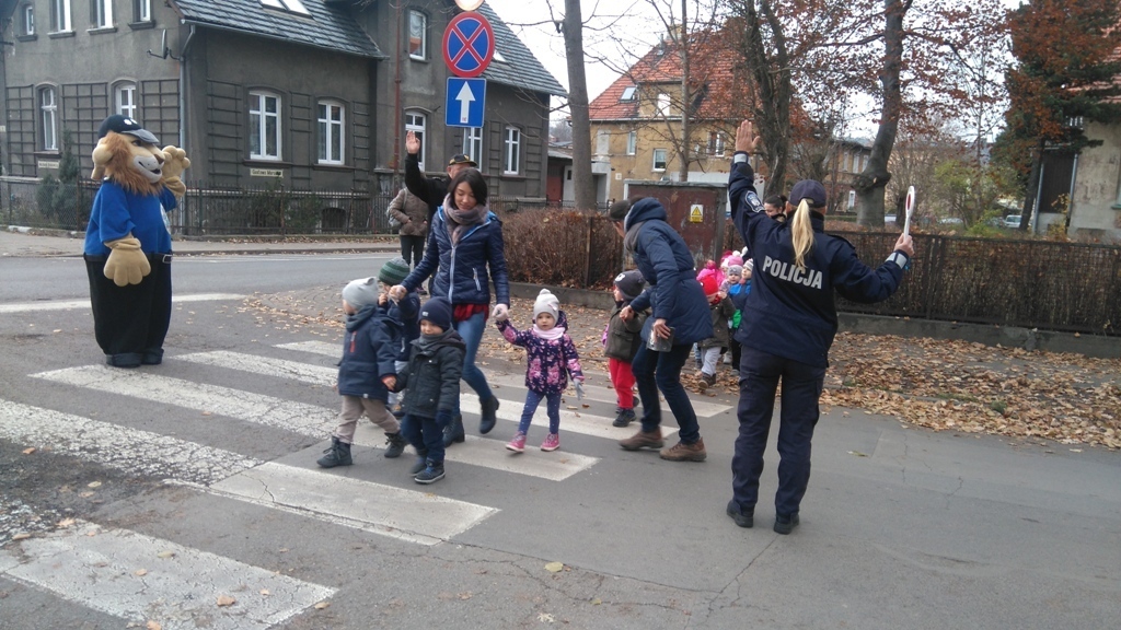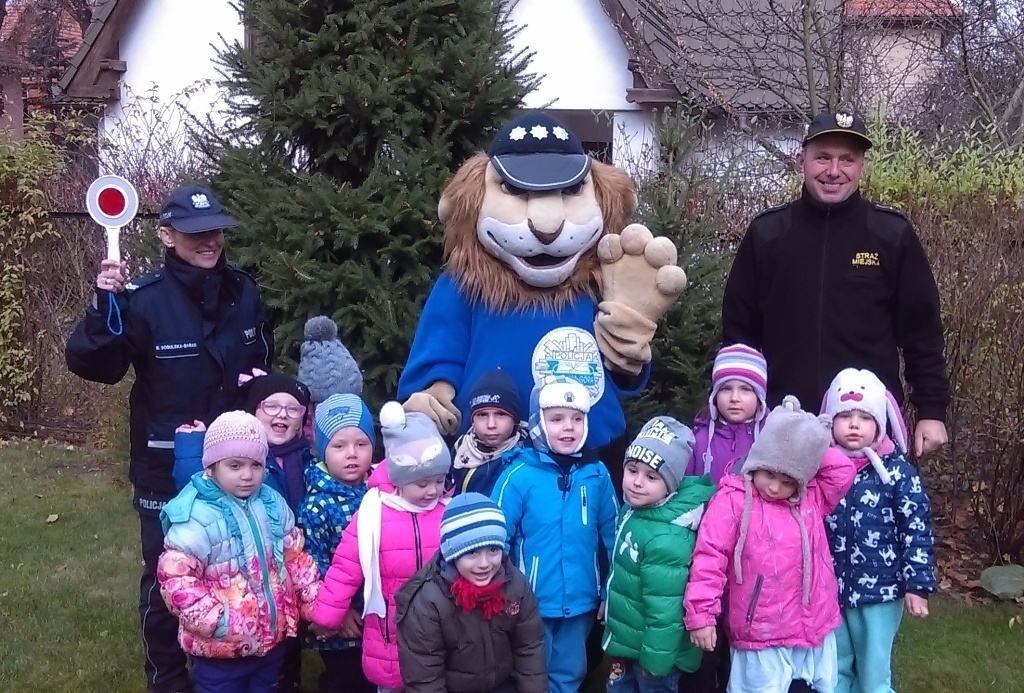 Dnia 10.11.2016 do naszego przedszkola zawitał niesamowity gość - komisarz Lew policjant, który nauczył nas bezpiecznie i prawidło przechodzić przez ulicę. Najpierw pokazał nam miejsce, gdzie przechodzi się przez ulicę i wytłumaczył co oznacza znak, który stoi przy przejściu dla pieszych. Przypomniał, gdzie mamy zatrzymać się na chodniku i w którą stronę najpierw spojrzeć. Kiedy już wszystko wiedzieliśmy mogliśmy przechodzić bezpiecznie przez przejście dla pieszych. Zajęcia w praktyce bardzo nam się podobały. Na pożegnanie zrobiliśmy sobie pamiątkowe zdjęcie z Komisarzem Lwem, panią policjantką oraz panem strażnikiem miejskim. To było bardzo pouczające spotkanie.