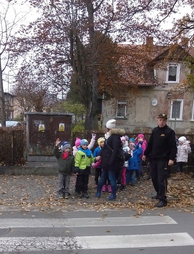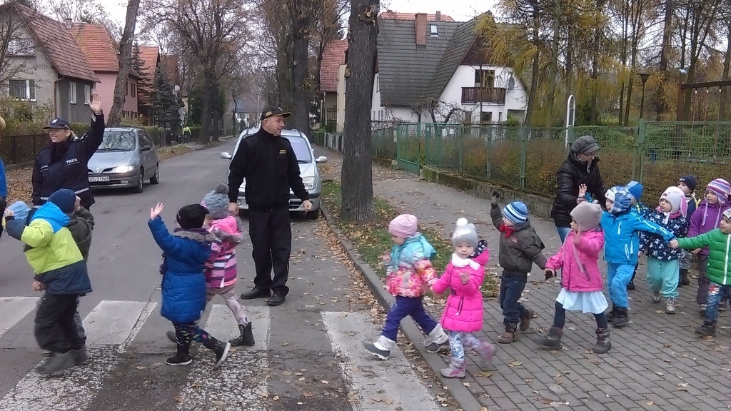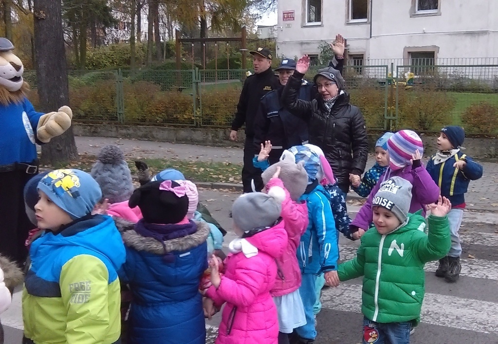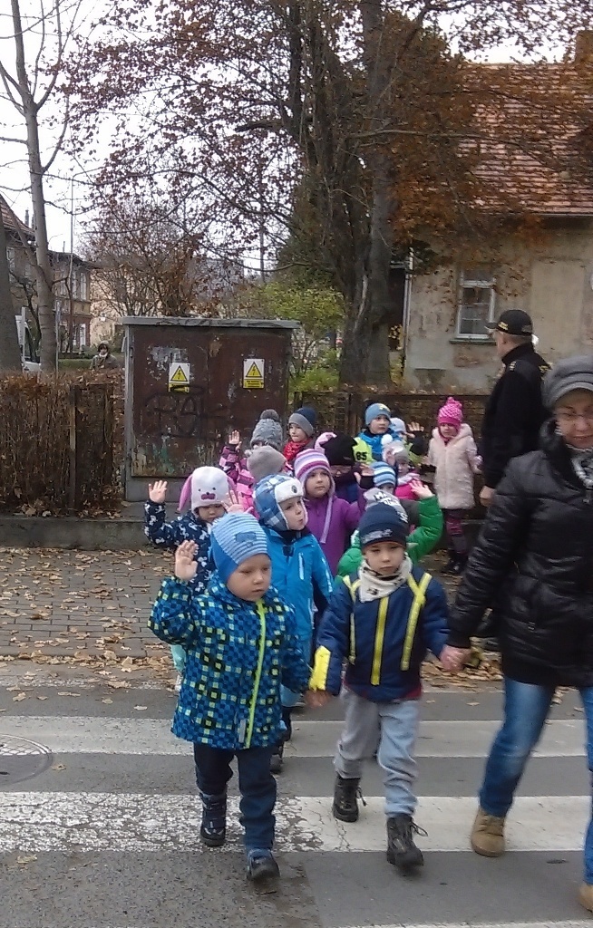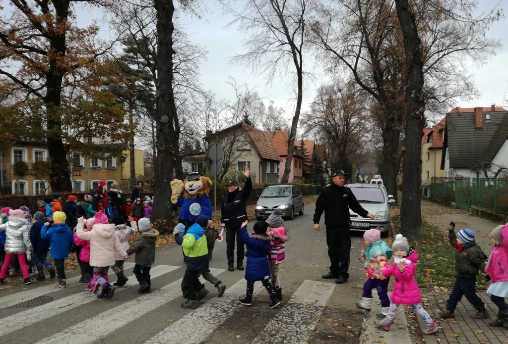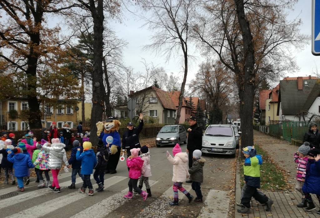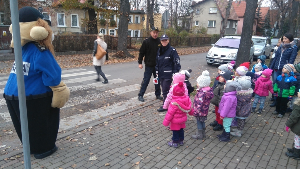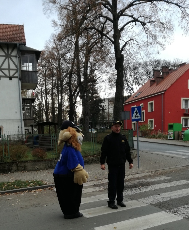 Dnia 10.11.2016 do naszego przedszkola zawitał niesamowity gość - komisarz Lew policjant, który nauczył nas bezpiecznie i prawidło przechodzić przez ulicę. Najpierw pokazał nam miejsce, gdzie przechodzi się przez ulicę i wytłumaczył co oznacza znak, który stoi przy przejściu dla pieszych. Przypomniał, gdzie mamy zatrzymać się na chodniku i w którą stronę najpierw spojrzeć. Kiedy już wszystko wiedzieliśmy mogliśmy przechodzić bezpiecznie przez przejście dla pieszych. Zajęcia w praktyce bardzo nam się podobały. Na pożegnanie zrobiliśmy sobie pamiątkowe zdjęcie z Komisarzem Lwem, panią policjantką oraz panem strażnikiem miejskim. To było bardzo pouczające spotkanie.