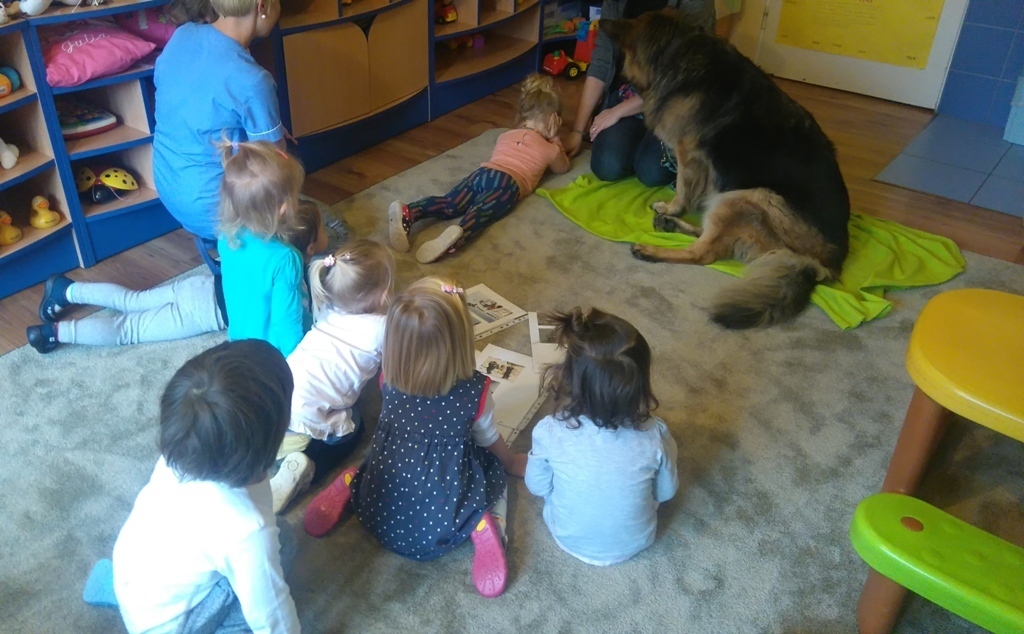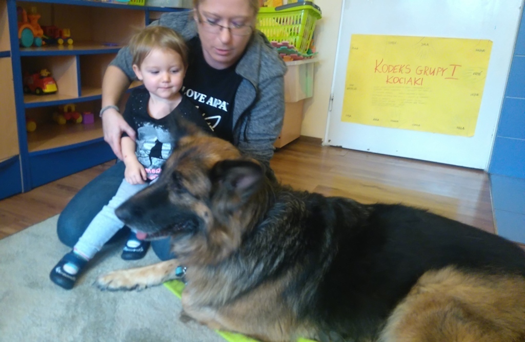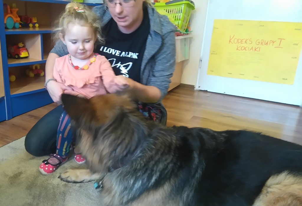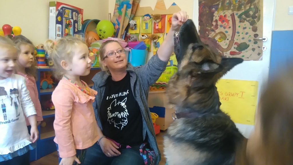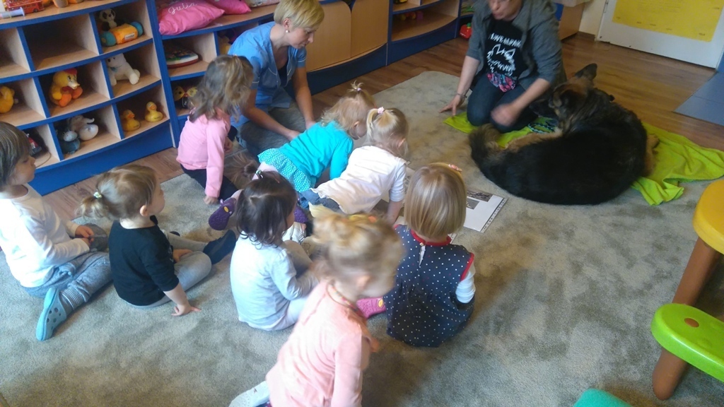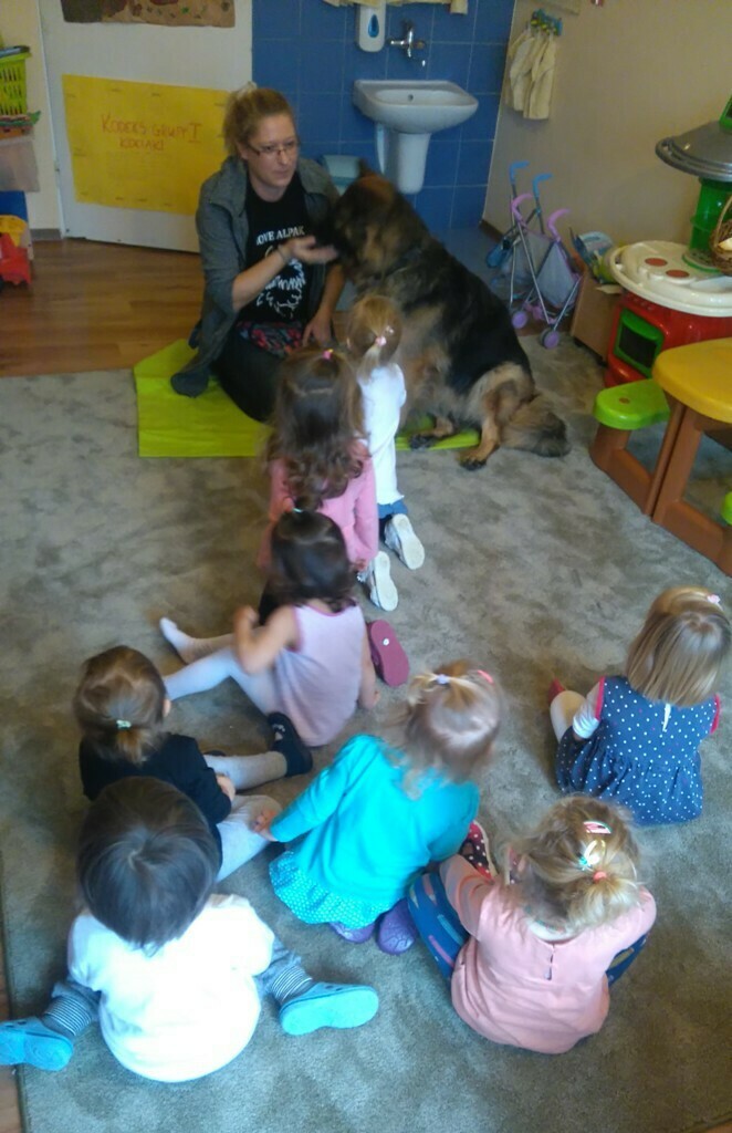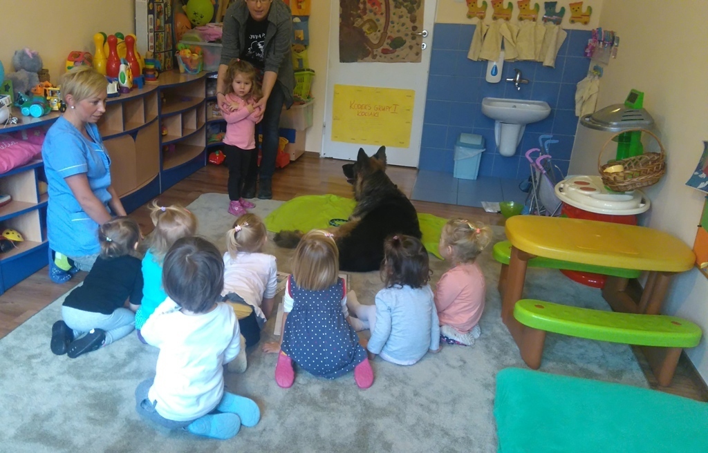 W dzisiejszym dniu spotkała nas niespodzianka. Odwiedziła nas pani Marta razem ze swoim wspaniałym psem. Zajęcia były bardzo ciekawe. Pani Marta nauczyła nas, jak postępować w momencie, kiedy na spacerze spotkamy nieznanego psa i jak się przed nim bronić, kiedy będzie chciał nas zaatakować. Mogliśmy również dać pieskowi ciasteczka, a także go pogłaskać. Ciekawe, czy będzie chciał nas jeszcze odwiedzić???