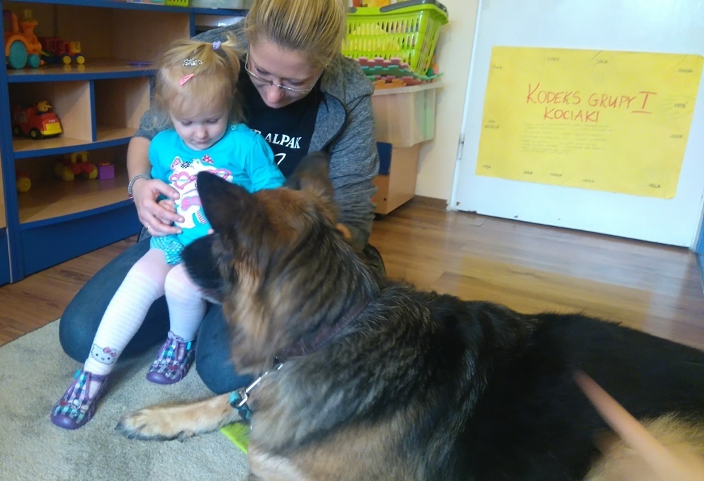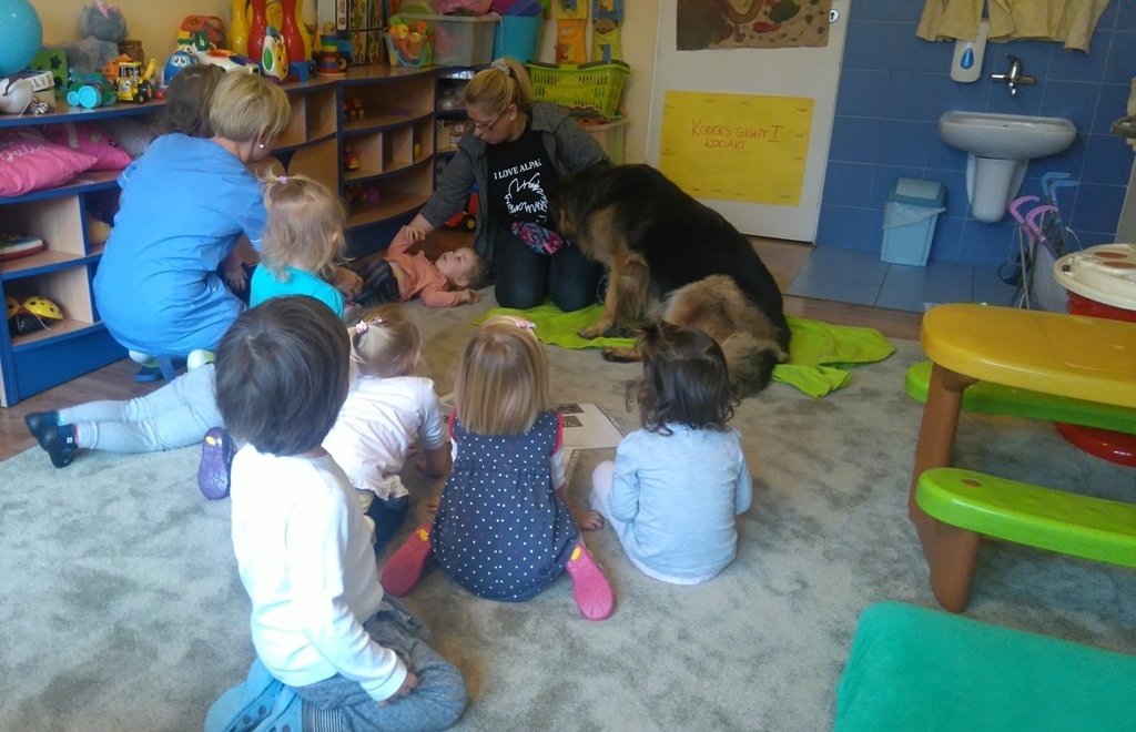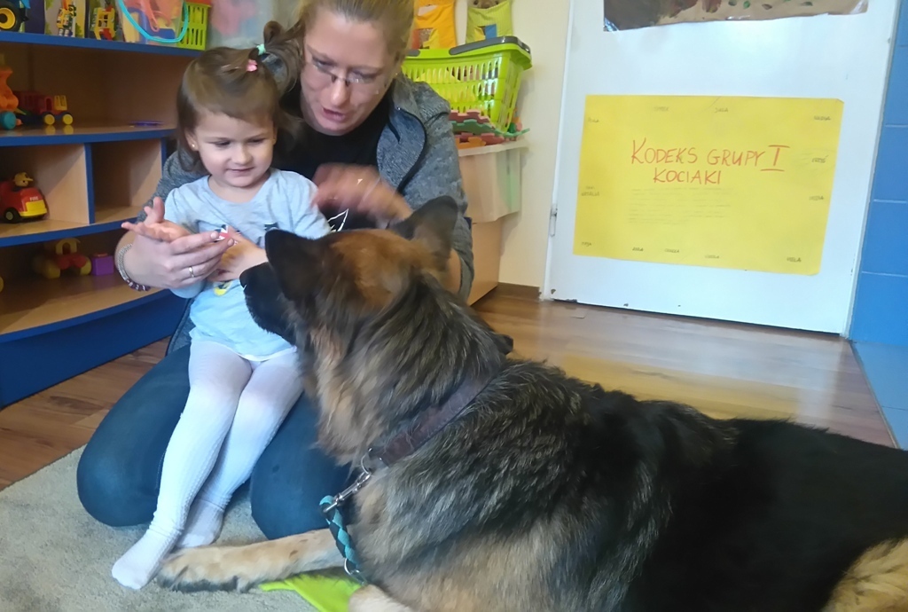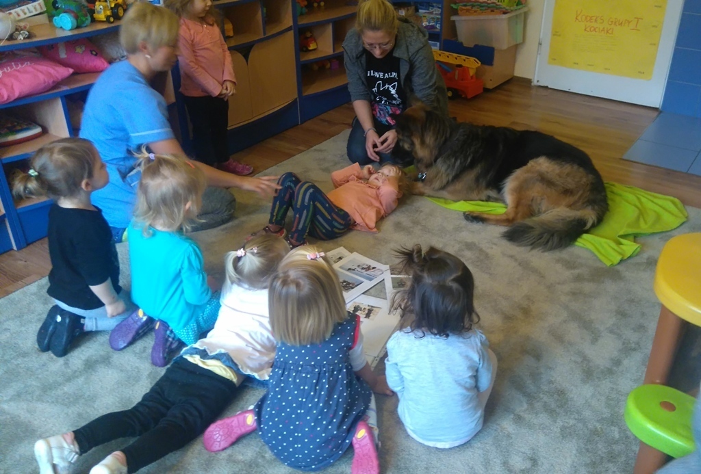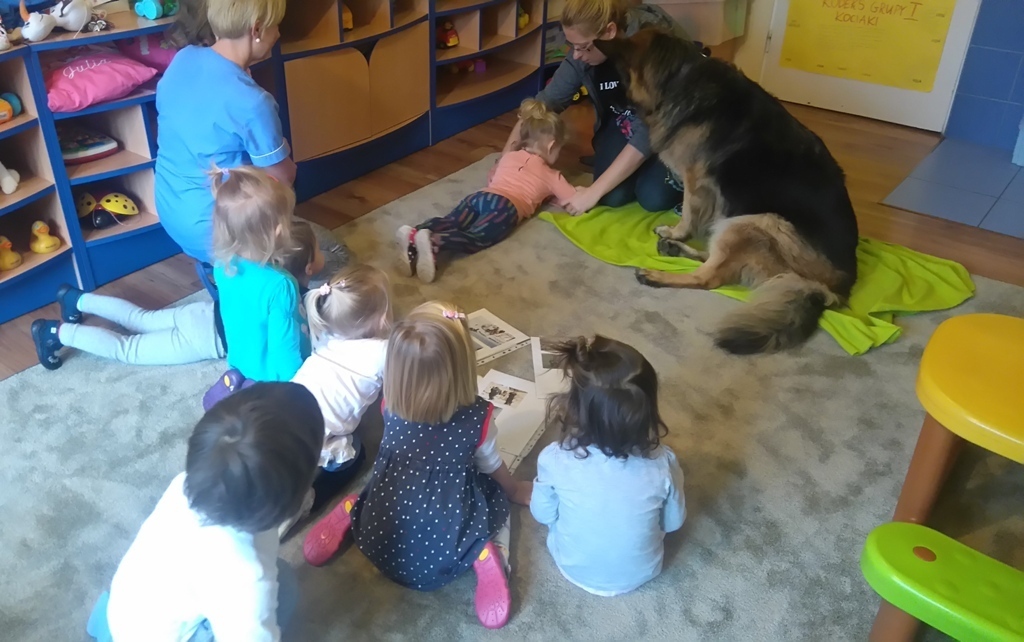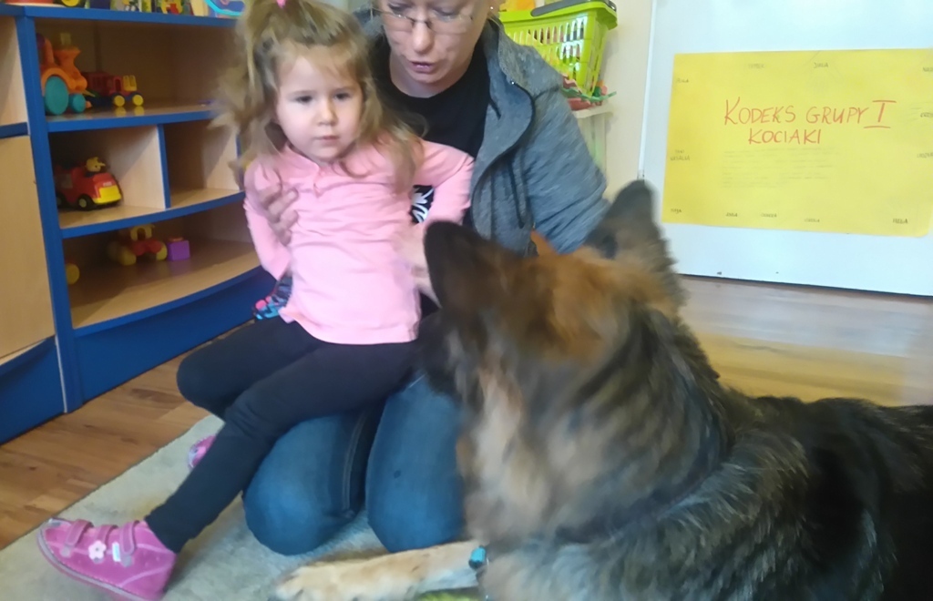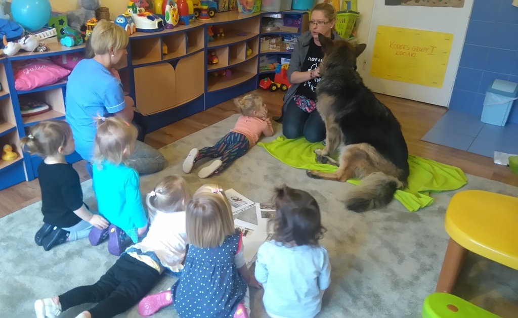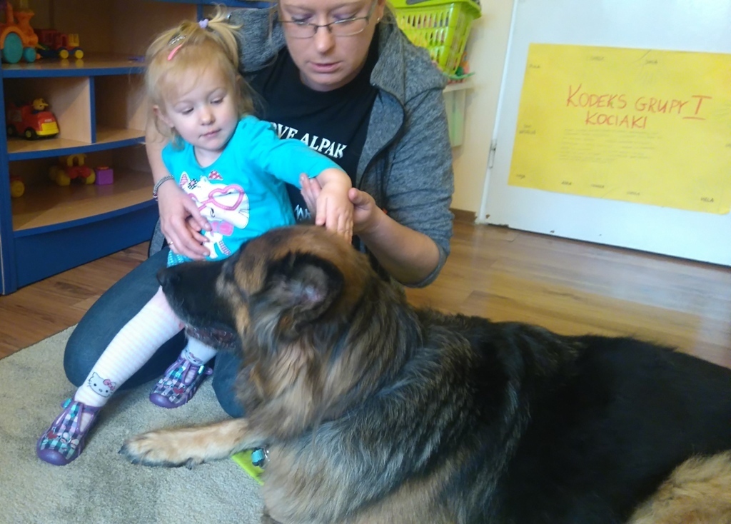 W dzisiejszym dniu spotkała nas niespodzianka. Odwiedziła nas pani Marta razem ze swoim wspaniałym psem. Zajęcia były bardzo ciekawe. Pani Marta nauczyła nas, jak postępować w momencie, kiedy na spacerze spotkamy nieznanego psa i jak się przed nim bronić, kiedy będzie chciał nas zaatakować. Mogliśmy również dać pieskowi ciasteczka, a także go pogłaskać. Ciekawe, czy będzie chciał nas jeszcze odwiedzić???