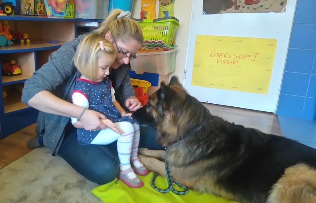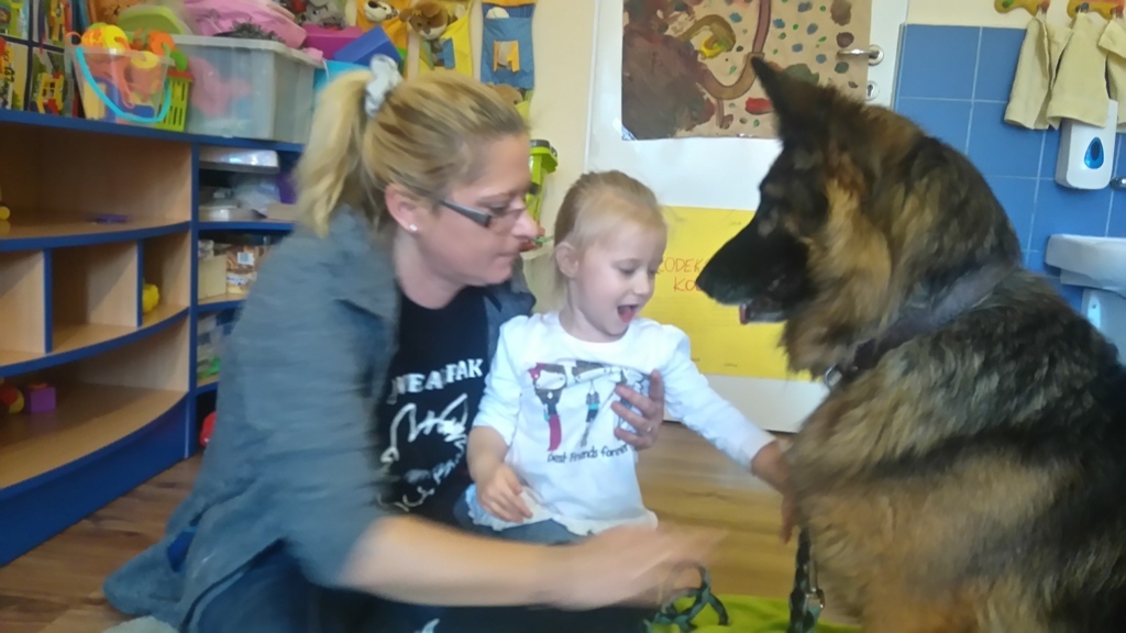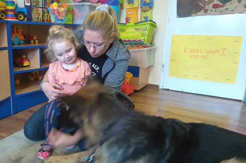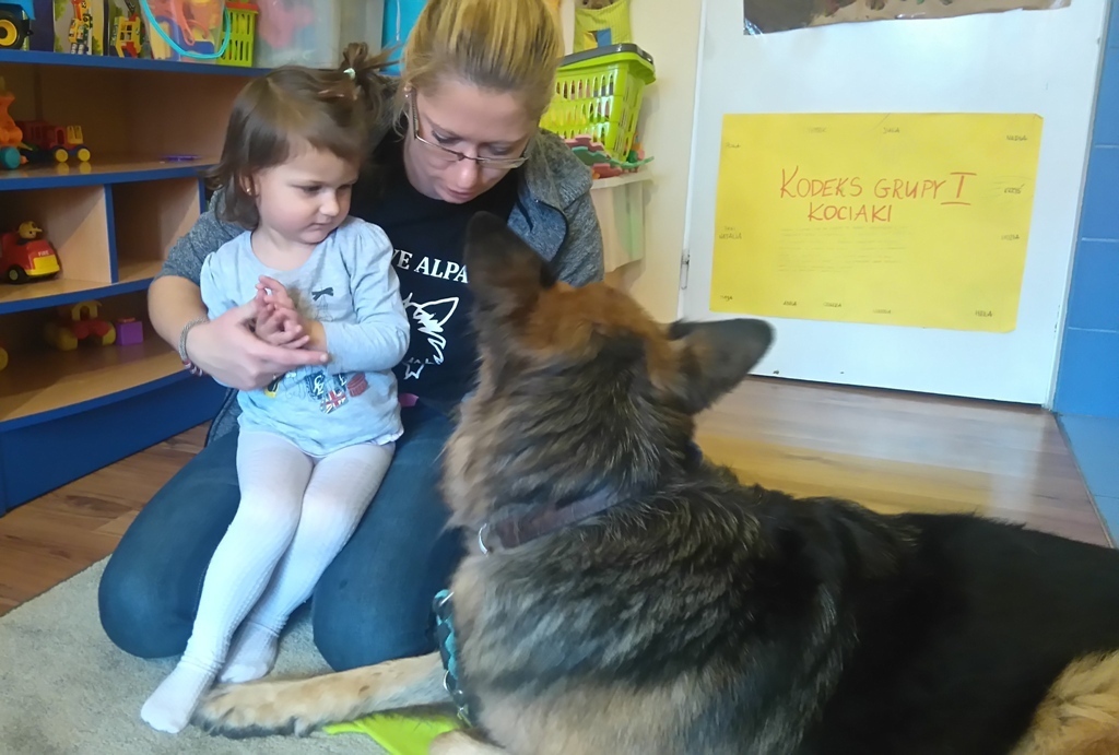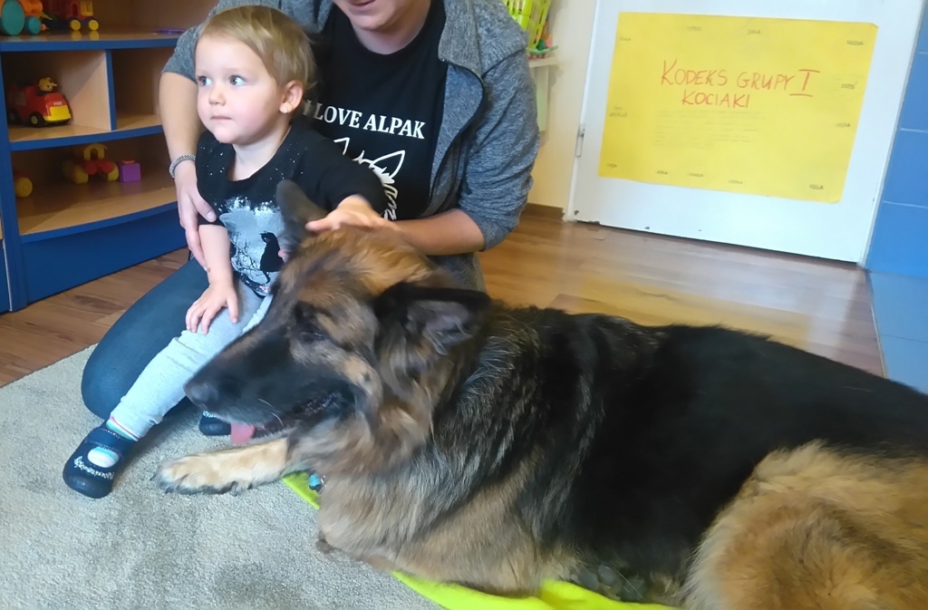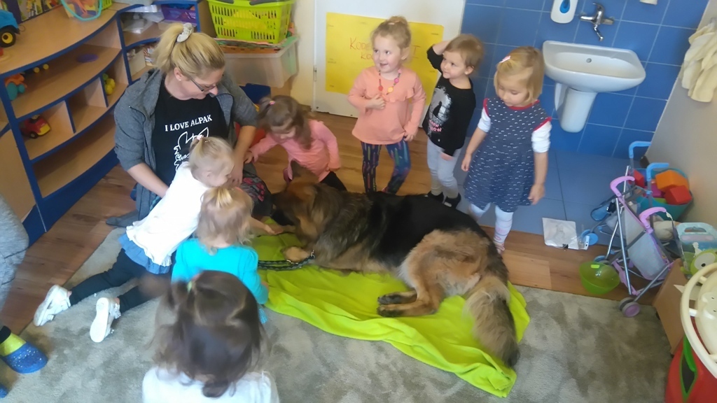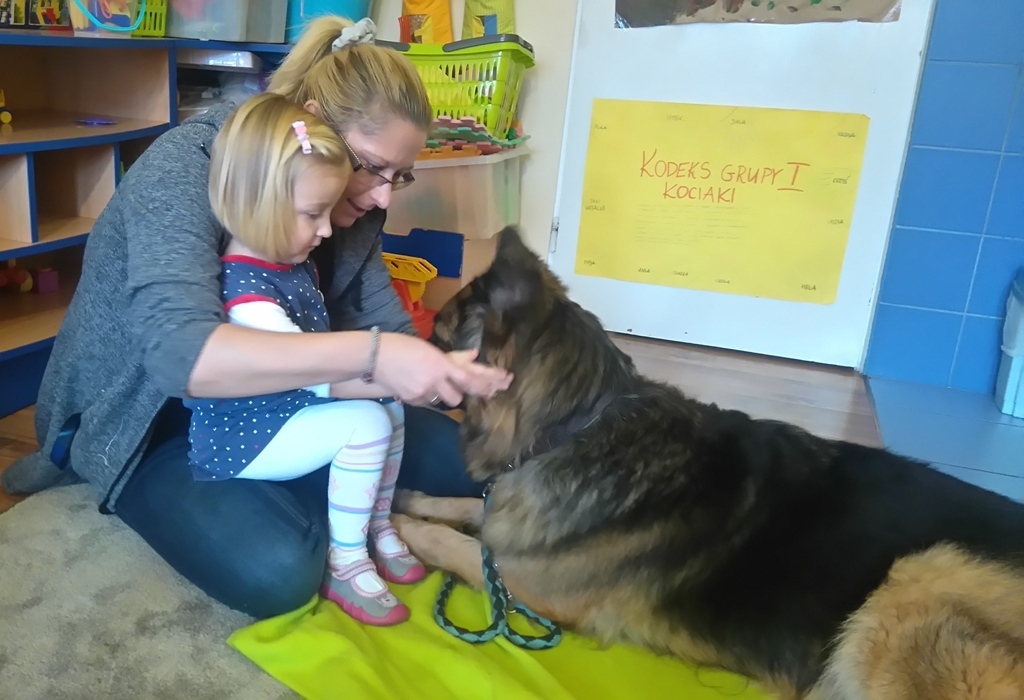 W dzisiejszym dniu spotkała nas niespodzianka. Odwiedziła nas pani Marta razem ze swoim wspaniałym psem. Zajęcia były bardzo ciekawe. Pani Marta nauczyła nas, jak postępować w momencie, kiedy na spacerze spotkamy nieznanego psa i jak się przed nim bronić, kiedy będzie chciał nas zaatakować. Mogliśmy również dać pieskowi ciasteczka, a także go pogłaskać. Ciekawe, czy będzie chciał nas jeszcze odwiedzić???