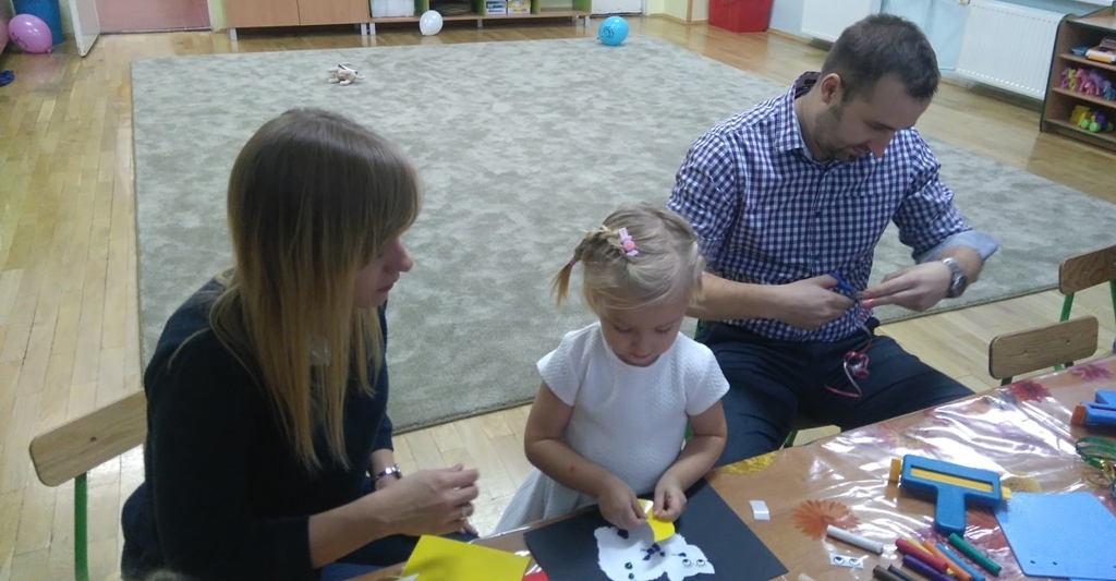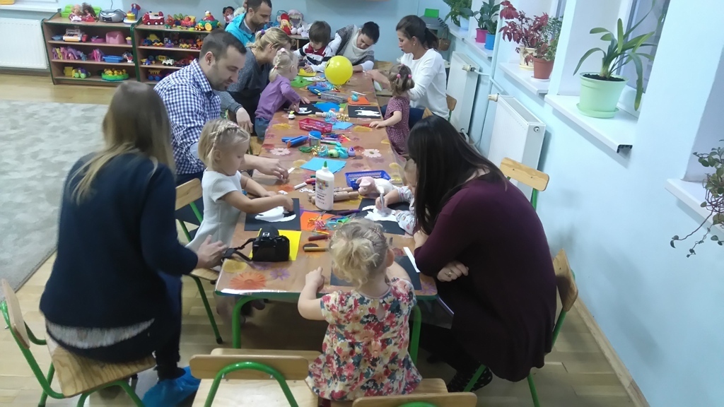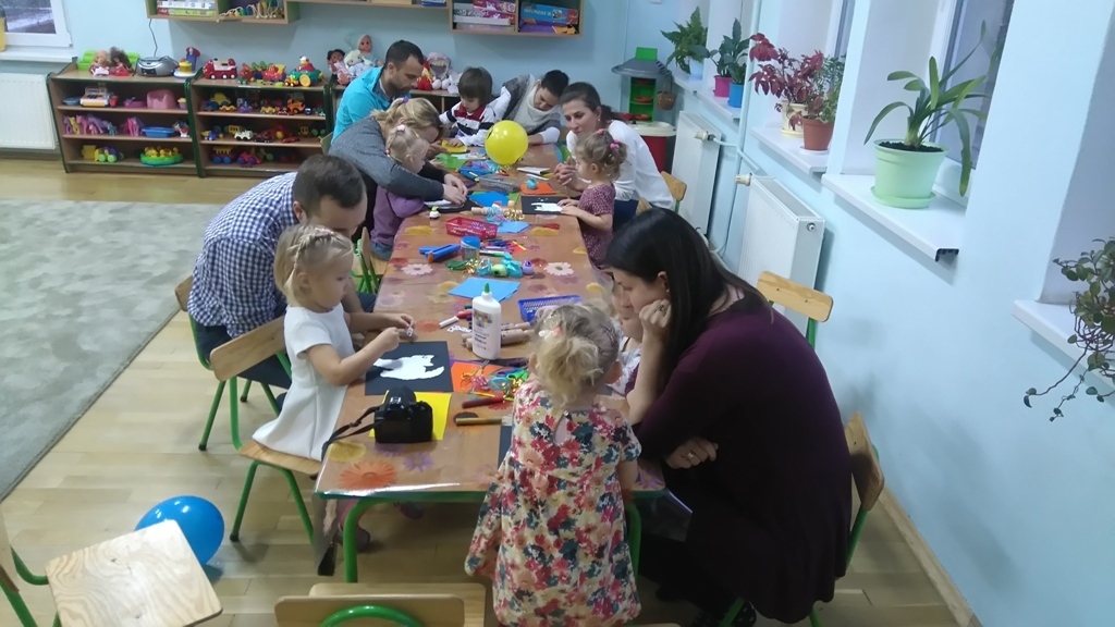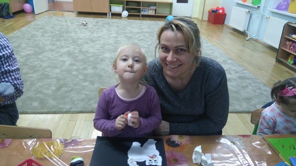 30 listopada obchodziliśmy uroczystość andrzejkową. Kiedy czekaliśmy w sali na naszych rodziców, spędzaliśmy ten czas bardzo przyjemnie, tańcząc przy ulubionych piosenkach. Następnie wspólnie wykonaliśmy prace plastyczną – kota, którego mogliśmy zabrać ze sobą do domu. Pani Natalia wykonała z nami wróżbę z butami z której dowiedzieliśmy się, kto pierwszy z naszej grupy wyjdzie za mąż lub się ożeni. Oczywiście nie mogło zabraknąć w ten dzień wspólnych tańców z rodzicami. Było to dla nas bardzo miłe zakończenie dnia.