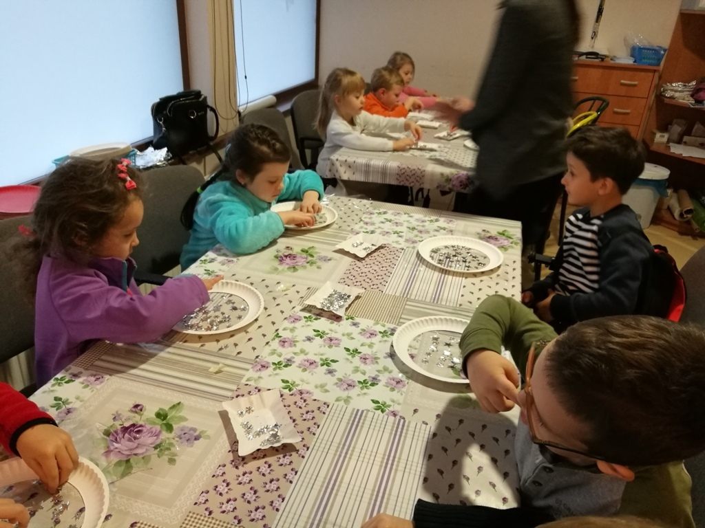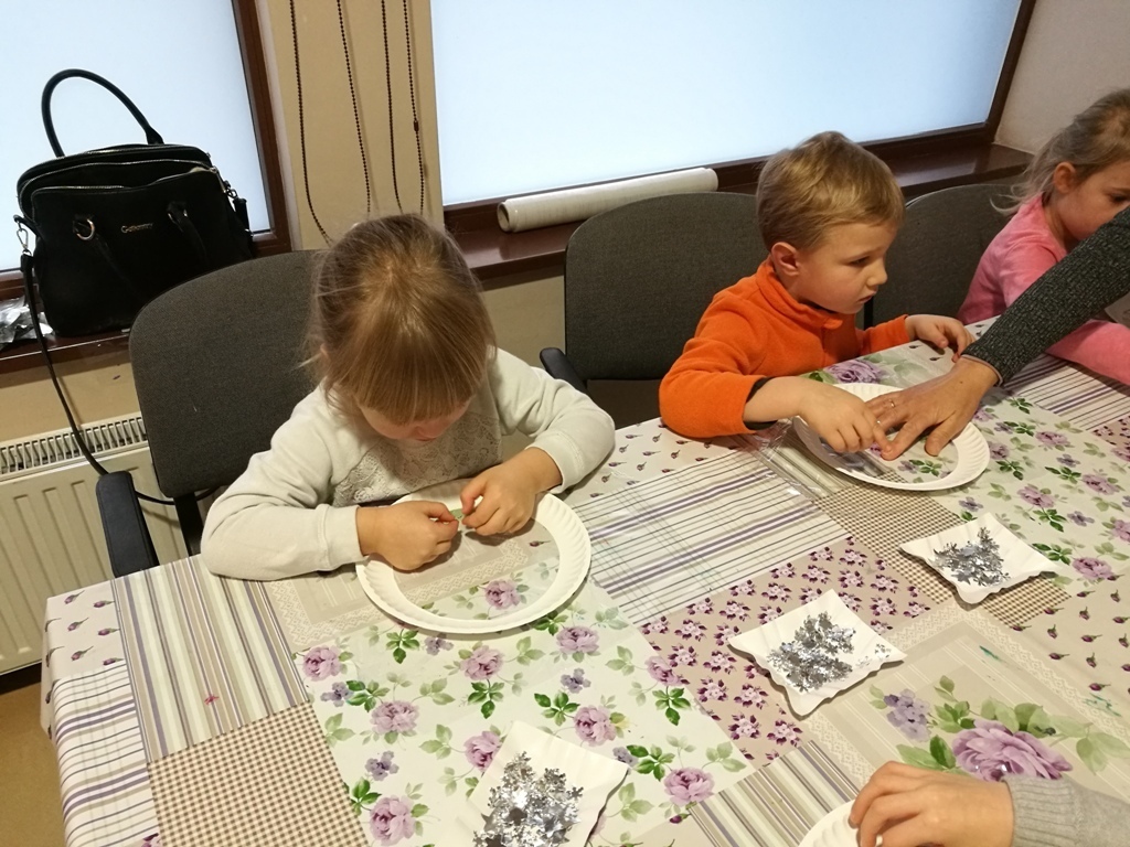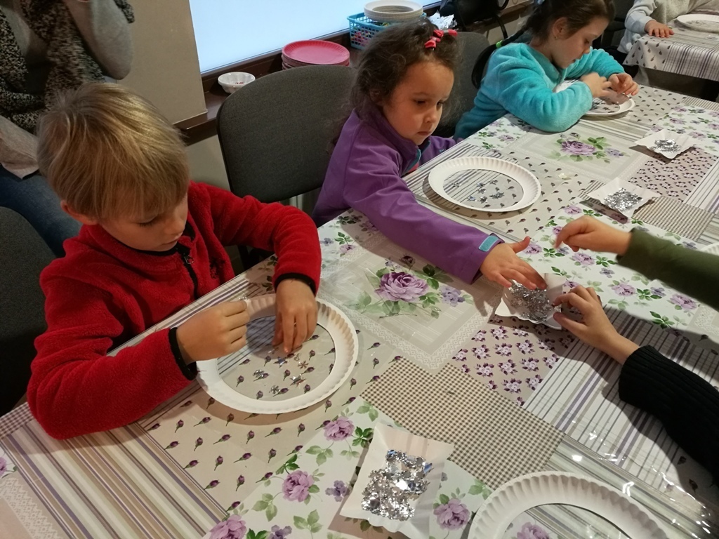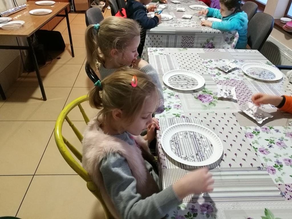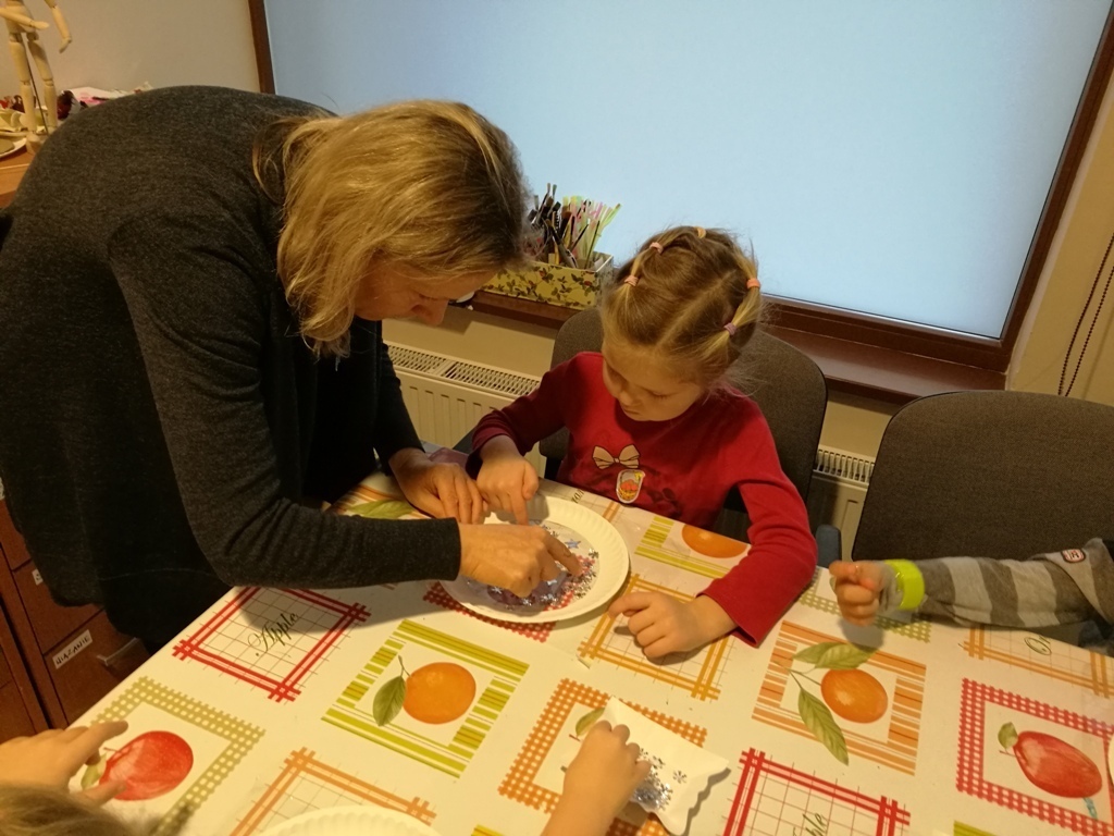 Tygryski wraz ze starszymi kolegami wybraliśmy się do Muzeum Zabawek w Karpaczu na świąteczne warsztaty plastyczne. Zaraz po przyjeździe na miejscu nasze dzieci zabrały się do pracy. Każdy otrzymał papierowy talerzyk ze specjalnie przygotowaną folię i małe gwiazdki wycięte z folii aluminiowej. Naszym zadaniem było ułożenie fantazyjnych wzorów z dostępnych materiałów. Po zakończonej pracy, każdy z nas miał zrobiony odświętny, wyjątkowy talerzyk, który w sam raz pasuje na wigilijny stół. Następnie wraz z panią przewodniczką udaliśmy się na zwiedzanie wystawy. Już dawno nie widzieliśmy w jednym miejscu, tak dużej ilości zabawek. Z wielkim zainteresowaniem oglądaliśmy zgromadzone eksponaty i wysłuchaliśmy ich historii. Podziwialiśmy zabawki z różnych zakątków świata. Były one wykonane z rozmaitych materiałów, od drewna i metału po wosk i ceramikę. Po tak przeżytym dniu - pełni wrażeń wracaliśmy do przedszkola wciąż rozmawiając o oglądanych zabawkach.