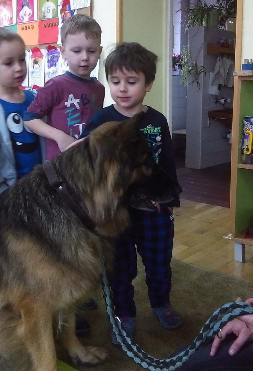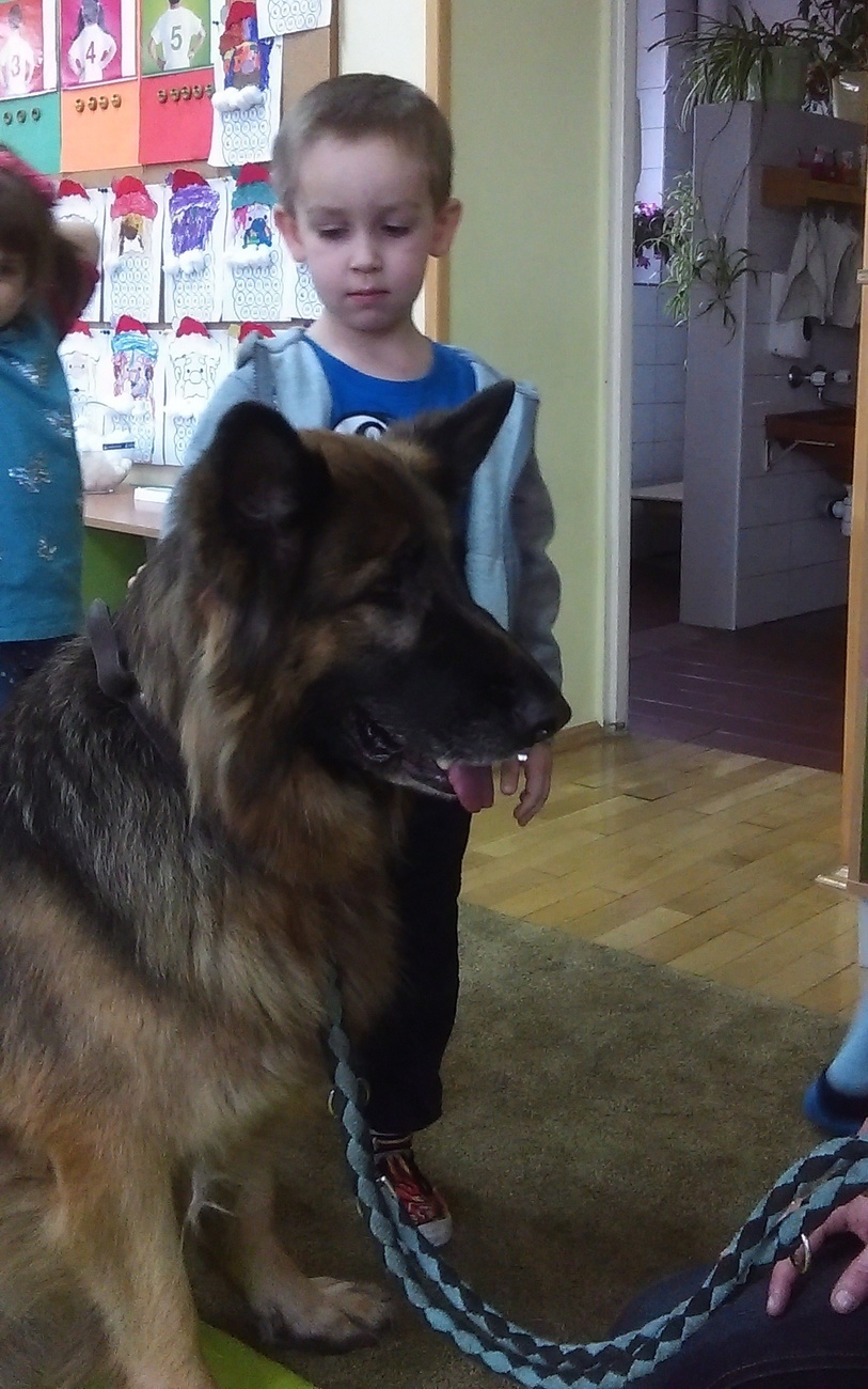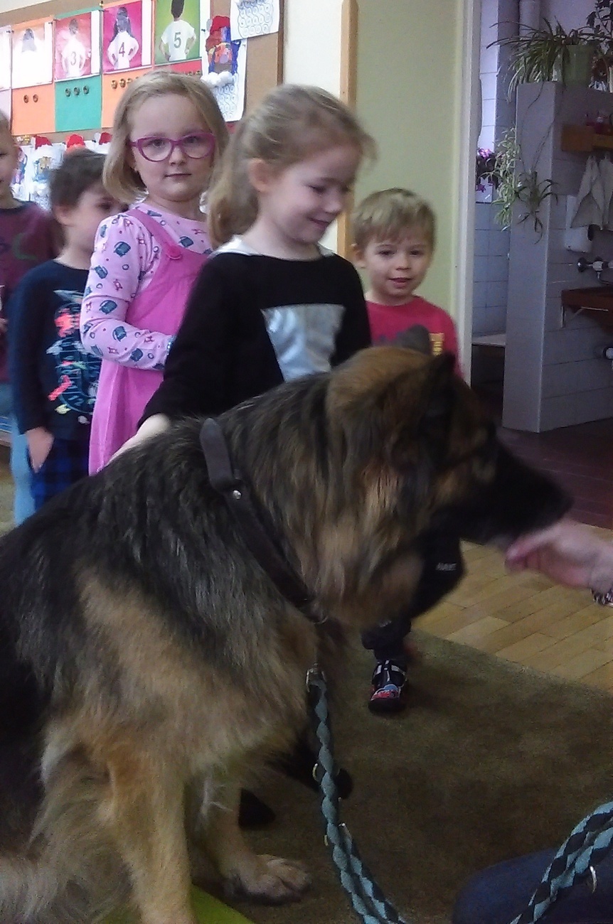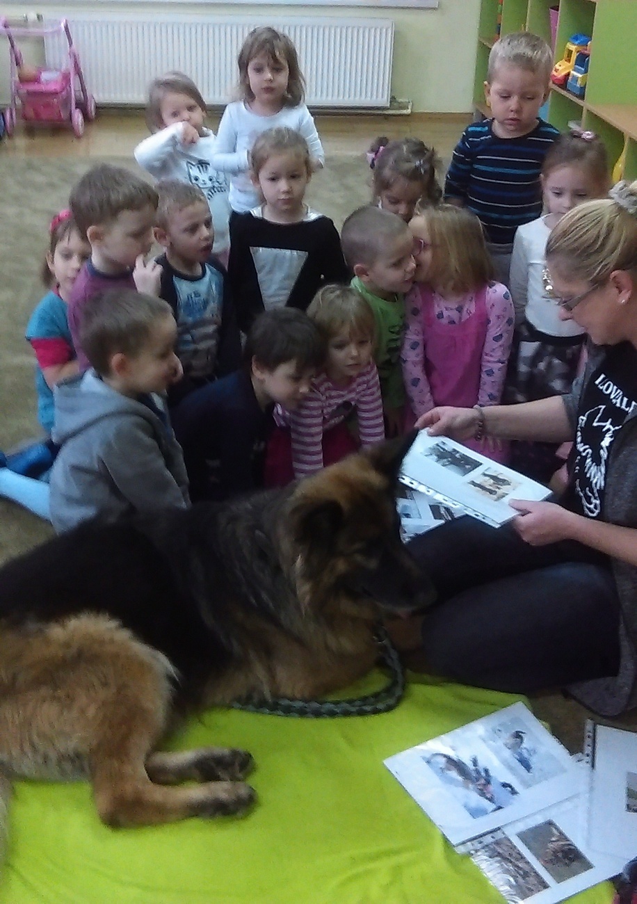 W dniu 02.12. czekało nas dużo niespodzianek. Najpierw odwiedził nas wyjątkowy gość owczarek niemiecki. Pani, która się nim opiekuje opowiedziała nam jak powinniśmy się zachowywać, kiedy spotkamy psa bez właściciela. Co lubią , z czego nie lubią psy. Na zakończenie każdy kto chciał, mógł pogłaskać psa. Następnie wspólnie z kolegami z grupy IV wybraliśmy się do Książnicy Karkonoskiej, tam czekała na nas niespodzianka, w bardzo dużej sali oglądaliśmy fragment bajki „Ekspres polarny”. W takim świątecznym nastroju wróciliśmy do przedszkola, nie mogąc się doczekać Mikołaja.