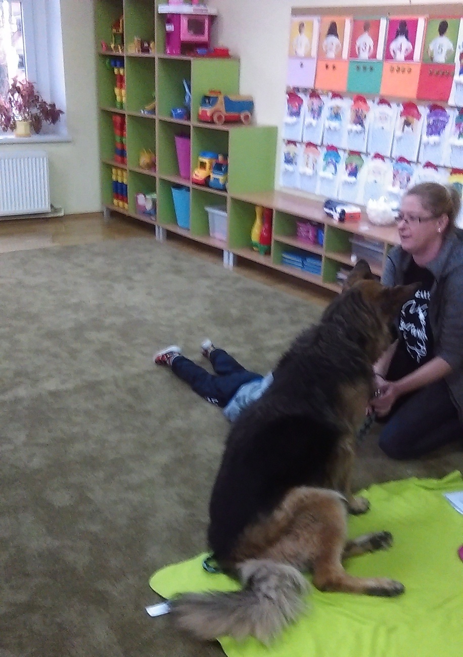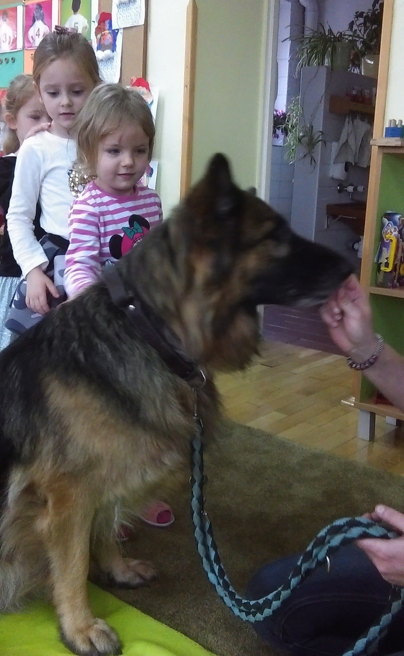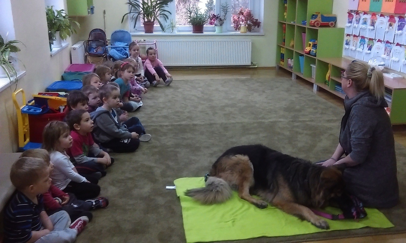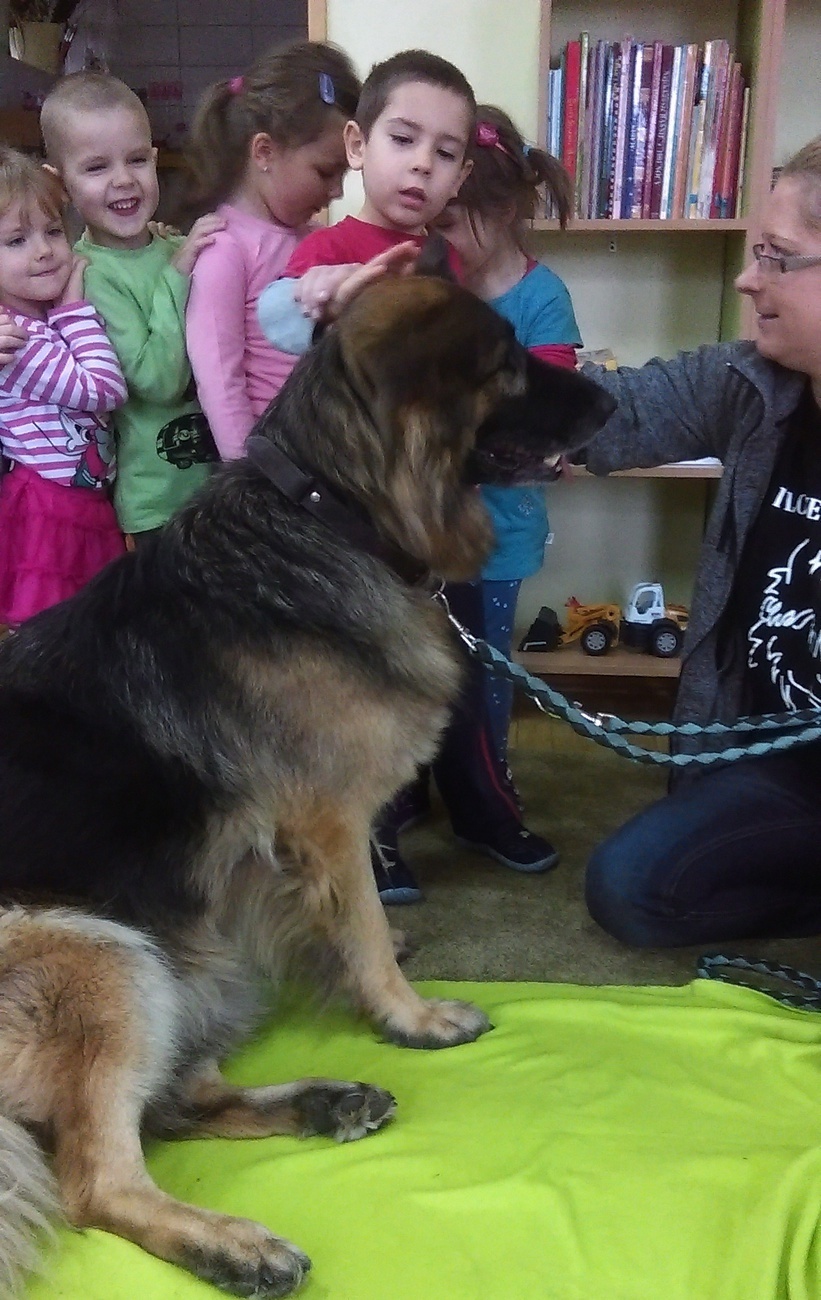 W dniu 02.12. czekało nas dużo niespodzianek. Najpierw odwiedził nas wyjątkowy gość owczarek niemiecki. Pani, która się nim opiekuje opowiedziała nam jak powinniśmy się zachowywać, kiedy spotkamy psa bez właściciela. Co lubią , z czego nie lubią psy. Na zakończenie każdy kto chciał, mógł pogłaskać psa. Następnie wspólnie z kolegami z grupy IV wybraliśmy się do Książnicy Karkonoskiej, tam czekała na nas niespodzianka, w bardzo dużej sali oglądaliśmy fragment bajki „Ekspres polarny”. W takim świątecznym nastroju wróciliśmy do przedszkola, nie mogąc się doczekać Mikołaja.