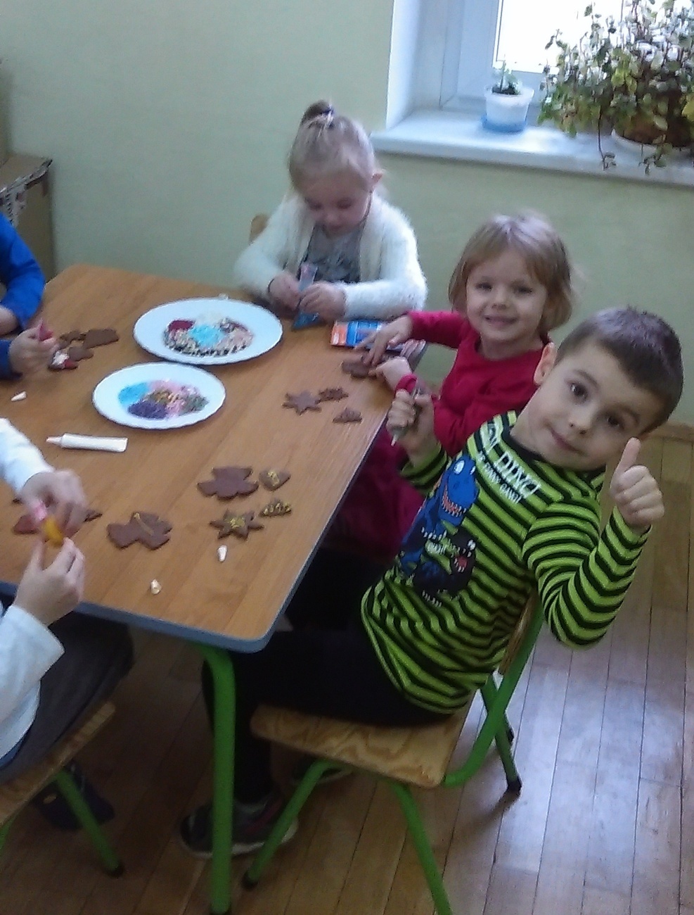 Nie musieliśmu długo czekać, bo w przedszkolu zaczął unosić się bardzo pyszny piernikowy zapach, po czym pani przyniosła nasze wypieki.