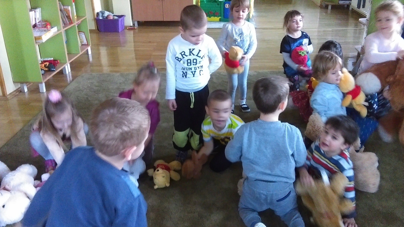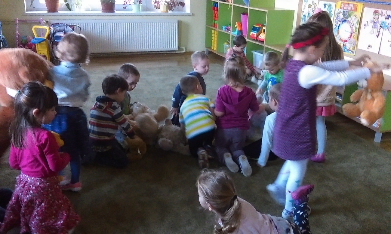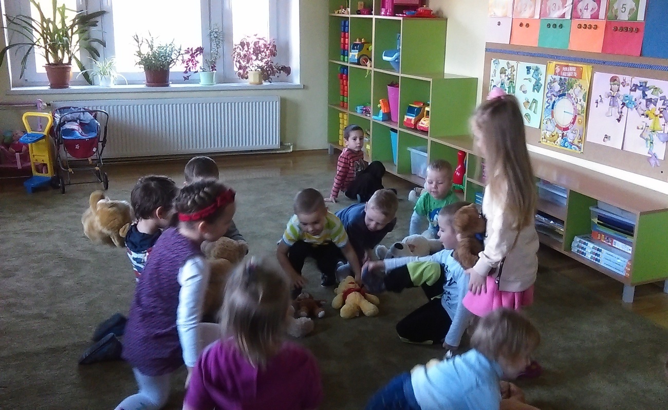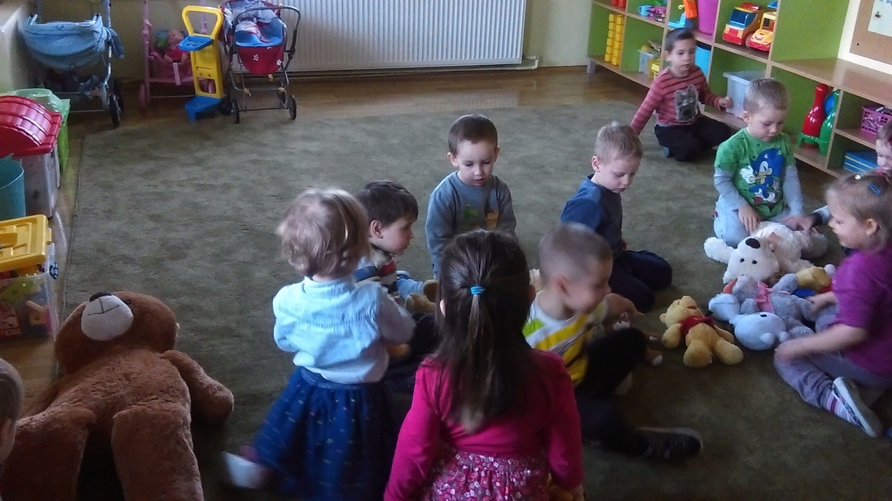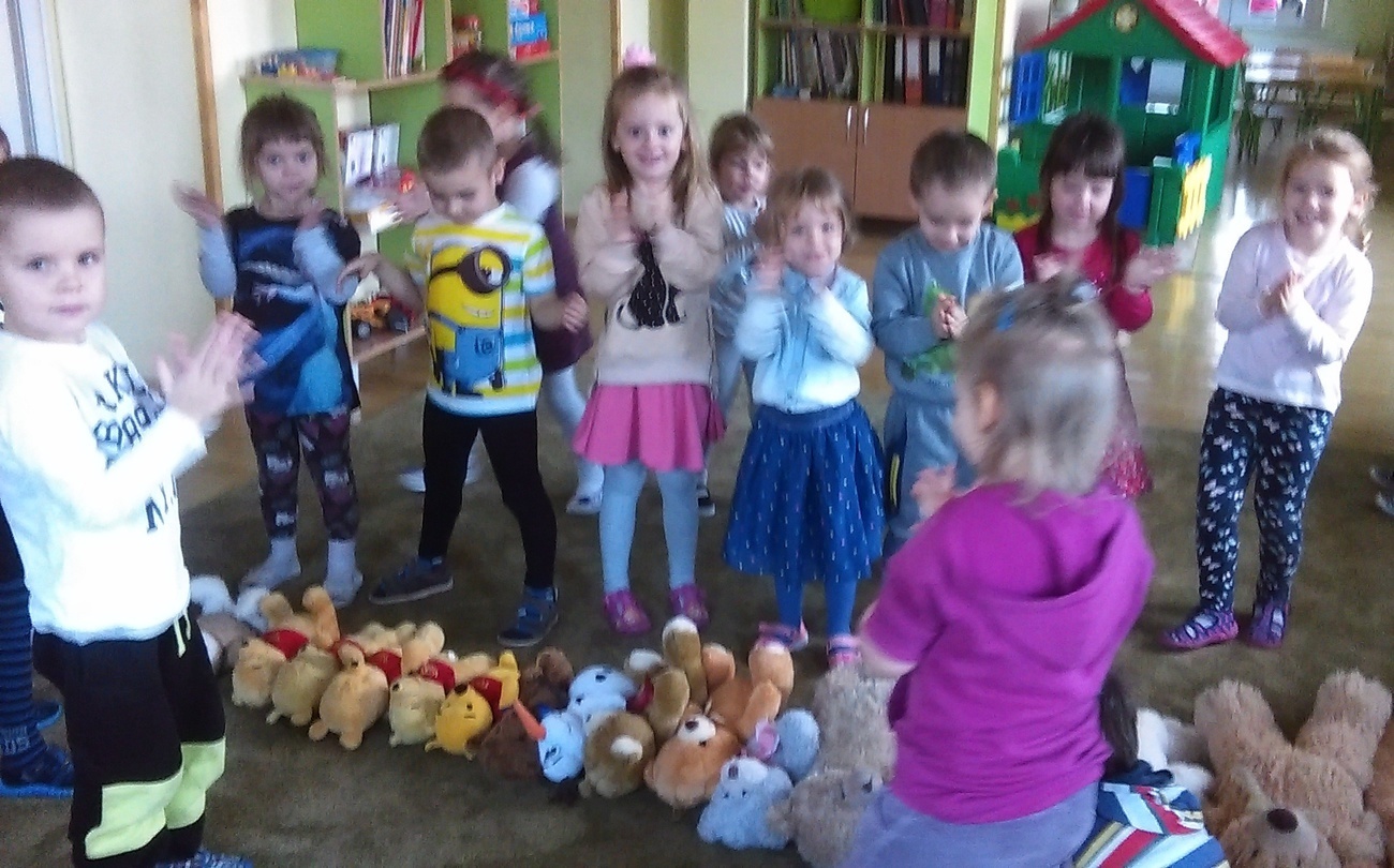25.11.2016 w naszej grupie obchodziliśmy dzień pluszowego misia. Z tej okazji gościli w przedszkolu nasi pluszowi przyjaciele. Na początku pokazaliśmy im naszą salę, gdzie należy odkładać zabawki, w którym miejscu można rysować. Następnie wszystkie misie wzięły udział w komkursie na największego pluszaka. Wspólne zabawy zakoczyliśmy Balem Pliuszowego Misia.