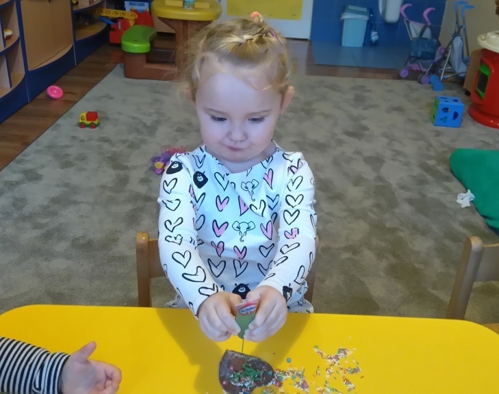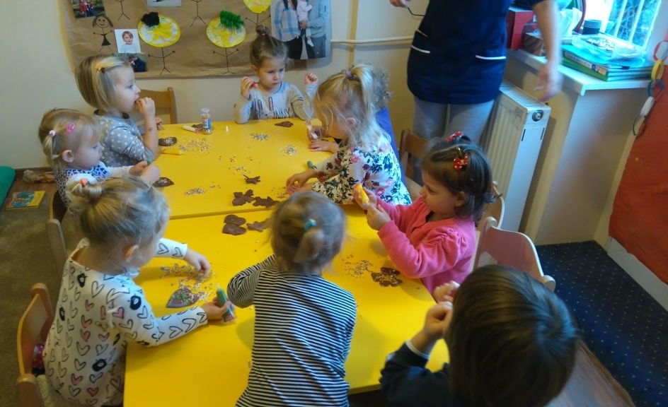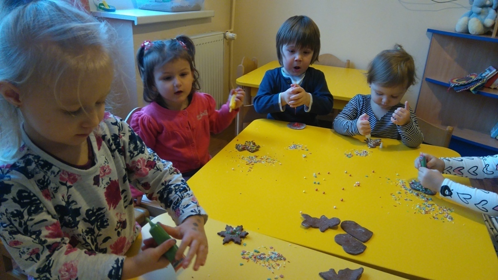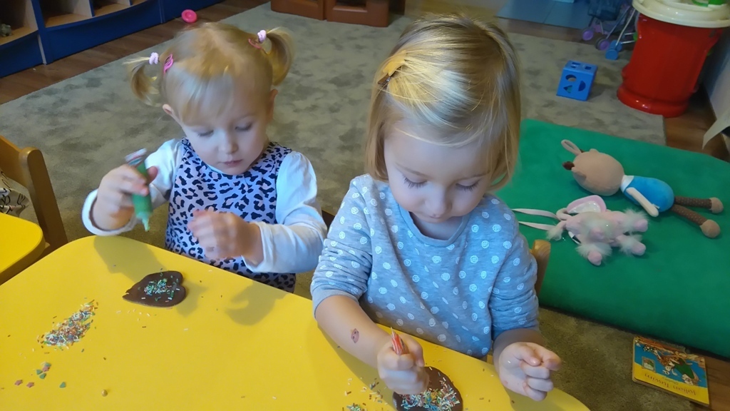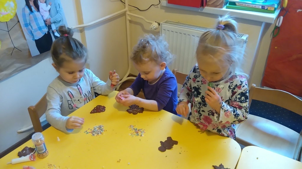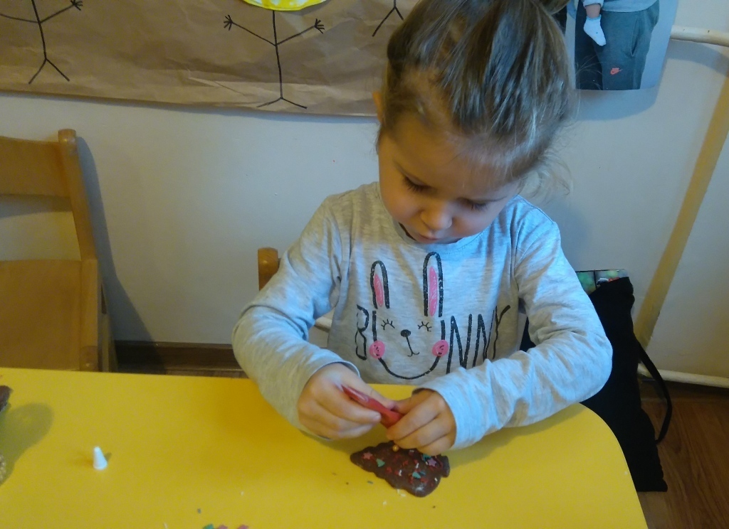 Tego dnia nie mogliśmy doczekać się najbardziej. Pierniki po upieczeniu już wyglądały pysznie, a słodkie ozdoby, którymi dekorowaliśmy ciastka dodały im uroku. Oczywiście wielokrotnie próbowaliśmy każdego smaku, bo wszystko było bardzo smakowite. Kiedy już wszystko udekorowaliśmy pani Natalia schowała nasze ciastka do pudełka i wyciągnie je na naszym uroczystym przedszkolnym dniu Wigilijnym.