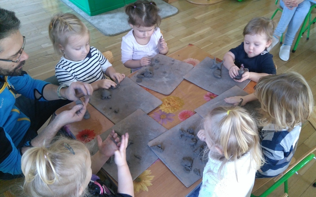 Po raz pierwszy w naszym roku przedszkolnym mieliśmy przyjemność uczestniczyć w zajęciach dodatkowych z gliny. Lepiliśmy bałwanki i reniferki, a pan ......... ulepił dla każdego z nas zwierzątko, takie jakie chcieliśmy. To była super zabawa.