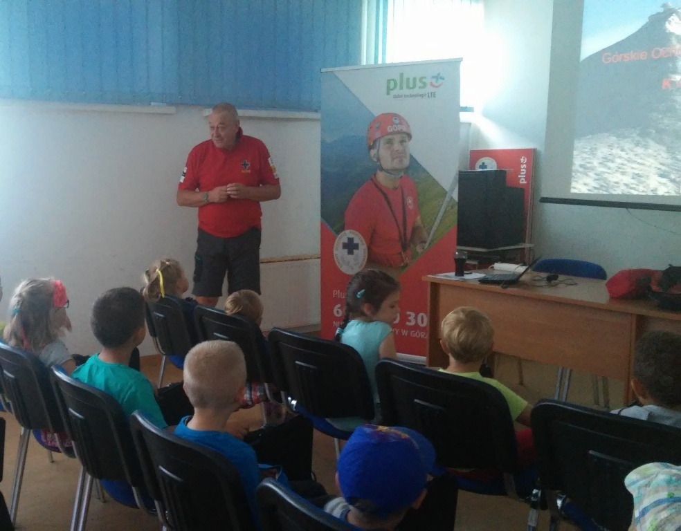 29.08.2016 Tuptusiowe przedszkolaki w ramach programu " Bezpieczny Dolnoślązak", poszły na spotkanie z ratownikiem górskim do GOPR-u. Na początku wizyty poznaliśmy co oznacza skrót GOPR, dowiedzieliśmy się też o numerach alarmowych pod które możemy dzwonić oraz o aplikacji na telefon " Ratuj", którą mogą zainstalować osoby dorosłe posiadające telefon komórkowy. Następnie omówiliśmy jakie niezbędne rzeczy należy zabrać ze sobą podczas wycieczki w góry, a także jak powinniśmy się ubrać idąc na taką trasę. Pod koniec spotkania wszystkie przedszkolaki zostały zaproszone do garażu, gdzie z bliska mogliśmy się przyjrzeć jak wyglądają pojazdy GOPR-u oraz sprzęt ratowniczy, w tym min. quady, skutery śnieżne i nosze. Tuż przy wyjściu odwiedziliśmy także centralę, w której odbierane są wszelkie zgłoszenia dotyczące wypadków w górach. Dzieci pod wielkim wrażeniem opuszczały siedzibę GOPR-u i między sobą planowały wspólna wycieczkę w góry wraz z rodzicami.
