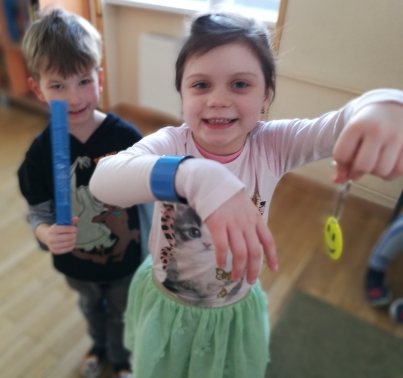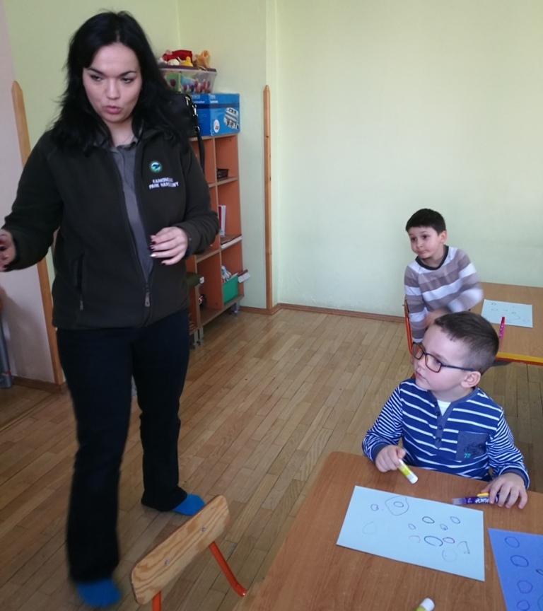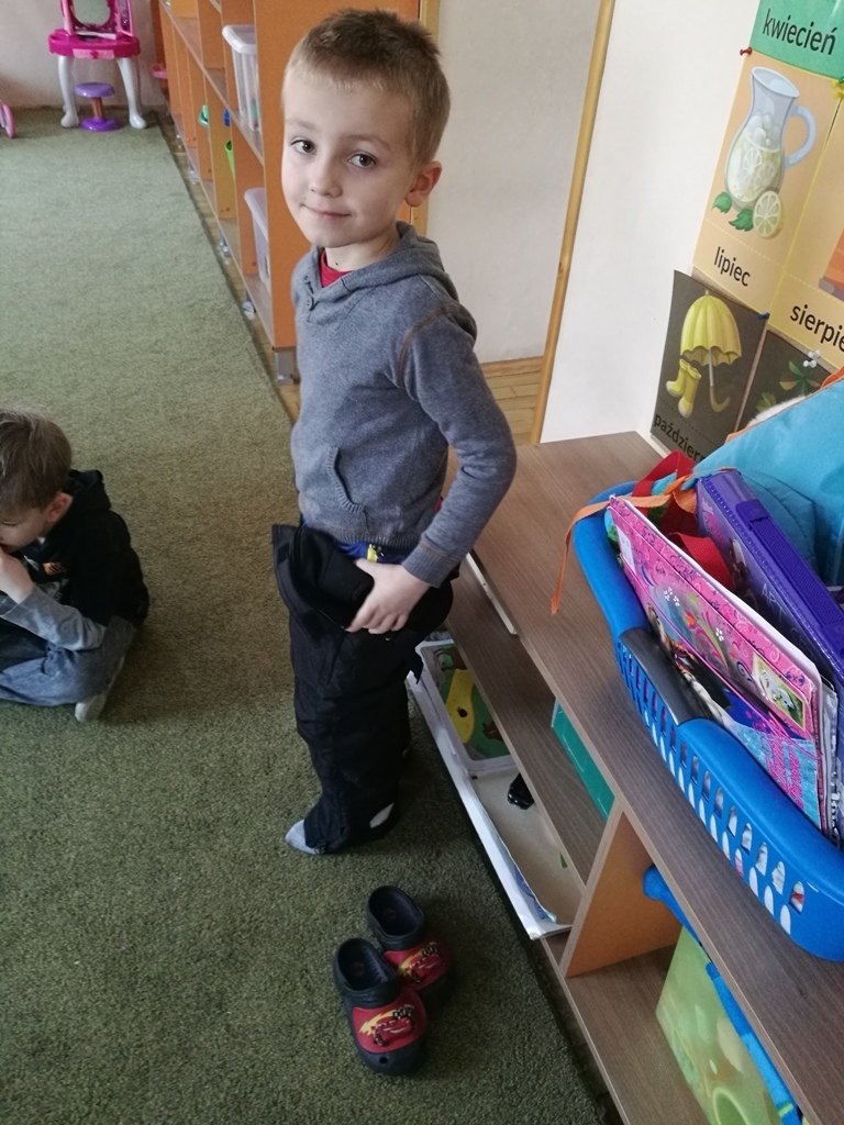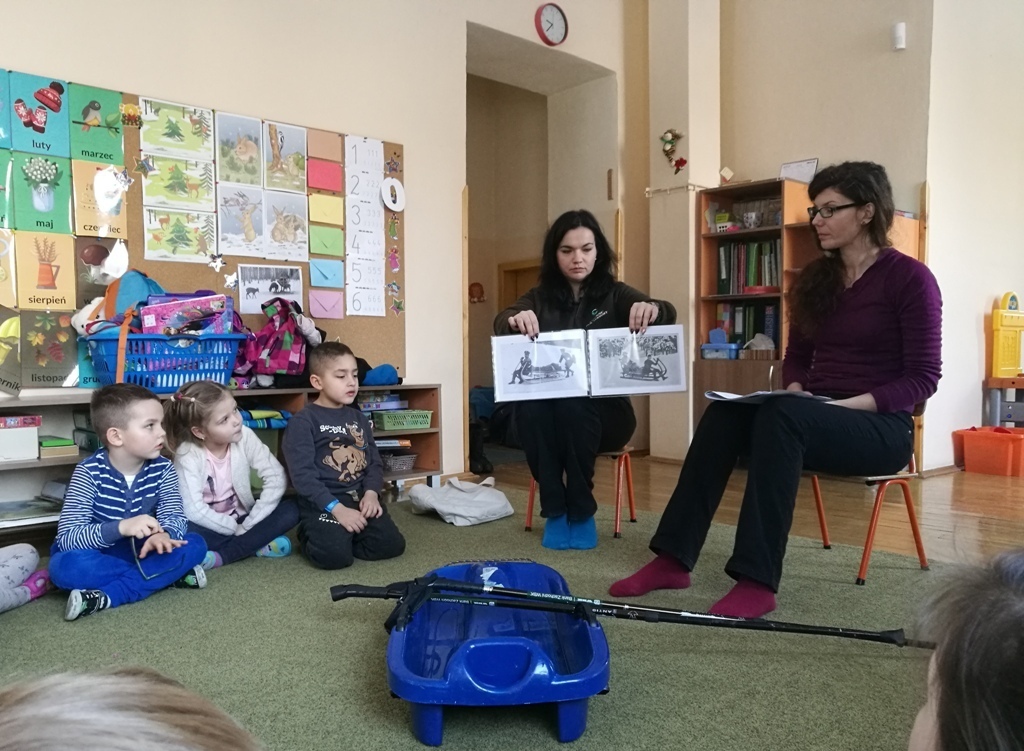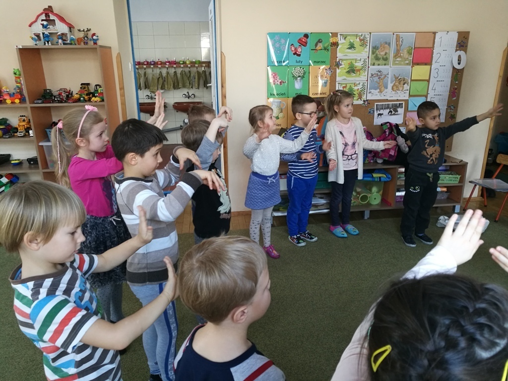 19 stycznia w grupie "Tygrysków" miały miejsce zajęcia z paniami z Karkonoskiego Parku Narodowego. Na dzisiejszym spotkaniu wymienialiśmy różne dyscypliny, które są popularne zimą. Narciarstwo, saneczkarstwo, czy też łyżwiarstwo są ulubionymi sportami dzieci, bo jak powiedziały, kojarzą się im ze świąteczną zabawą. Wspominaliśmy również oczywiście, ulubionych sportowców – Kamil Stoch i Justyna Kowalczyk to idole naszych "Tygrysków". Oglądaliśmy ciekawe ilustracje przedstawiające m.in. sanie rogate, czy też zaprzęgi sań – tzw. kulig. Nasz kolega Marcin, pokazywał jak należy przyjąć postawę podczas zjazdu na nartach natomiast wspólnie razem ćwiczyliśmy slalom. Na zakończenie zajęć wykleiliśmy śnieżne bałwanki i wpadliśmy na pomysł, że lepienie bałwana też powinno być dyscypliną sportową.