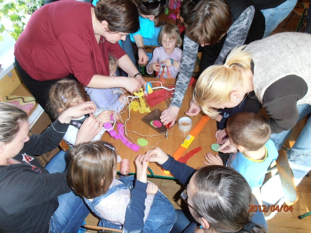 By otrzymać upominek od Zająca, który odwiedził nasze przedszkole już wcześniej, trzeba było pokonać krętą drogę i donieść na łyżce całe jajo. Mile zaskoczeni niespodzianką od Zająca, pożegnaliśmy się, składając sobie świąteczne życzenia. Cieszymy się, że tego rodzaju zajęcia spotykają się z państwa strony duży zainteresowaniem.