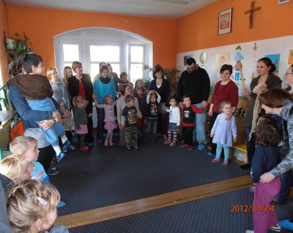 Uroczystym rozpoczęciem było przekazanie sobie świątecznej pisanki. Musieliśmy się wykazać dużą zręcznością i ostrożnością, co zaowocowało całym jajem.