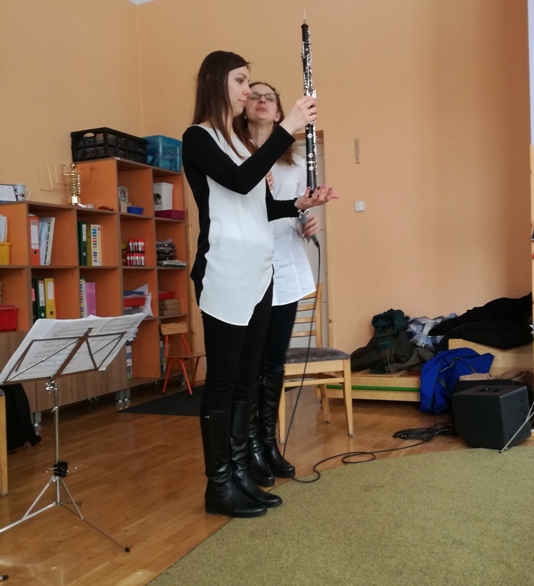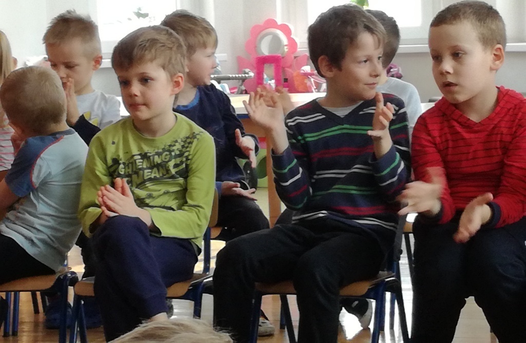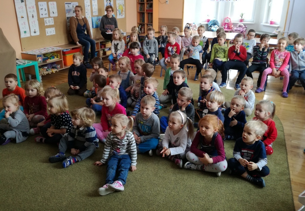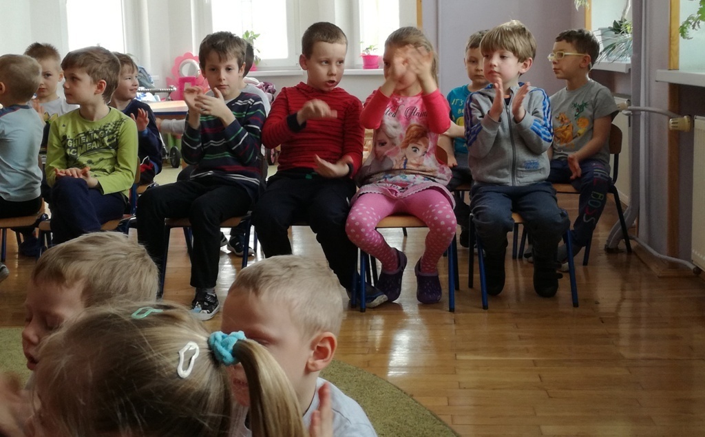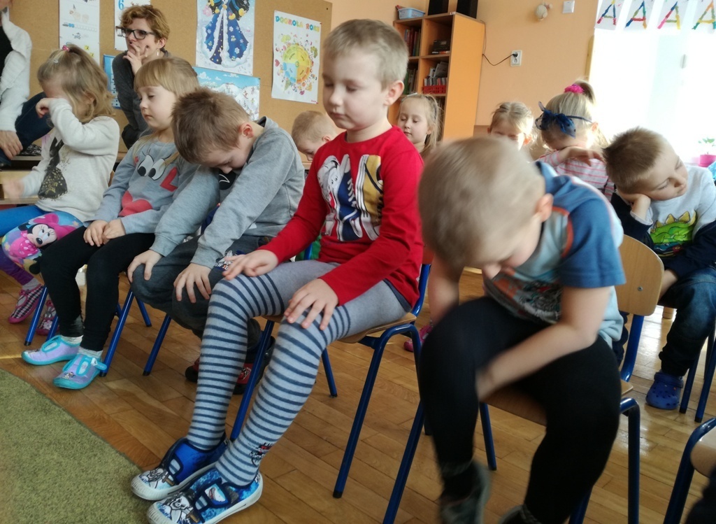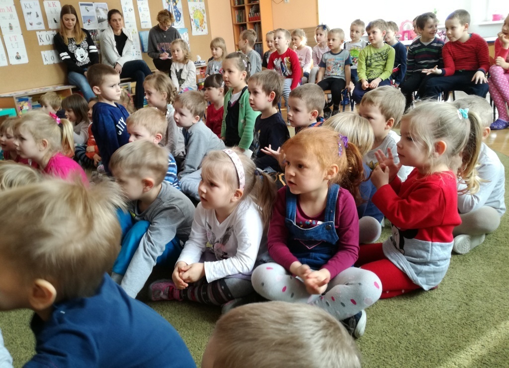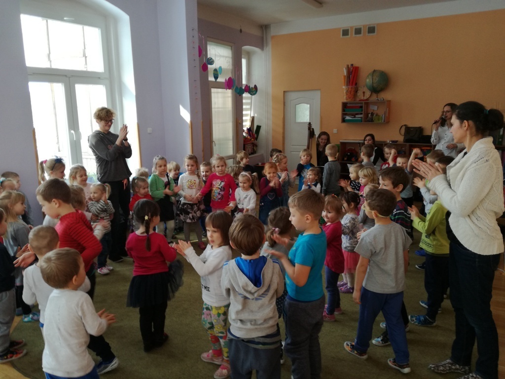 Muzycy z Filharmonii Dolnośląskiej przywitali nas w dniu dzisiejszym utworem pt. "Halleluja" na harfę i obój. Prowadząca spotkanie pani Asia, opowiedziała historię Patryka. Był to chłopiec, który z powodu braku prądu wybrał się na wycieczkę. Dotarł do lasu, w którym poznawał wszystkie żywioły: wodę, ogień, powietrze i Ziemię. A dzieci dzięki tej opowieści poznały budowę oboju oraz harfy. Dowiedziały się, ze harfa to najbardziej anielski z instrumentów zbudowany z 34 strun w różnych kolorach. Jej dźwięki podobne są do szemrzącego strumyka. Razem odtańczyliśmy taniec ognia, wysłuchaliśmy piosenki z bajki Pocahontas, irlandzkich pieśni oraz melodii pozwalających się wyciszyć, a nawet zasnąć. Tuptusiowe przedszkolaki ze skupieniem wysłuchały całego koncertu i z niecierpliwością oczekują już kolejnej audycje.