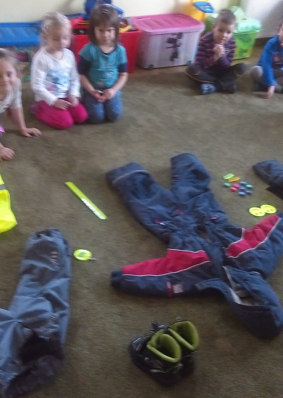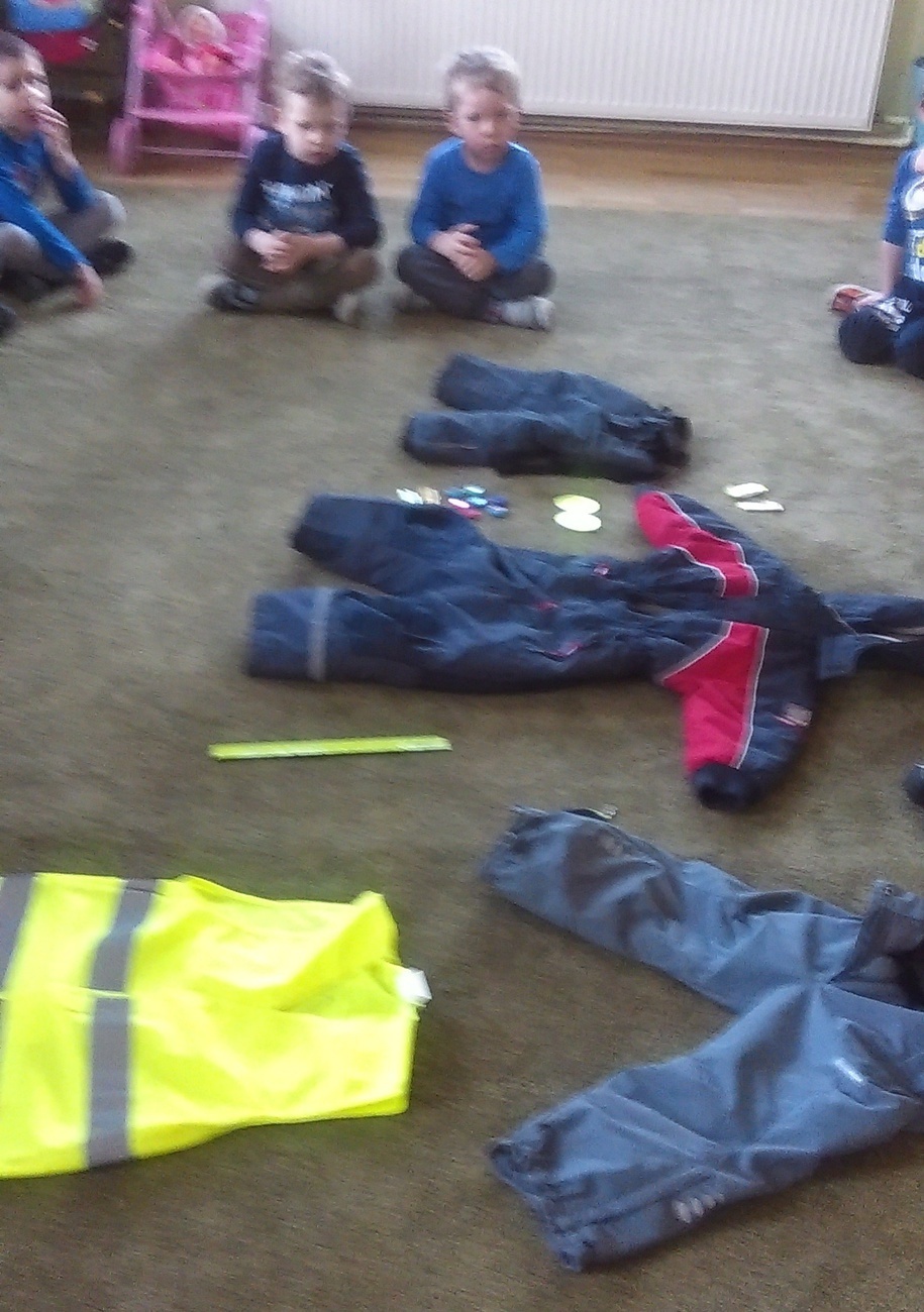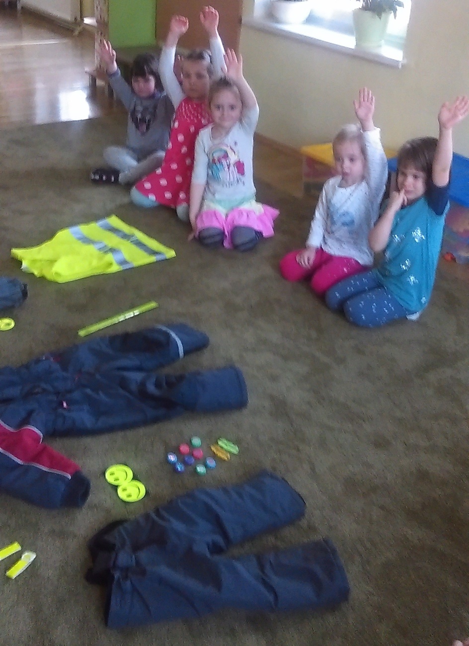W ramach projektu Bezpieczny Dolnoślązak odbyły się dzisiaj w naszej grupie zajęcia poświęcone odblaskom. Jest to taki element (taśma, opaska, zawieszka), który po oświetleniu w nocy np. reflektorami samochodu, jasno świeci światłem odbitym. Pani pokazała nam, gdzie znajdują się odblaski na naszych ubraniach (kurtki, kombinezony, buty), a także pokazała nam różne opaski, zawieszki, które możemy przyczepić nie tylko do ubrań, założyć na rękę ale także zamontować przy naszych rowerach. Wiemy już jak bardzo ważne jest to byśmy byli widoczni na drodze.