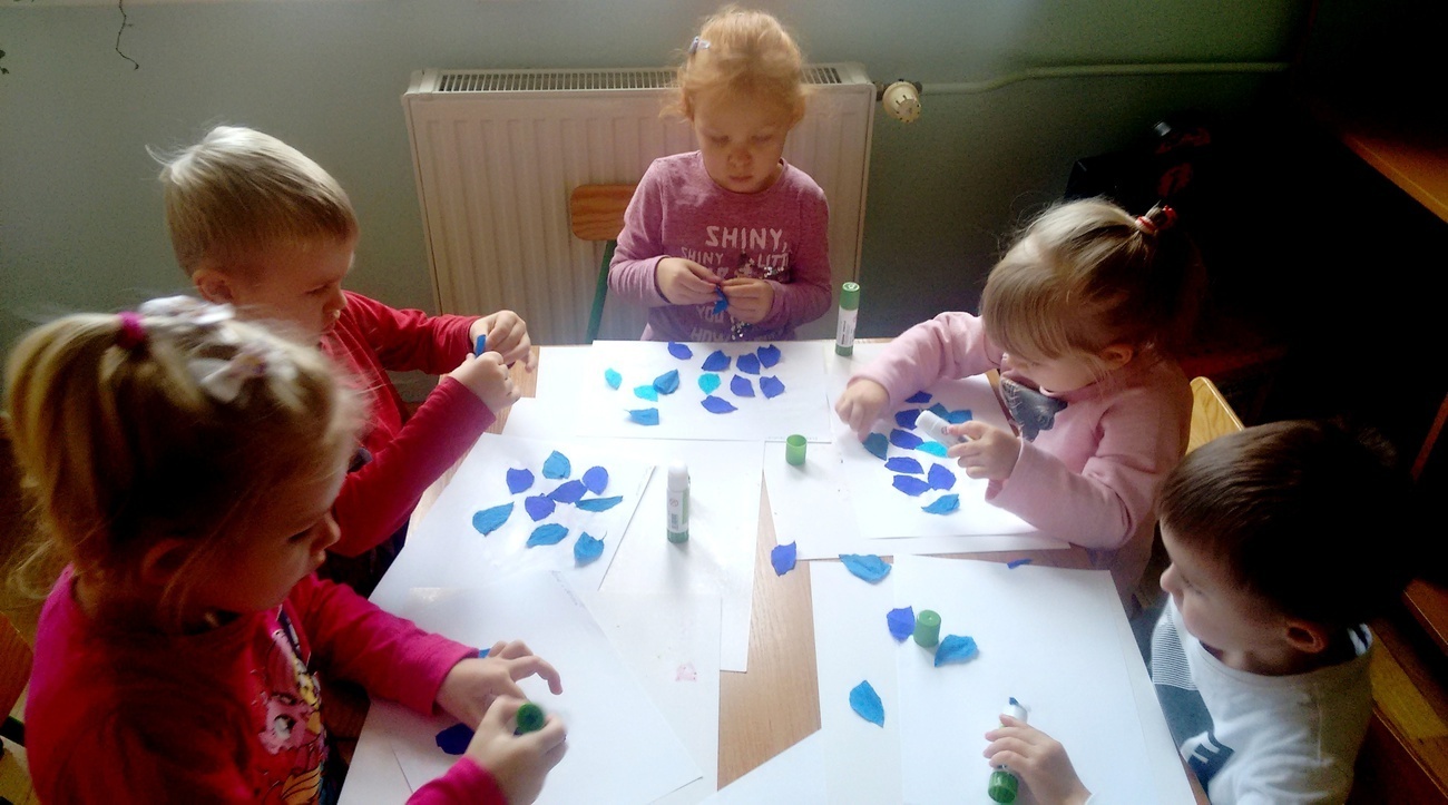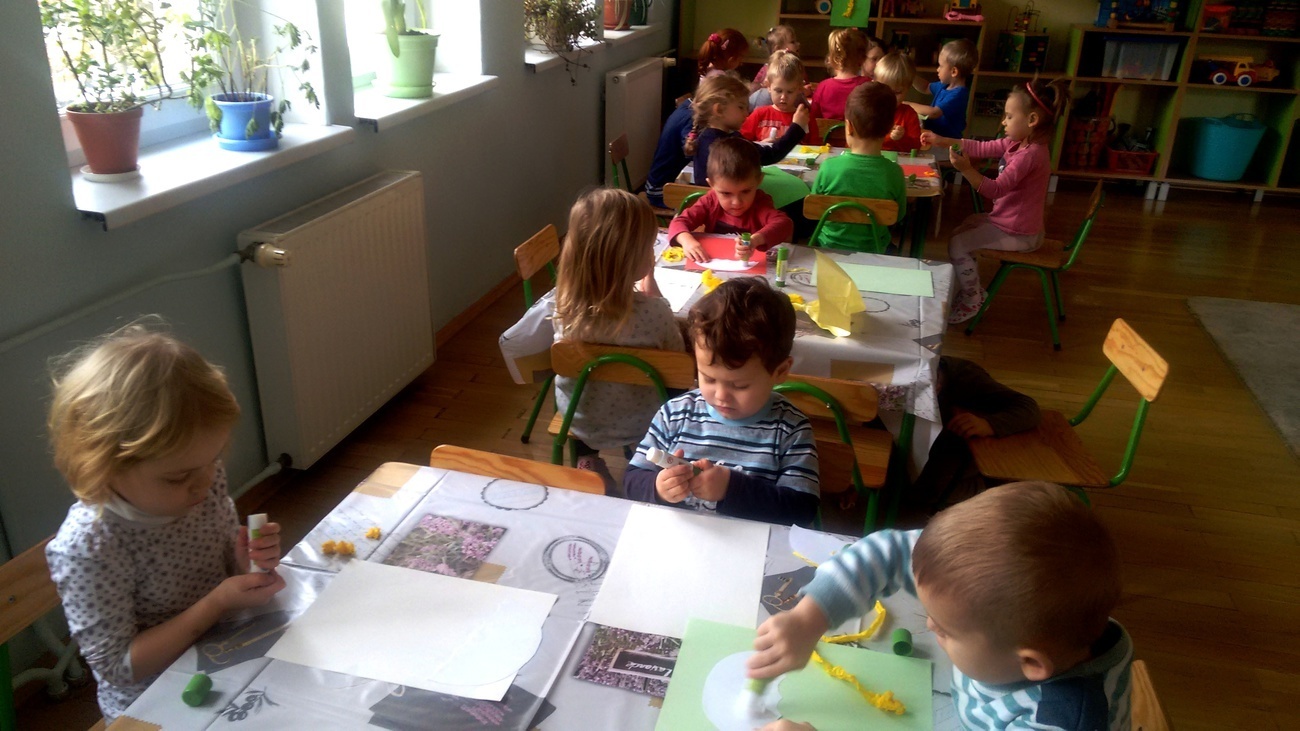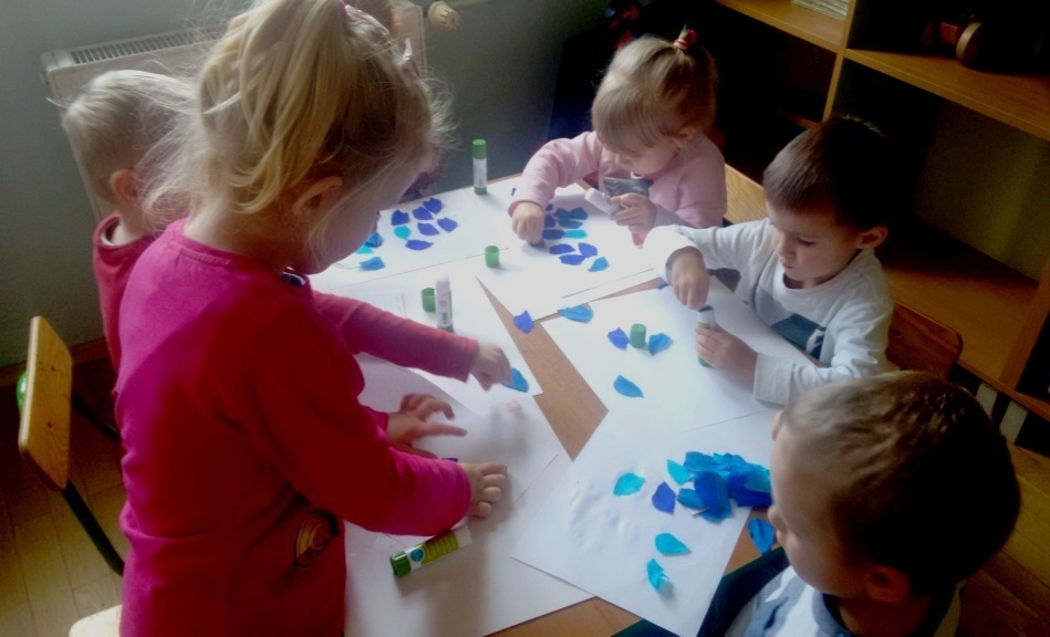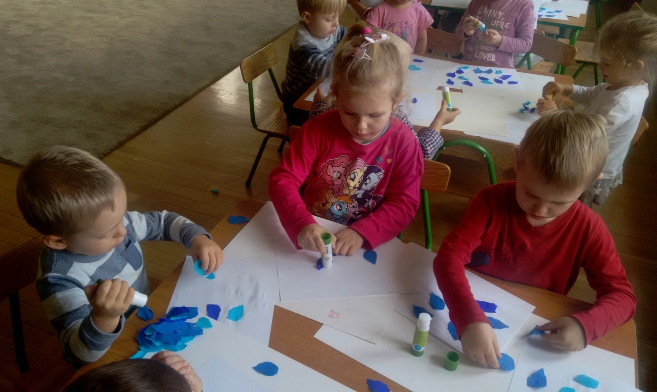 Grupa II zapoznała się ze zjawiskami atmosferycznymi towarzyszącymi jesieni. Smyki wiedzą już jak należy ubrać się podczas deszczowych dni i do czego służy parasol. Dzieci opisywały ( kształt, kolor) przyniesionych przez nauczyciela parasolek oraz wykonały prace plastyczne na podany temat.