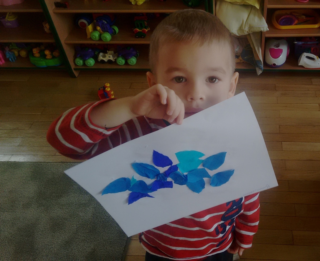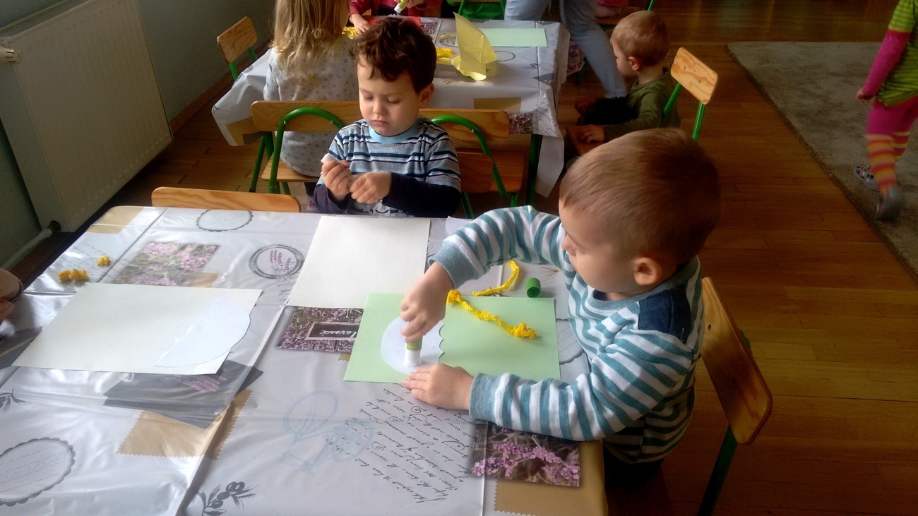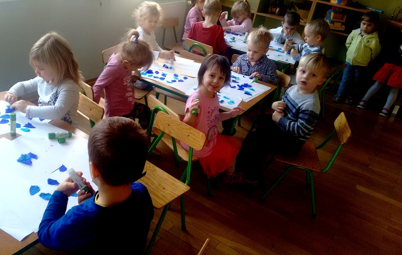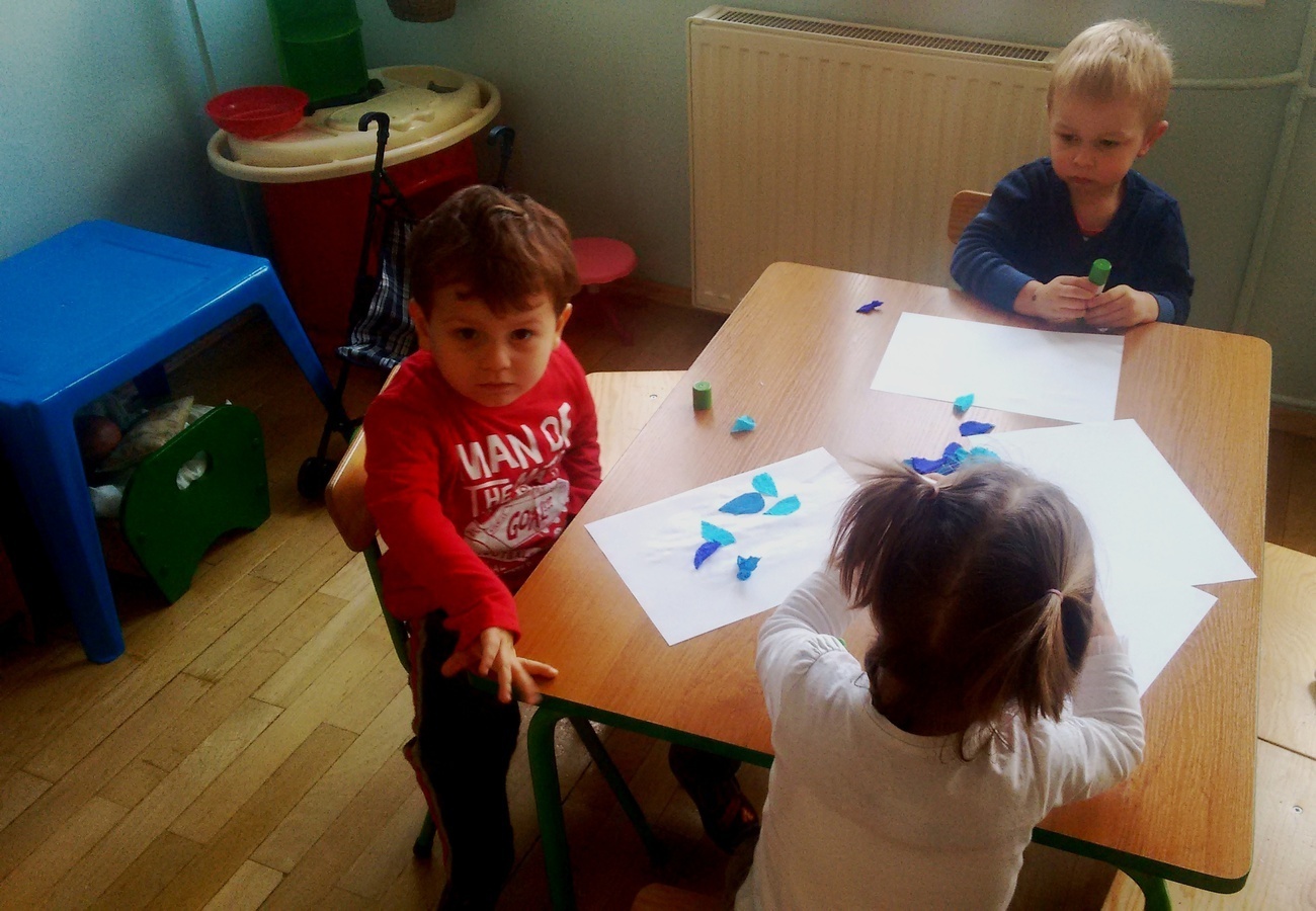 Grupa II zapoznała się ze zjawiskami atmosferycznymi towarzyszącymi jesieni. Smyki wiedzą już jak należy ubrać się podczas deszczowych dni i do czego służy parasol. Dzieci opisywały ( kształt, kolor) przyniesionych przez nauczyciela parasolek oraz wykonały prace plastyczne na podany temat.