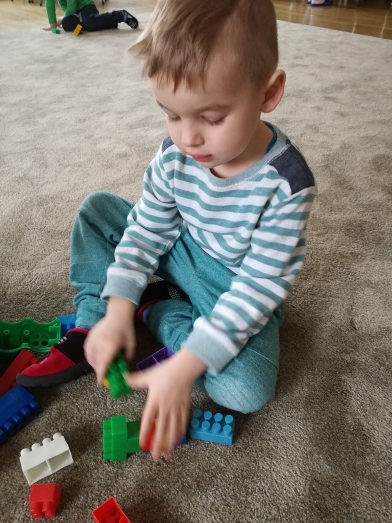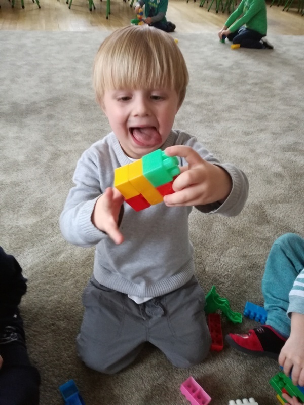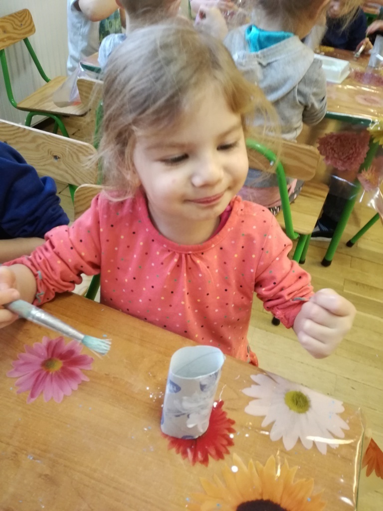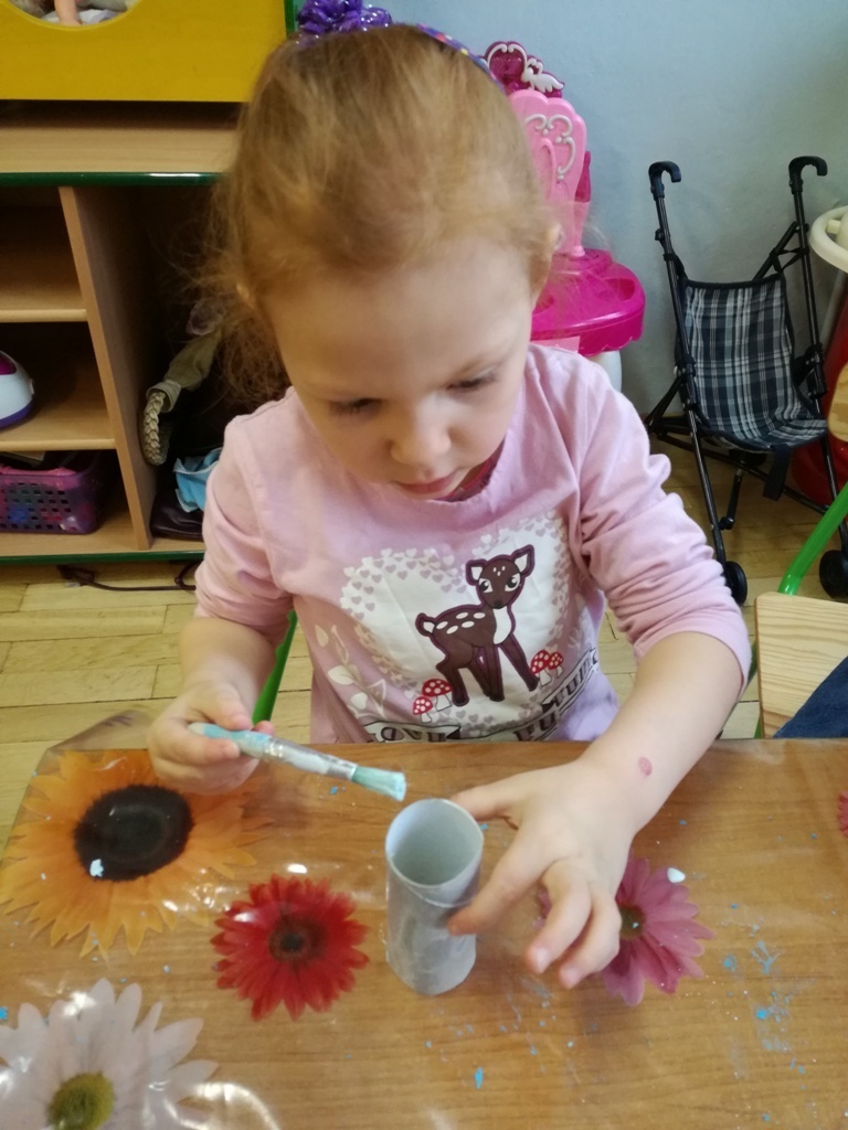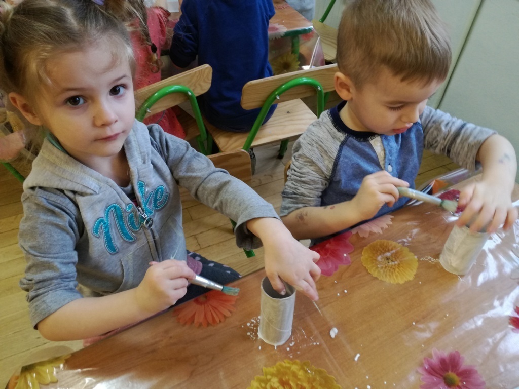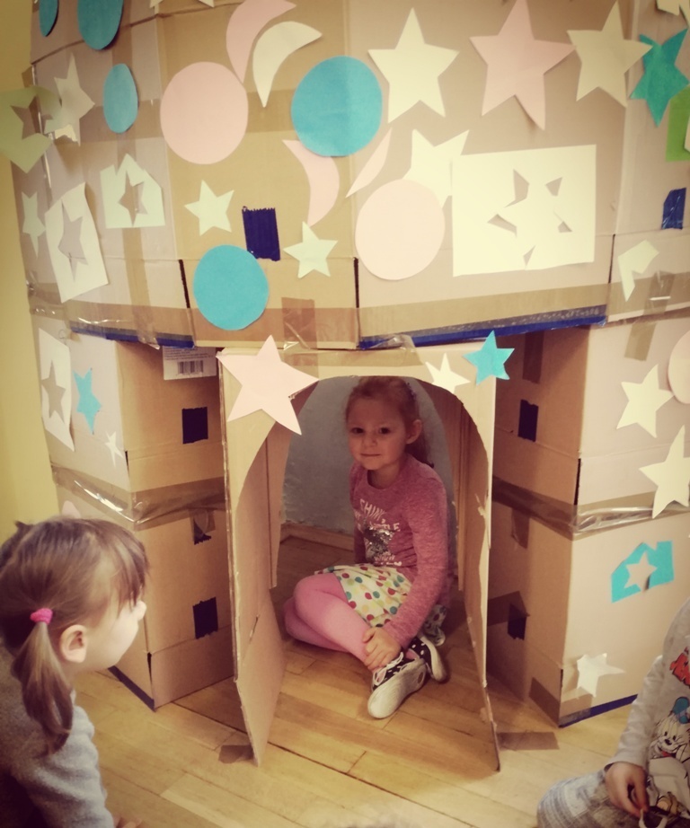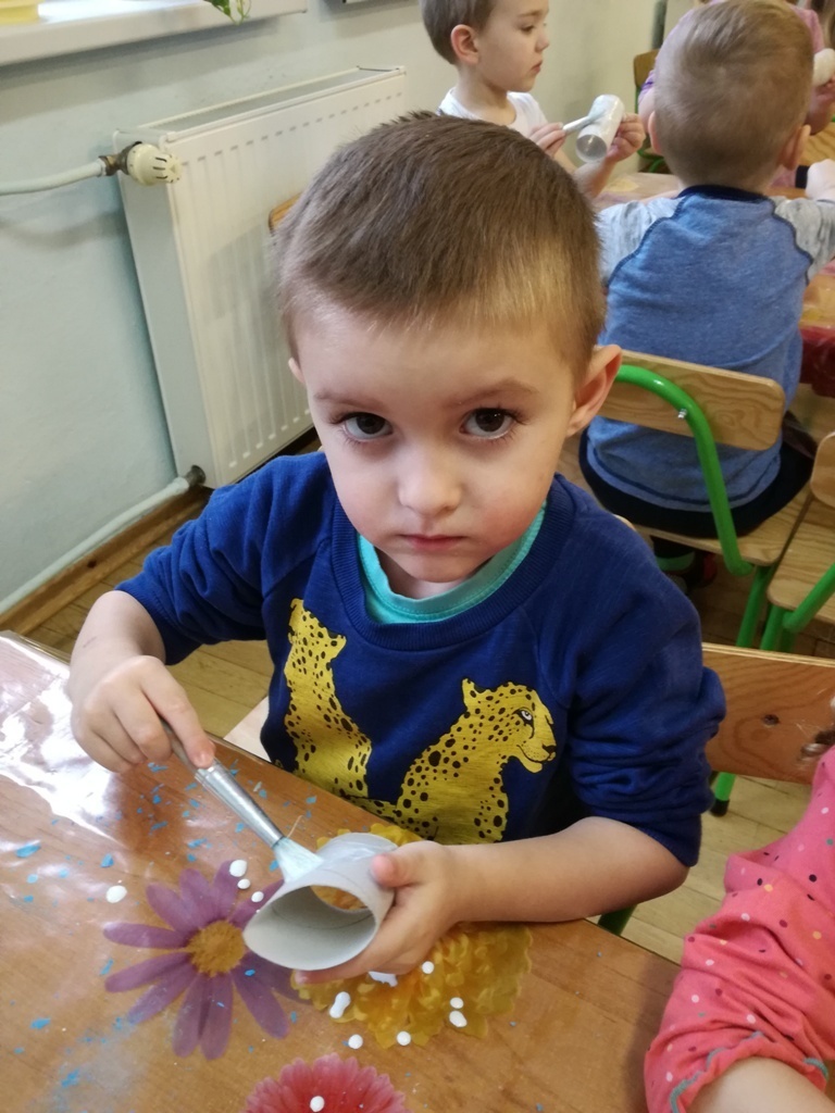 Pani Dominika zaprezentowała dzieciom model Układu Słonecznego, opowiadając o Słońcu, planetach, gwiazdach i księżycu. Poznały najbardziej charakterystyczne cechy planet - ich kolory. Potrafią już wskazać, którą z nich jest Ziemia. W czasie zajęć przedszkolaki obejrzały multimedialną prezentację o planetach oraz wzięły udział w zabawach: „Statki kosmiczne”, „Dzień – noc”. Dzieci poznały postać kosmonauty i wcieliły się podczas zabaw w jego rolę. Ozdobiły statek kosmiczny, którym miały możliwość polecieć w kosmos i skonstruowały swoje własne rakiety z klocków.