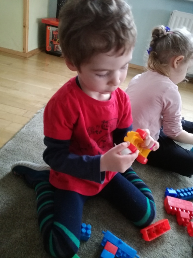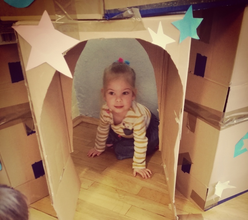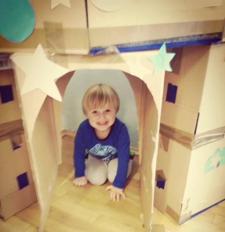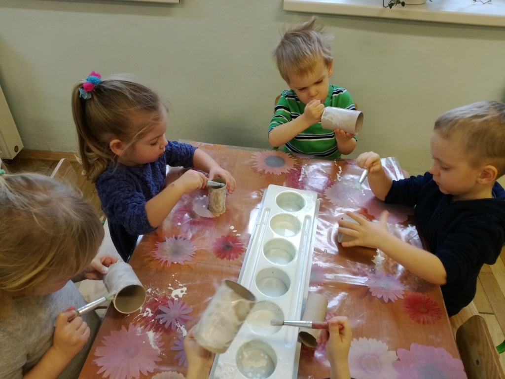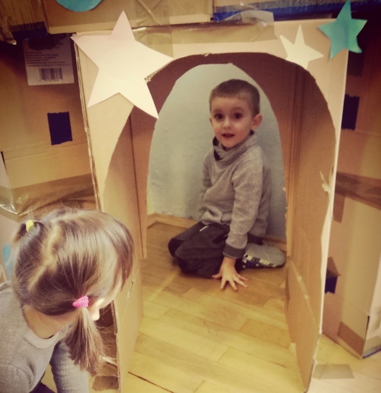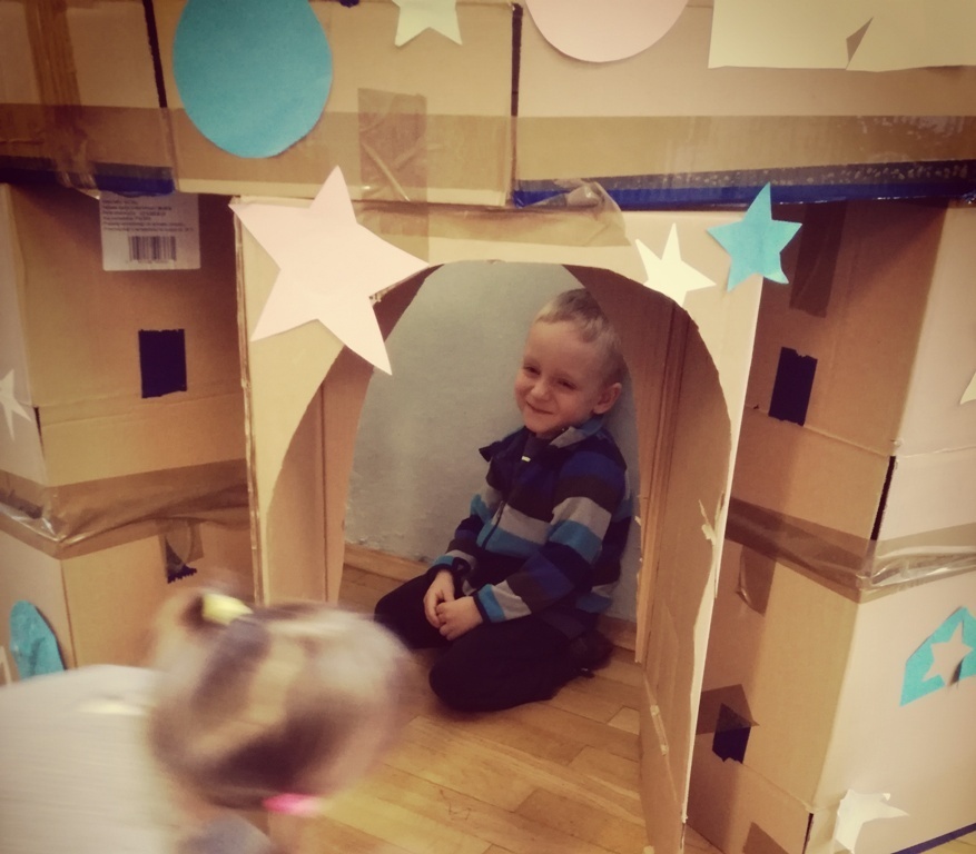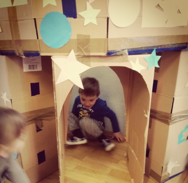 Pani Dominika zaprezentowała dzieciom model Układu Słonecznego, opowiadając o Słońcu, planetach, gwiazdach i księżycu. Poznały najbardziej charakterystyczne cechy planet - ich kolory. Potrafią już wskazać, którą z nich jest Ziemia. W czasie zajęć przedszkolaki obejrzały multimedialną prezentację o planetach oraz wzięły udział w zabawach: „Statki kosmiczne”, „Dzień – noc”. Dzieci poznały postać kosmonauty i wcieliły się podczas zabaw w jego rolę. Ozdobiły statek kosmiczny, którym miały możliwość polecieć w kosmos i skonstruowały swoje własne rakiety z klocków.