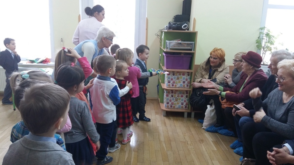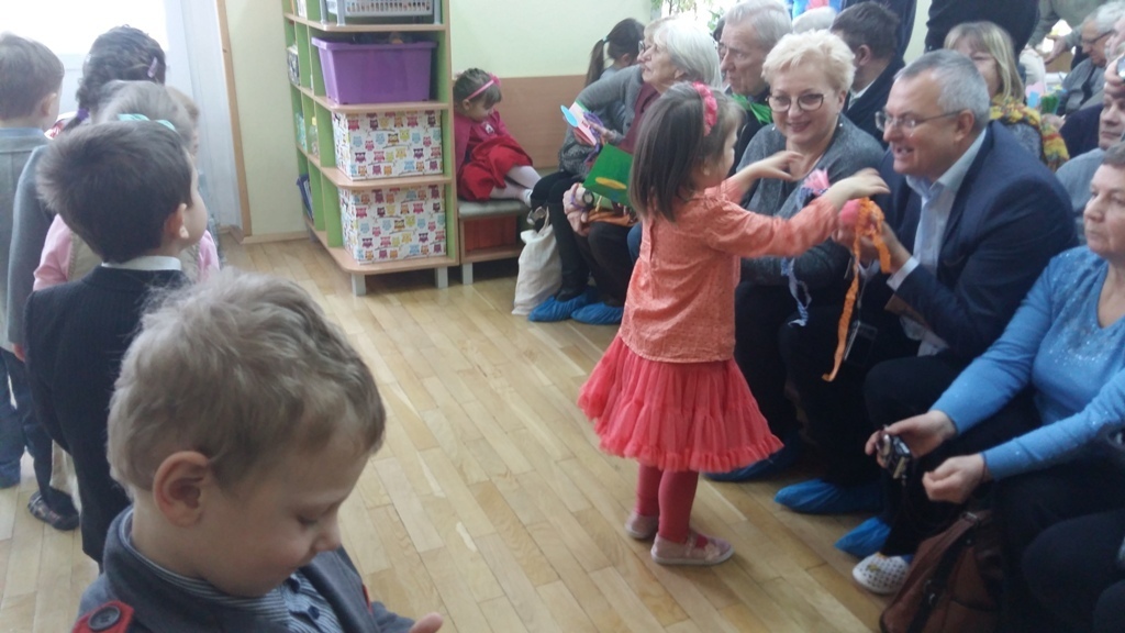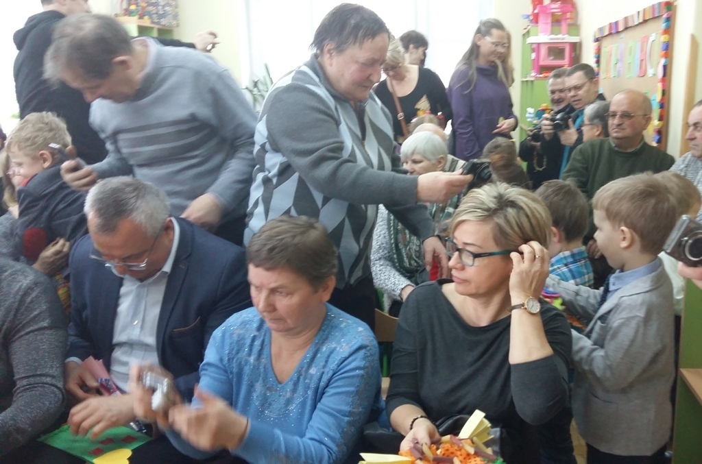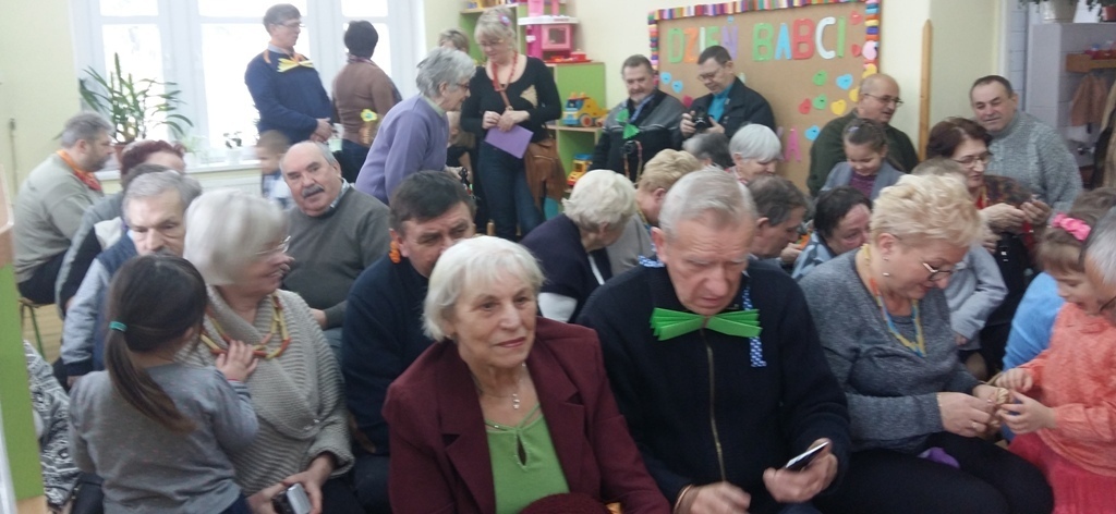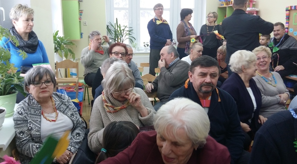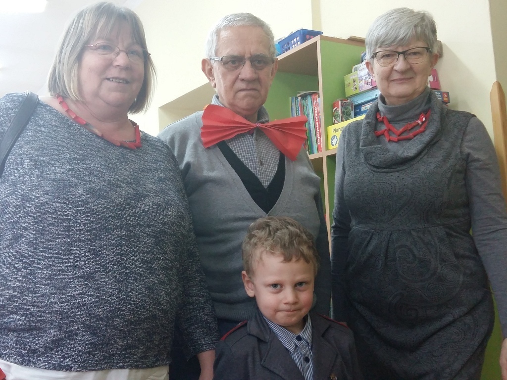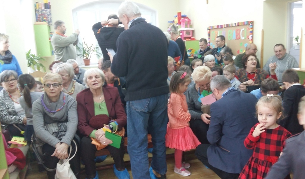 W dniu 20.01.2017 r. odbyły się w naszej grupie uroczystości z okazji Dnia Babci i Dziadka. Przygotowaliśmy dla naszych gości dużo niespodzianek i wszystko zrobiliśmy sami. Były kolorowe korale z makaronu dla naszych babć i szykowne muszki dla dziadków. Nie zabrakło oczywiści laurek i kwiatków. Tak starannie wykonane upominki wręczyliśmy po występach (zaśpiewaliśmy trzy piosenki i recytowaliśmy jeden wiersz). Najmilszym dla nas punktem uroczystości było wręczenie prezentów i przytulanie się do naszych babć i dziadków. Kochane Babcie i Kochani Dziadkowie dziękujemy Wam bardzo serdecznie.