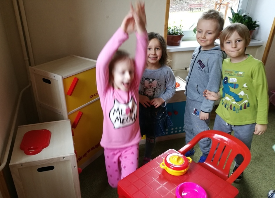 Grupa IV to niesamowite dzieci mądre, pomysłowe i grzeczne, dlatego też zasłużyły na niespodziankę, która czekała na nich w sali. Podczas trwających ferii, dzieci wybrały się na spacer, a po powrocie długo przecierały oczy ze zdumienia. W naszej sali pojawiły się nowe zabawki. Nowe komplety klocków i gier stolikowych, stragan z prawdziwego zdarzenia i komplet mebli kuchennych. Najchętniej wszyscy od razy rzucilibyśmy się do zabawy, ale nasza pani poprosiła byśmy wcześniej zebrali się na dywanie. Wspólnie razem omówiliśmy zasady bawienia się nowymi zabawkami, oraz tego jak o nie dbać by posłużyły nam jak najdłużej. Po skończonej rozmowie, podzieliliśmy się na mniejsze grupy i ustaliliśmy kto kim jest w zabawie. Sebastian został sklepikarzem, gdy tylko otworzył sklep, zaraz ustawiła się kolejką, klientów. Hubert i Zuzia wcielili się w rolę mamy i taty, a Tomek był zaopatrzeniowcem, dbał by w domu niczego nie zabrakło. Pozostałe dzieci zaraz podchwyciły zabawę i przyłączyły się. Bawiąc się w ten sposób czas szybko leci, nawet nie zauważyliśmy, gdy przyszli po nas rodzice. Teraz nie możemy się doczekać, gdy znów będziemy mogli wrócić do zabawy.