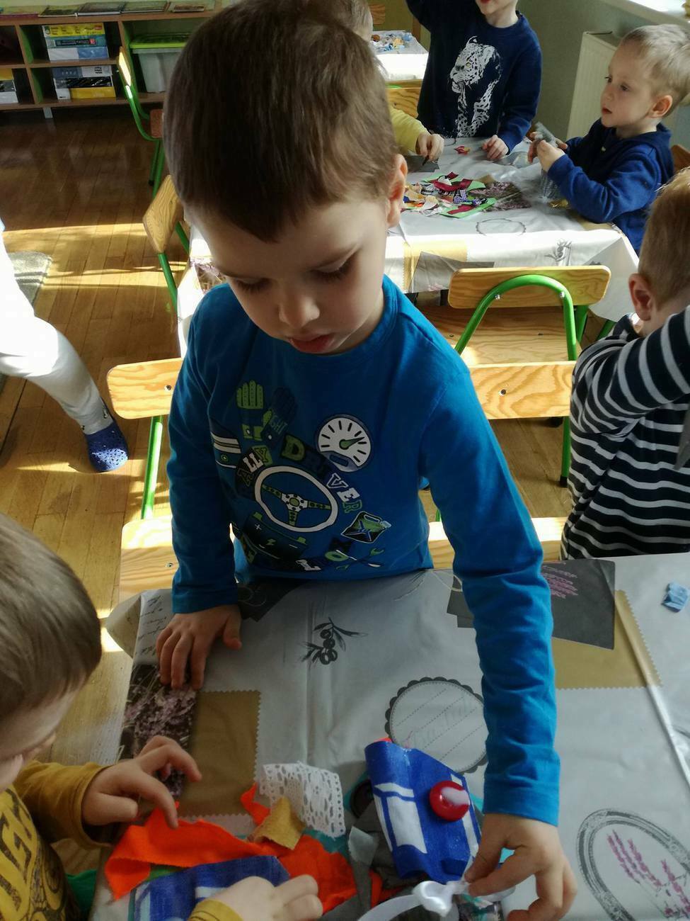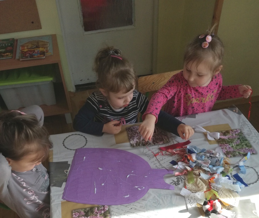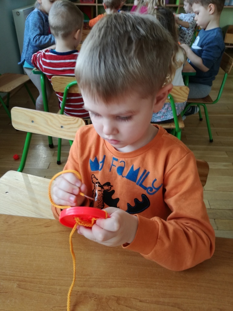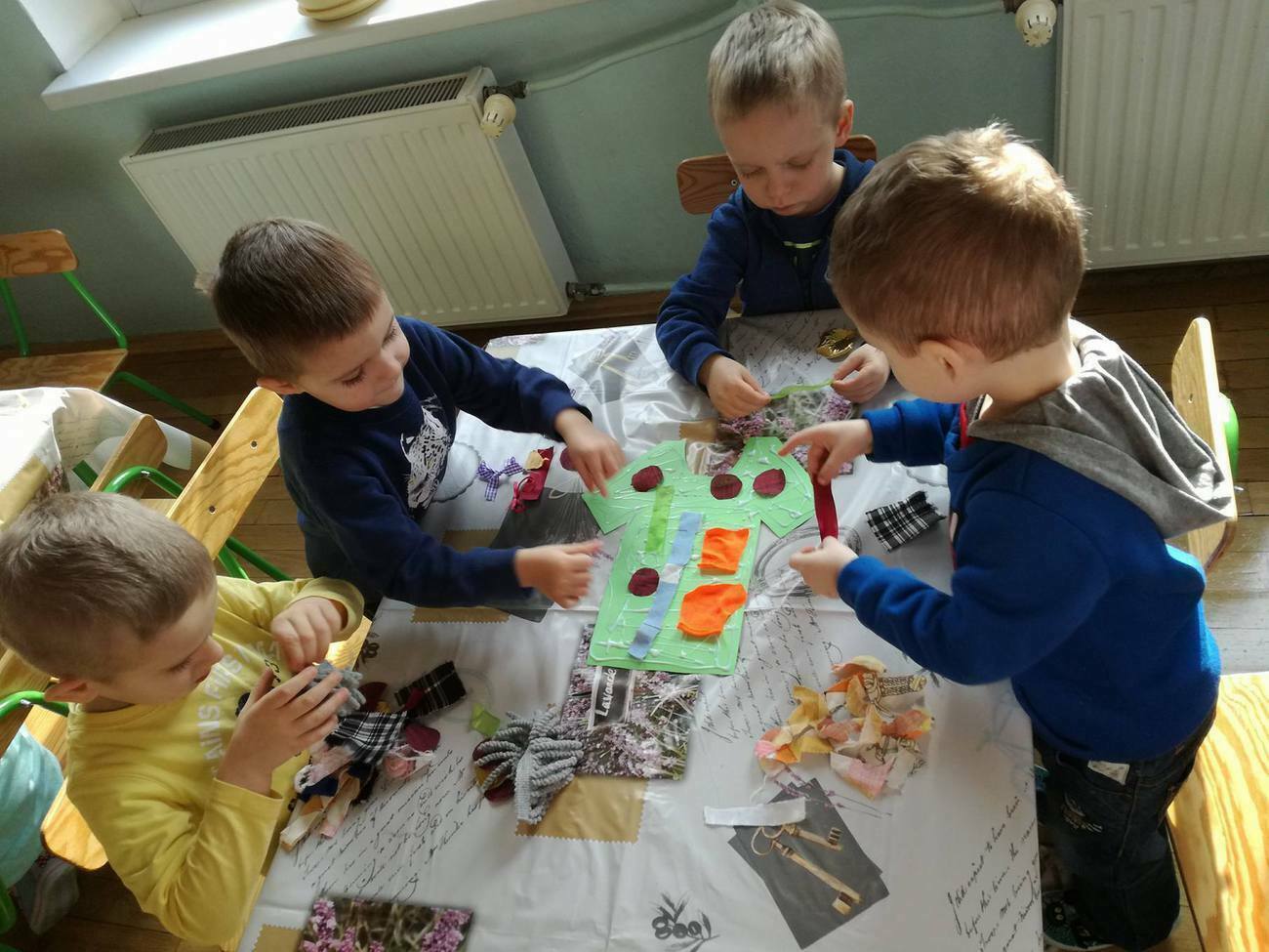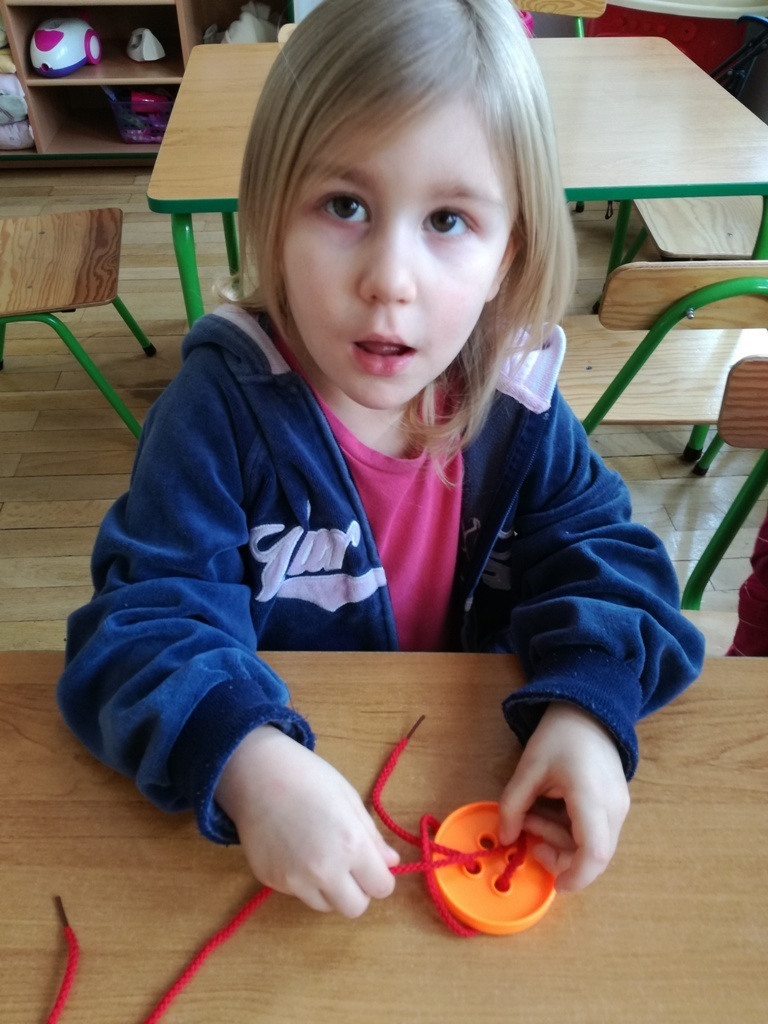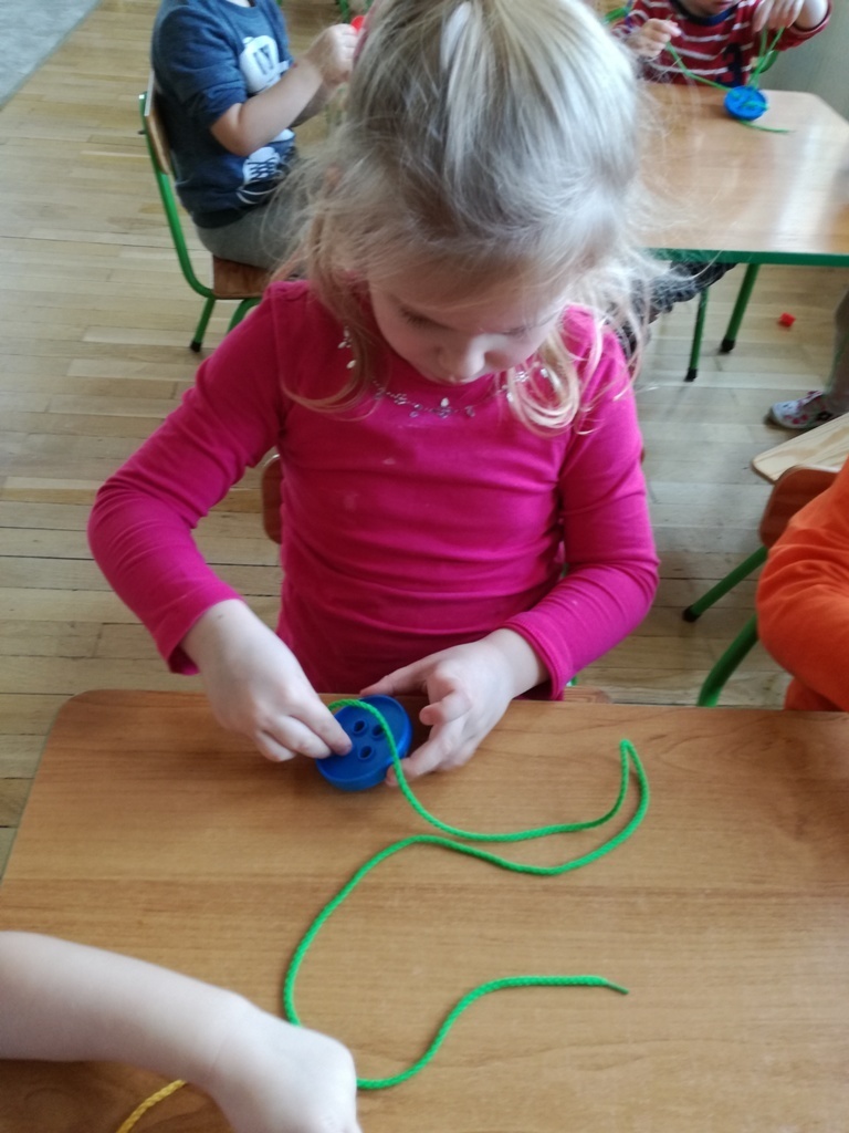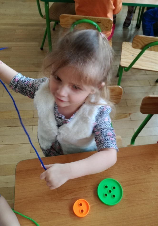 W tym dniu przyglądaliśmy się pracy pani krawcowej, oglądając prezentację przygotowaną przez panią Dominikę. Dowiedzieliśmy się, że pani krawcowa potrzebuje do swojej pracy bardzo dużo przyborów, przede wszystkim: maszyny do szycia, nożyczek, igieł, różnego koloru nici, guzików, itp. Poznaliśmy etapy powstawania ubrań. Próbowaliśmy również przewlec nitkę w postaci sznureczka przez dziurki w dużych guzikach. W grupach zaprojektowaliśmyy sukienki oraz koszulki z różnego rodzaju materiałów. Zajęcia miały na celu poznanie pracy krawcowej oraz narzędzi potrzebnych do pracy, etapów powstawania ubrań oraz rozwijanie sprawności manualnych i inwencji twórczej.