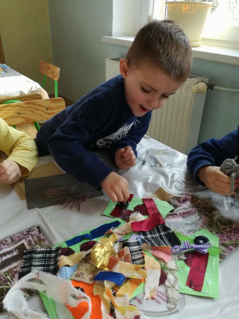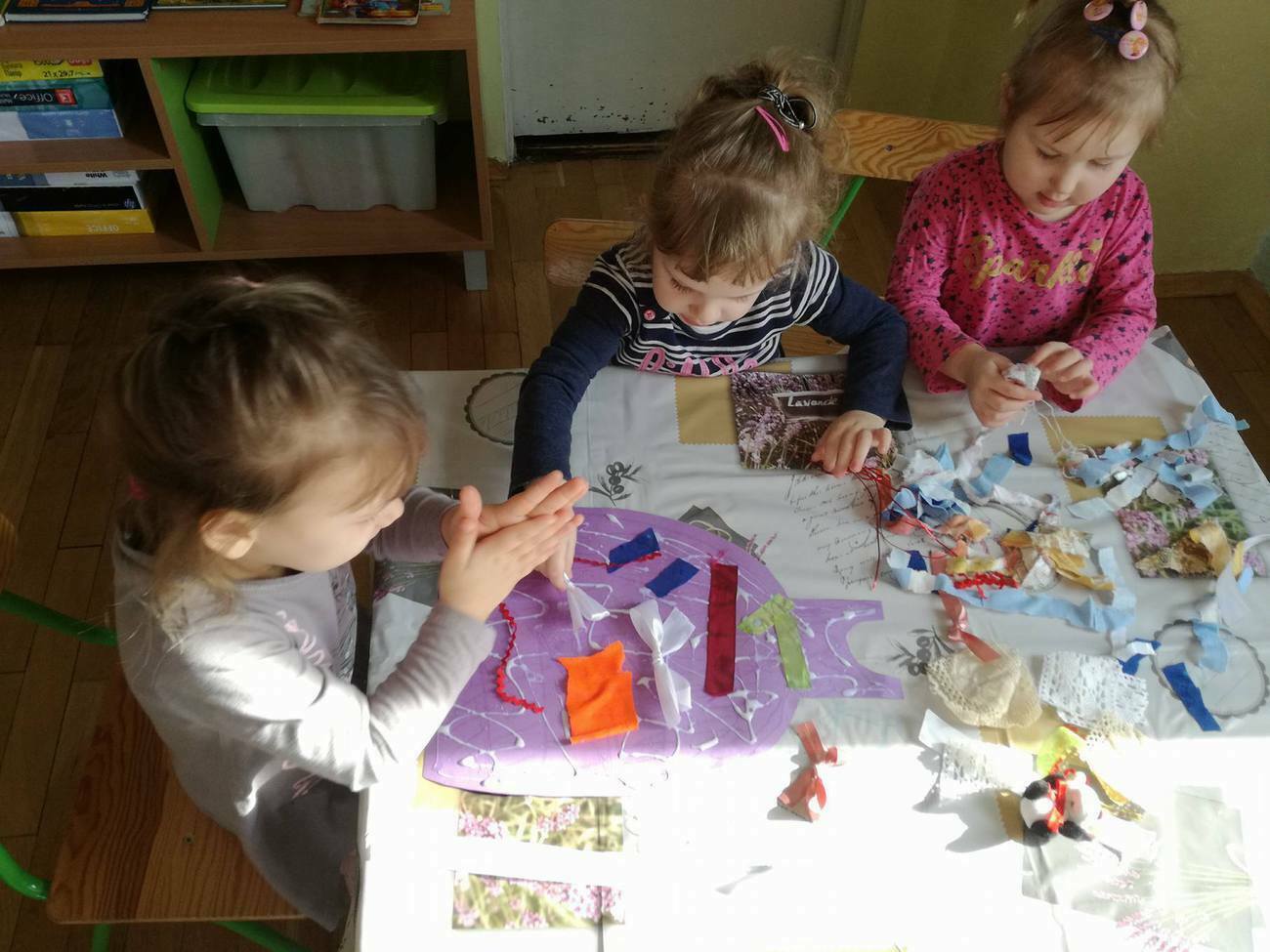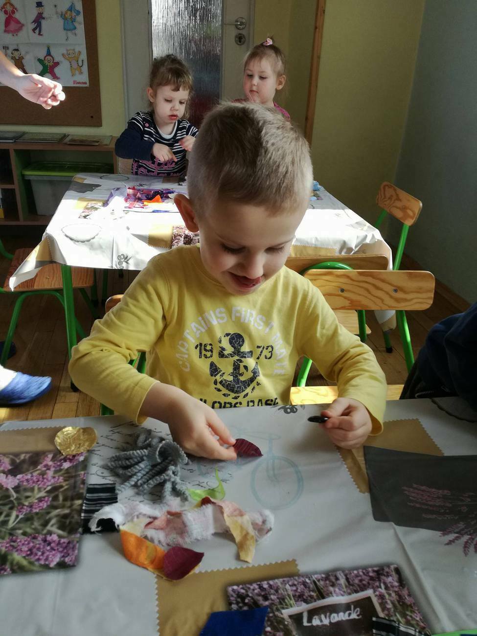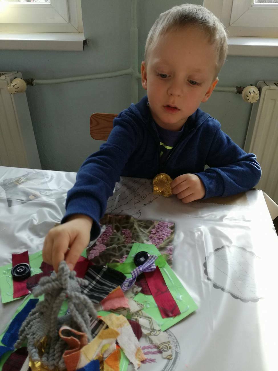 W tym dniu przyglądaliśmy się pracy pani krawcowej, oglądając prezentację przygotowaną przez panią Dominikę. Dowiedzieliśmy się, że pani krawcowa potrzebuje do swojej pracy bardzo dużo przyborów, przede wszystkim: maszyny do szycia, nożyczek, igieł, różnego koloru nici, guzików, itp. Poznaliśmy etapy powstawania ubrań. Próbowaliśmy również przewlec nitkę w postaci sznureczka przez dziurki w dużych guzikach. W grupach zaprojektowaliśmyy sukienki oraz koszulki z różnego rodzaju materiałów. Zajęcia miały na celu poznanie pracy krawcowej oraz narzędzi potrzebnych do pracy, etapów powstawania ubrań oraz rozwijanie sprawności manualnych i inwencji twórczej.