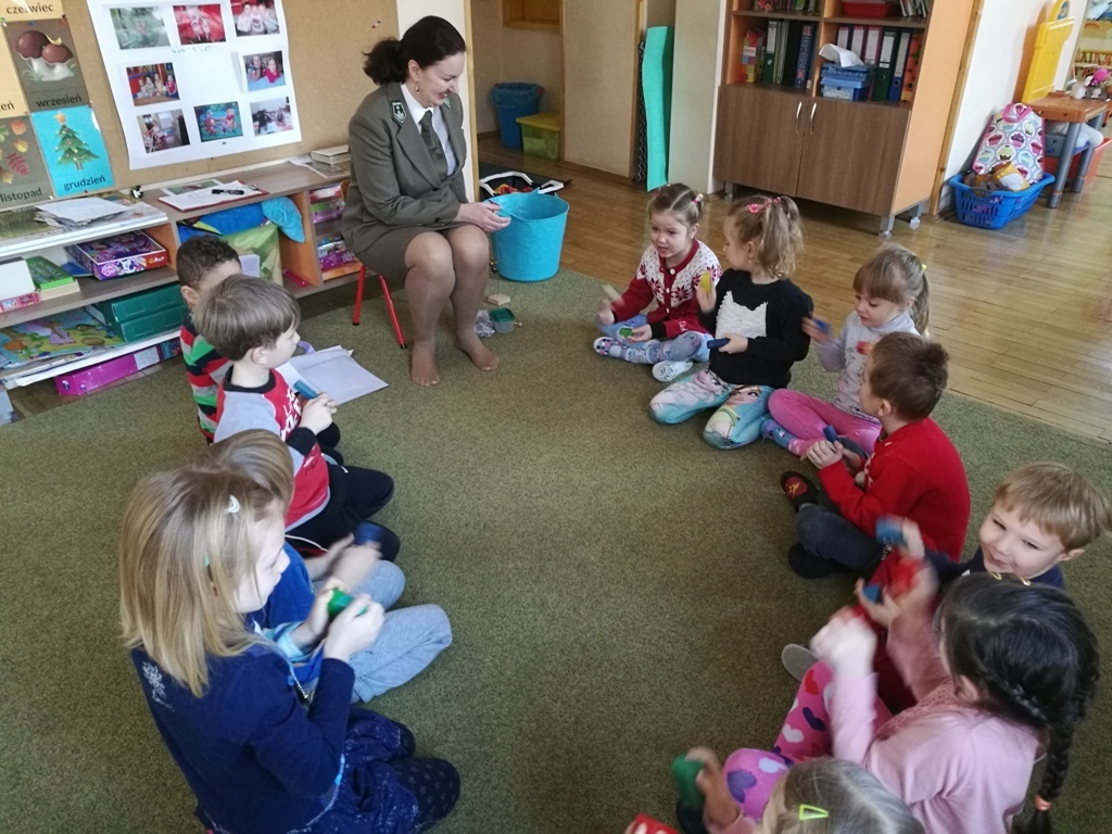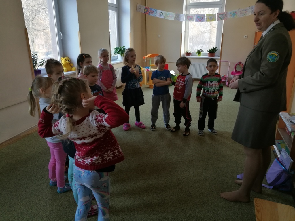 Ten piątek bł bardzo pracowity dla przedszkolnych tygrysków. Dzień zaczęliśmy od spotkania z panią z KPN-u, z którą rozmawialiśmy o zwierzętach. Tematem naszego spotkania były dzięcioły – omawialiśmy ich różne gatunki oraz zwyczaje. Wiemy już, że w Polsce występuje: dzięcioł czarny, dzięcioł zielony, dzięcioł trzy palczasty i dzięcioł duży. Każdy z nich ma swoje charakterystyczne cechy, które poznaliśmy i omówiliśmy. Dowiedzieliśmy się czym odżywiają się te ptaki oraz w jaki sposób budują swoje dziuple. Następnie świetnie bawiliśmy się udając dzięcioły uciekające do dziupli lub lecące na spacer cała rodziną. Dzięki takim zajęciom poszerzamy swoją wiedzę o otaczającym świecie i przyrodzie, która jest wokół nas. Teraz będąc na wycieczce w lesie uważniej będziemy obserwować drzewa i ich mieszkańców.