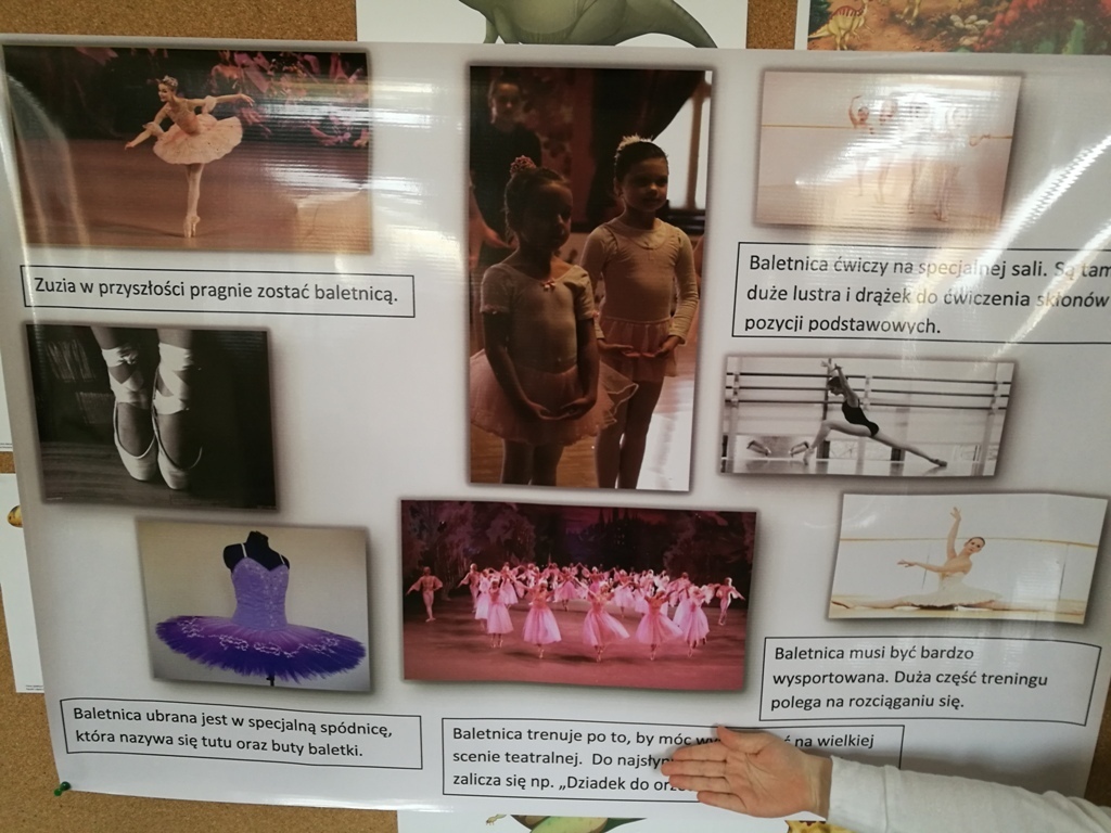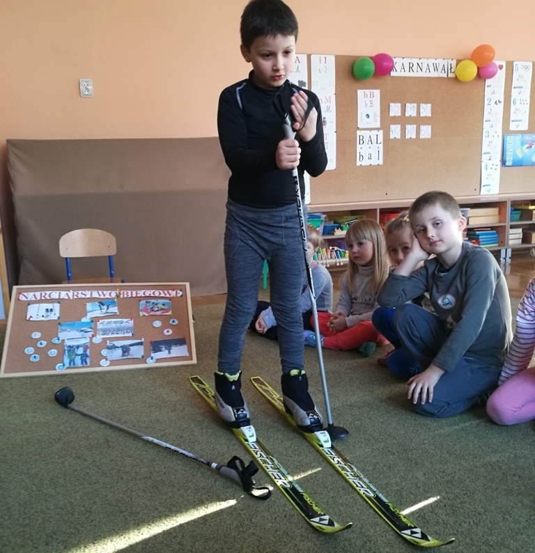 Przez okres od 01.03-07.03.2017 r., w naszej grupie miały miejsce kolejne prezentacje zainteresowań przygotowanych przez dzieci. Z wielką uwagą wysłuchaliśmy wystąpienia Marcina, który opowiedział nam o swojej pasji sportowej – narciarstwie biegowym. Oprócz zdjęć i ilustracji Marcin przyniósł ze sobą sprzęt narciarski i zaprezentował nam jak powinna wyglądać postawa w trakcie biegu narciarskiego. Następnie o swojej pasji opowiedziała nam Zuzia, która kocha taniec, a dokładnie balet. Dzięki Zuzi wiemy jak nazywa się spódnica baletnicy i najsłynniejszy balet na świecie. Usłyszeliśmy również, jak wiele wysiłku i pracy trzeba włożyć, by dobrze tańczyć. Ogromne wrażenie zrobił na nas szpagat wykonany na koniec prezentacji przez Zuzię. Następną osobą, która opowiedziała nam o swoich zainteresowaniach była Hania. Hania kocha zwierzęta i w przyszłości chce zostać weterynarzem. W trakcie wystąpienia opowiedziała nam o szynszylach, chomiku, pieskach i kotkach – o ich zwyczajach i o opiece nad nimi. Wszyscy z uwagą wysłuchaliśmy tych cennych rad. Swoją prezentację przygotował także Karol, który opowiedział o AIKIDO, czyli o sporcie, który trenuje. Swoją przygodę rozpoczęliśmy od poznania znaczenia słowa AIKIDO. Karol zaprezentował nam broń i strój, w którym trenuje. Opowiedział o tym, kto stworzył tę sztukę walki i jakie są jej podstawowe elementy. Wszyscy słuchaliśmy jak zaczarowani i byliśmy pod wrażeniem umiejętności Karola. Czekamy na kolejne wystąpienie naszych kolegów i koleżanek.