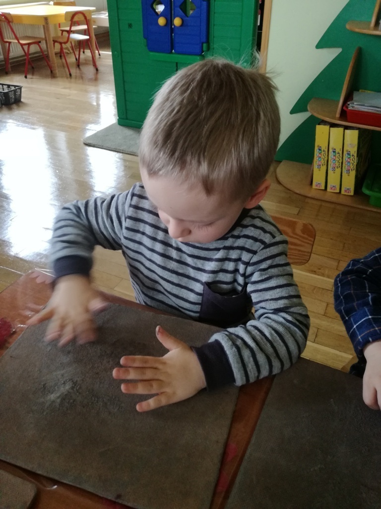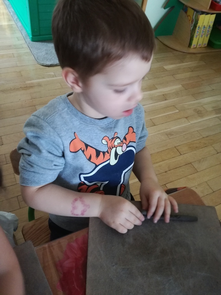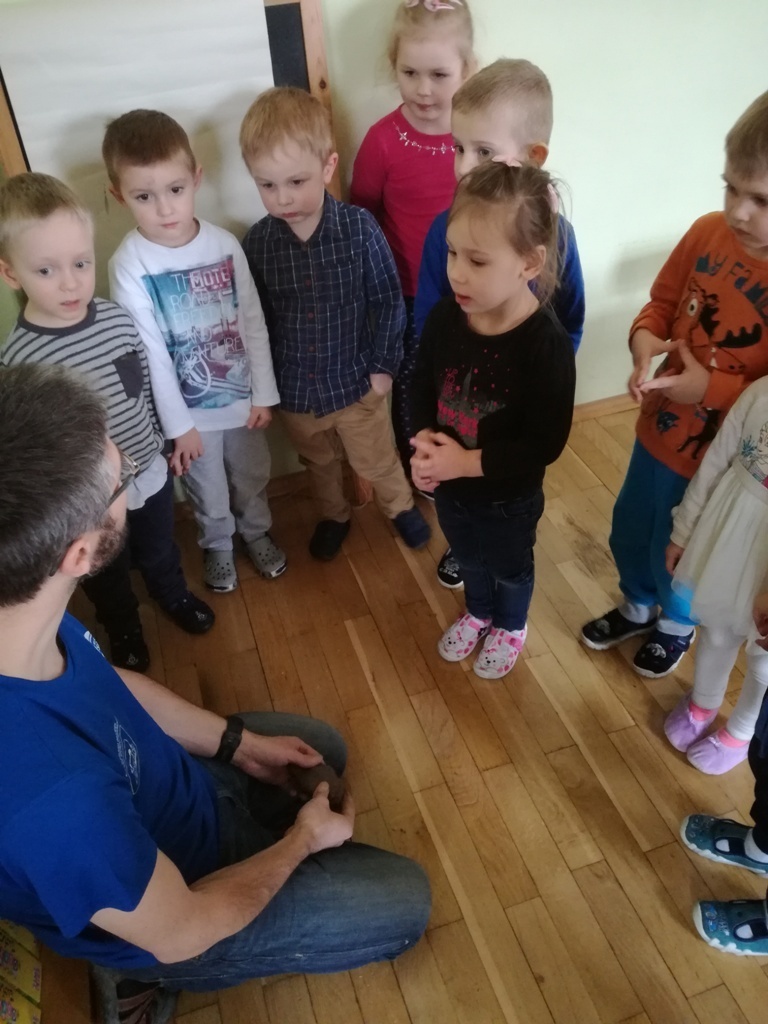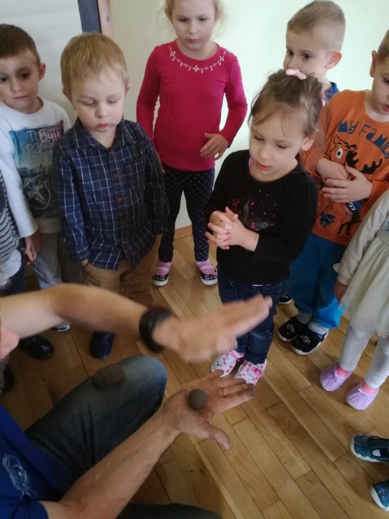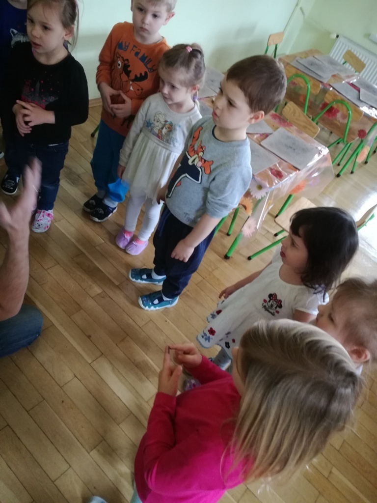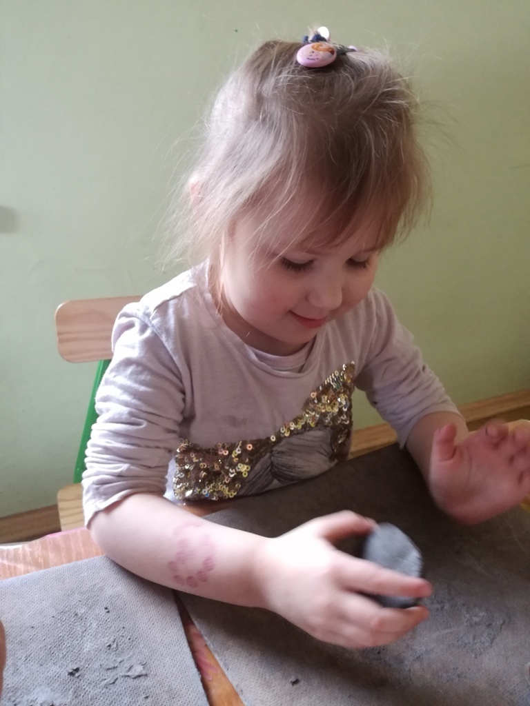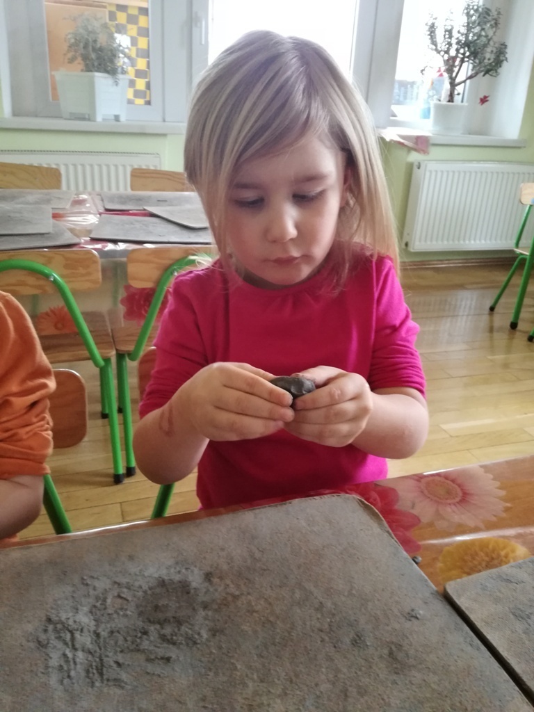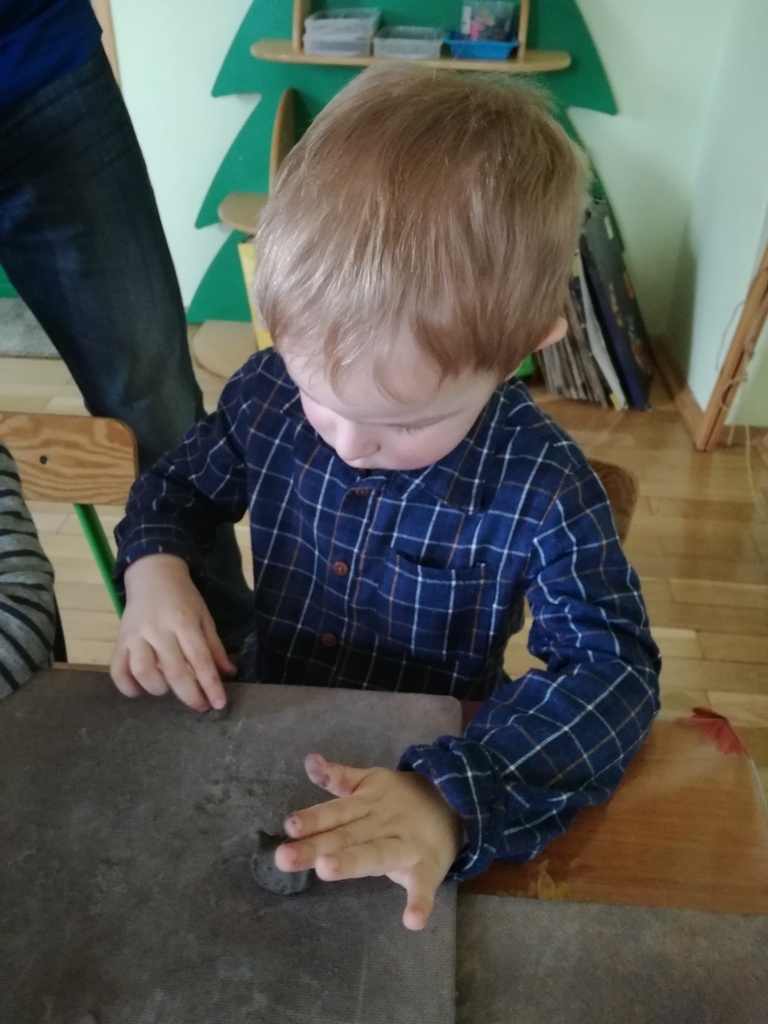 Pan Rafał zademonstrował nam jak wykonać kwiatka z gliny. Najbardziej spodobało nam się ugniatanie rączką kulek – które dołączaliśmy do pozostałych płatków, tworząc kwiatek. Powstały wspaniałe, różnorodne kwiatki, pan Rafał pochwalił nasze prace. Bardzo lubimy te zajęcia.