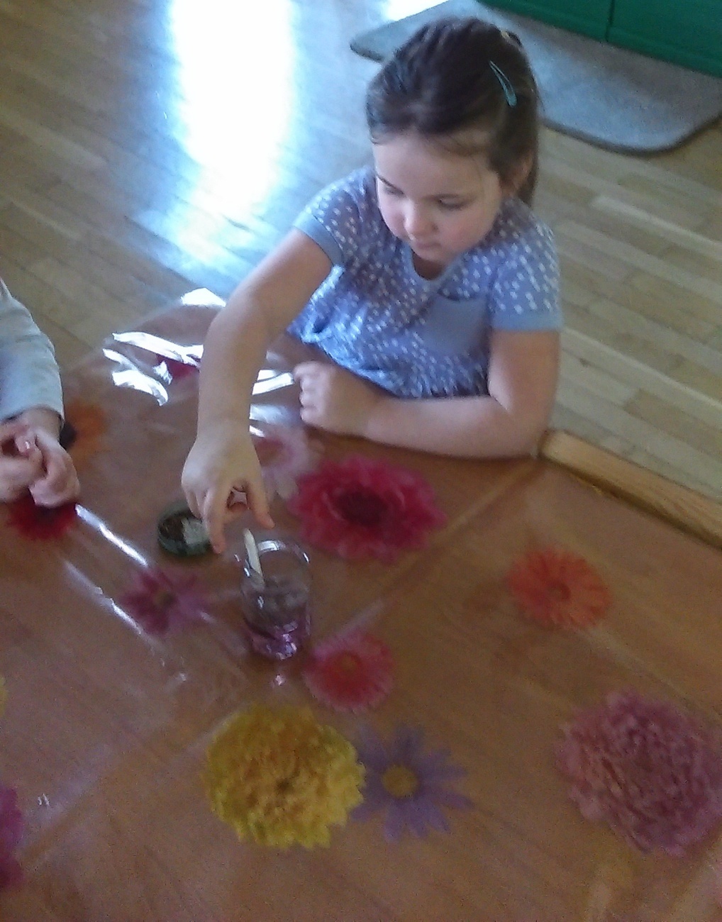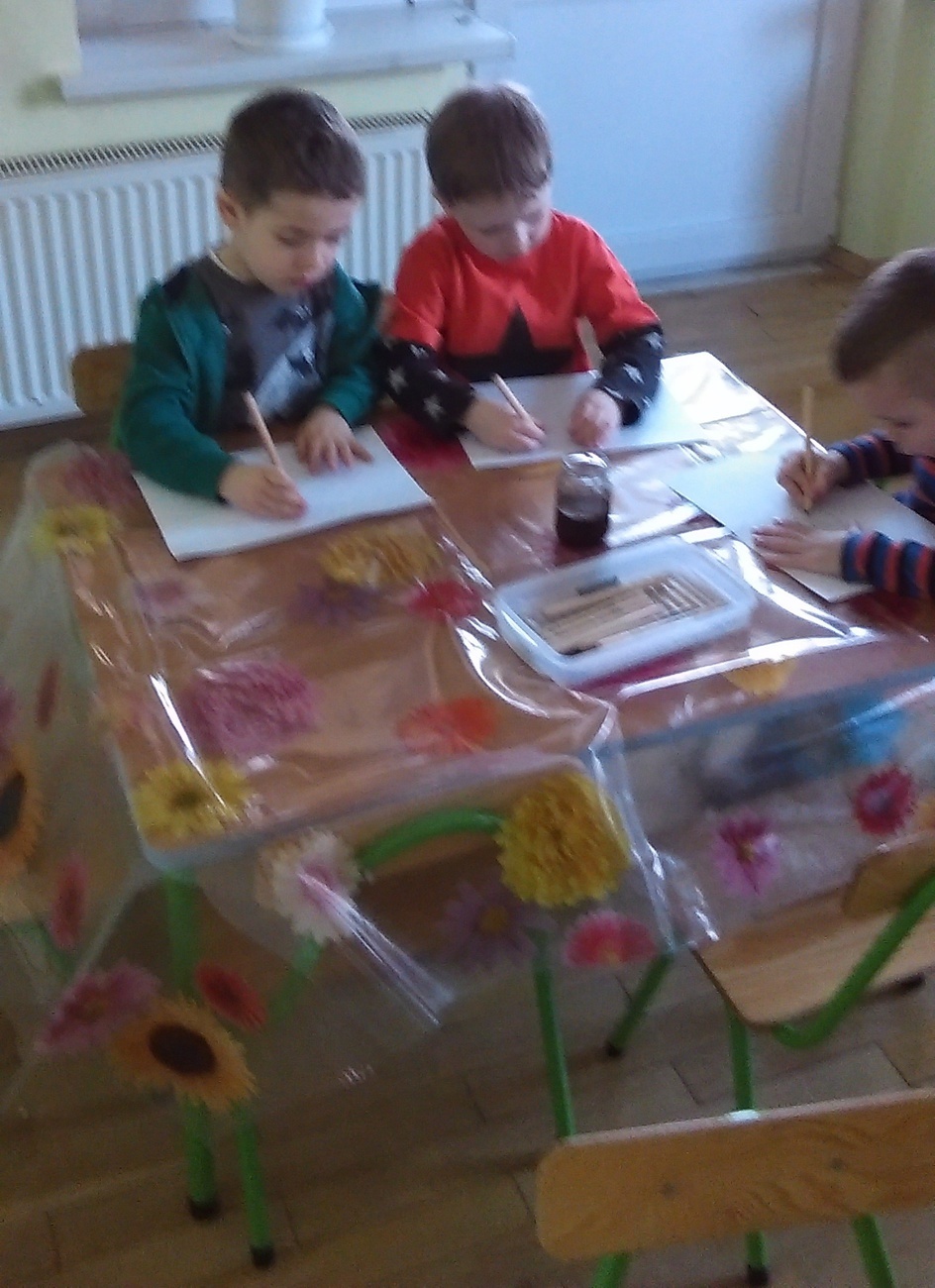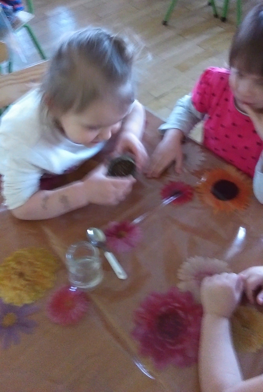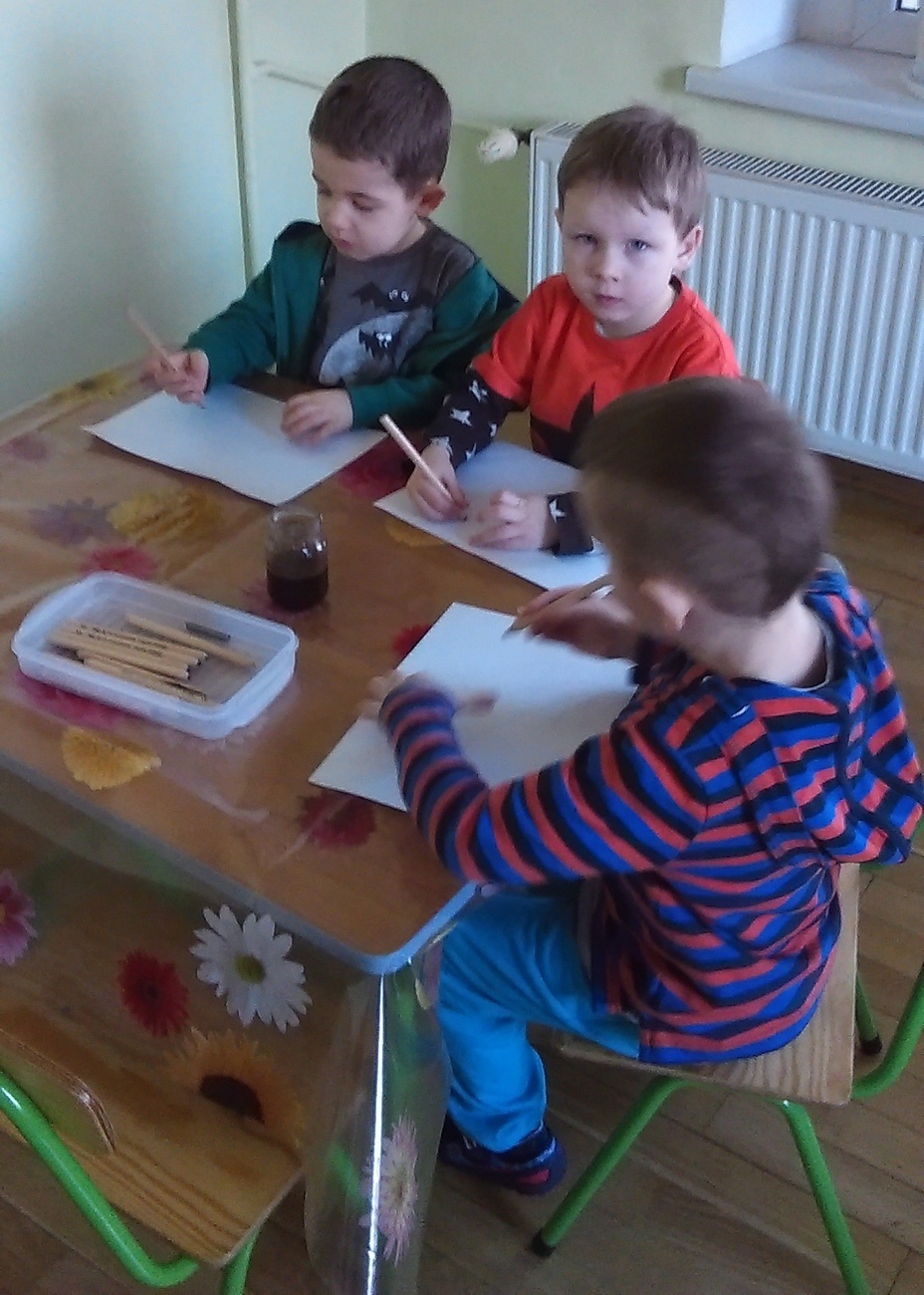 Dzisiaj eksperymentowaliśmy z wodą. Na samym początku pani pokazała nam kilka eksperymentów i wyjaśniła co to wszystko oznacza. Wiemy już, że w ciepłej wozie barwnik szybciej się rozejdzie, że jest coś takiego co się nazywa napięcie powierzchniowe wody i jakie owady to wykorzystują. Podczas naszych eksperymentów zamiast owadów na powierzchni wody unosiła się szpilka, Potem sami mogliśmy wykonać eksperyment: sprawdziliśmy co się stanie jak dodamy do wody: cukier, kawę i herbatę, a następnie zapisaliśmy wyniki naszego eksperymentu.
