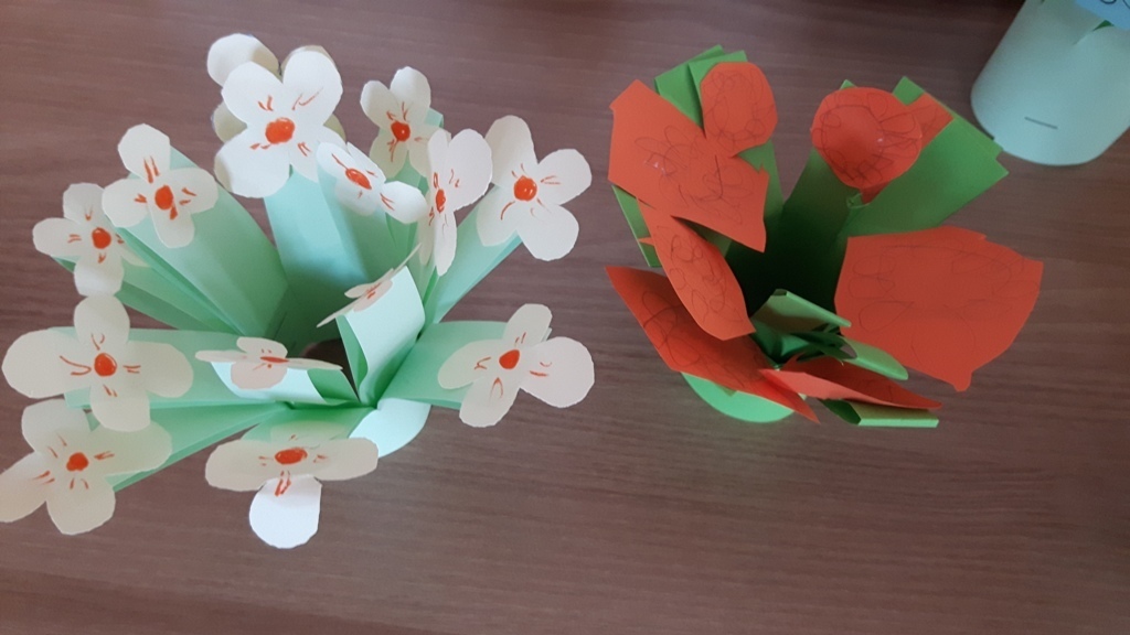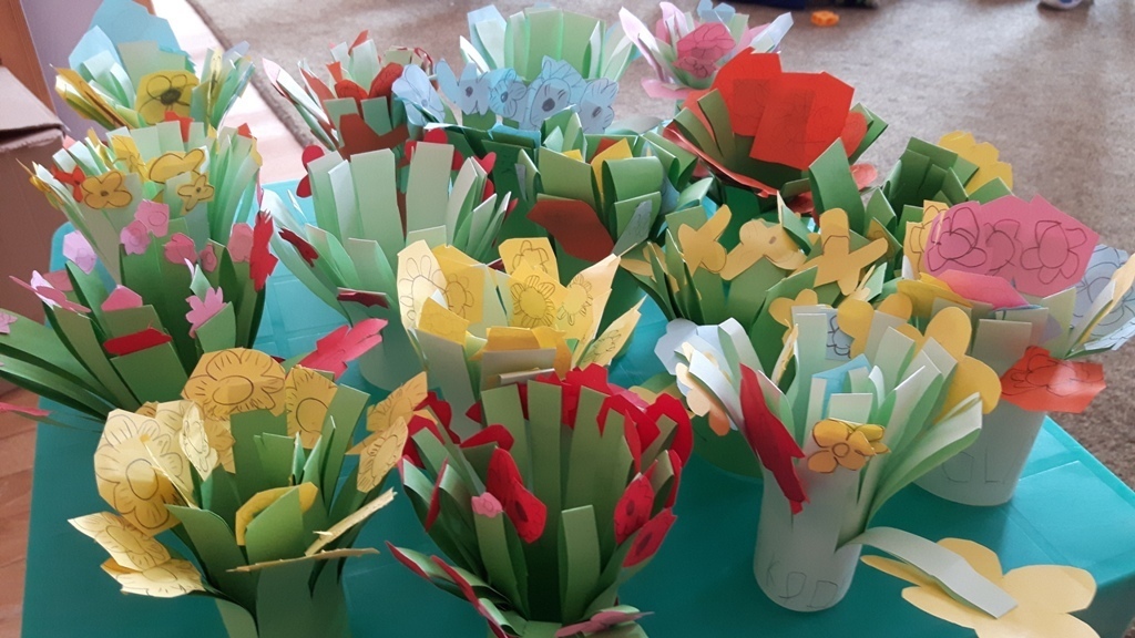 Pierwsze tak ciepłe promienie słońca w marcu natchnęły grupę Zuchów do wykonania wiosennej pracy plastycznej. Wykorzystając kartki z kolorowego papieru, nożyczki i klej. Starszaki wyczarowały piękną, kwiecistą łąkę. Przy jej wykonaniu konieczna była umiejętność prawidłowego posługiwania się nożyczkami oraz duża doza cierpliwości (niektórzy z koronkową precyzją wycinali kwiaty), aby doprowadzić swoje prace do samego końca. Efekty przeszły najśmielsze oczekwania Zuchów. Wiele z nich do wyrażenia zadowolenia i zachwytu z pracy swoje i kolegów użyło określenia "WOW".