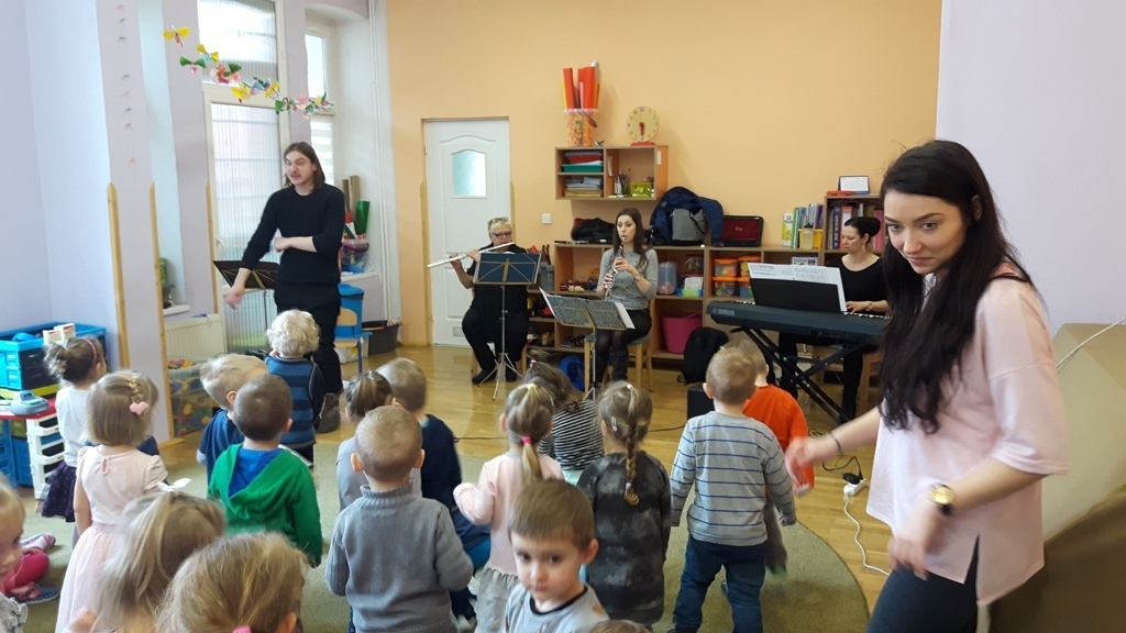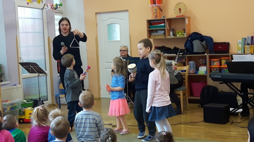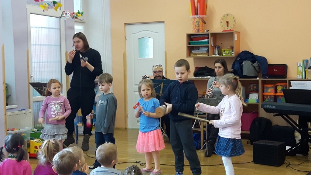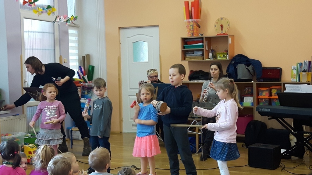 Dziś w naszym przedszkolu gościliśmy muzyków Filharmonii Dolnośląskiej. Tematem naszego spotkania była wiosna na łące. Bawiliśmy się zatem w poszukiwanie odgłosów wiosmy w muzyce, a pomagały nam w tym: flet, klarnet i instrument klawiszowy. Podczas koncertu poczuliśmy, że wiosna zbliża sie do nas wielkimi krokami.