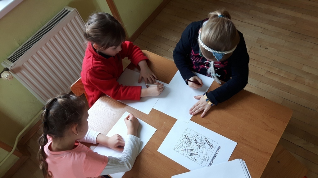 Poniedziałkowy dzień gier planszowych w grupie Zuchów okazał się dużym wyzwaniem dla wszystkich. Zadaniem dzieci było własnoręczne przygotowanie planszy do gry: "Drabiny i węże". Rysowanie planszy według podanego wzoru. Ponumerowanie w odpowiedni sposób pól. Na koniec naniesienie na to wszystko węży i drobin. Niektórzy po kilka razy wykonywali plansze, aby były jak najbliższe ideału. Wielu się udało stworzyć niemal idealne plansze. Inni będą nadal ciężko pracować, aby być zadowolonym z własnej pracy. Idąc za przysłowiem : Pierwsze koty za płoty". Kolejne gry będą na pewno dokładniejsze.