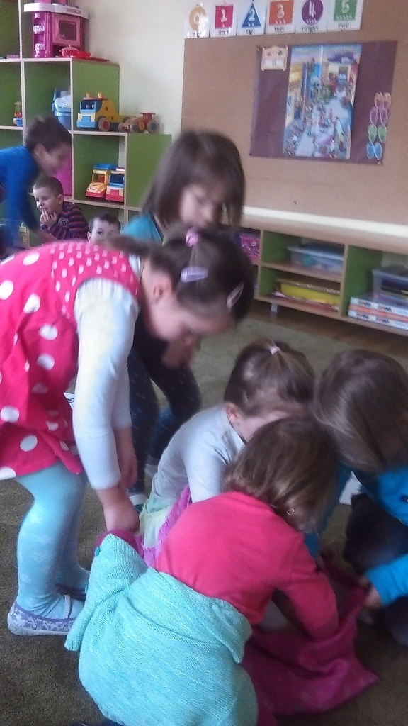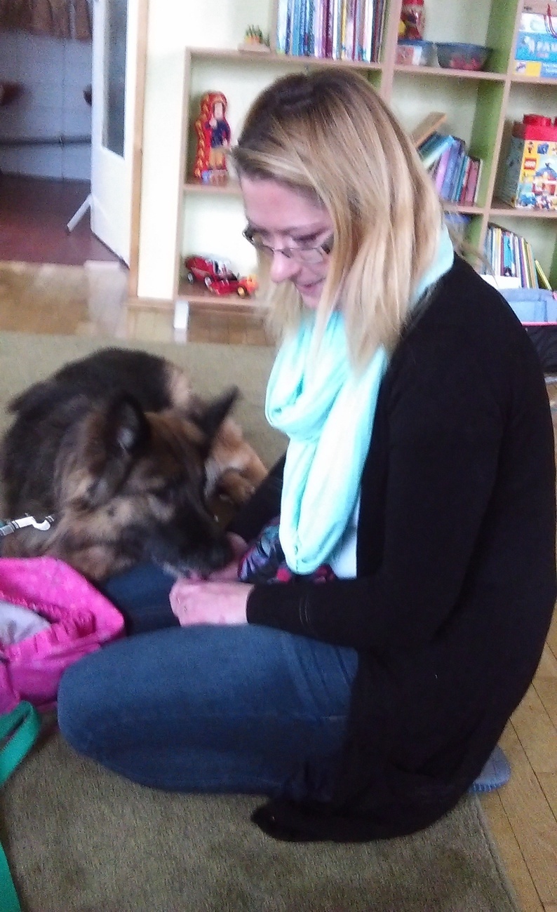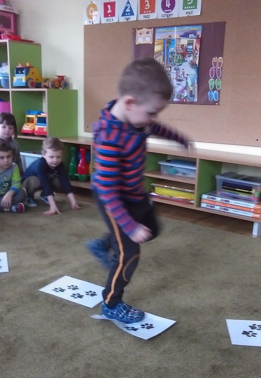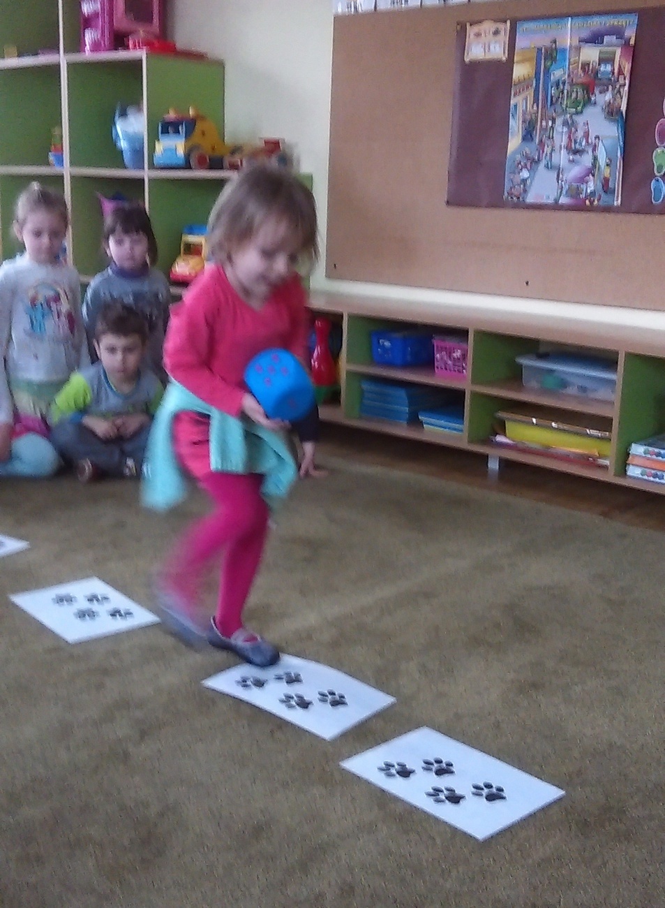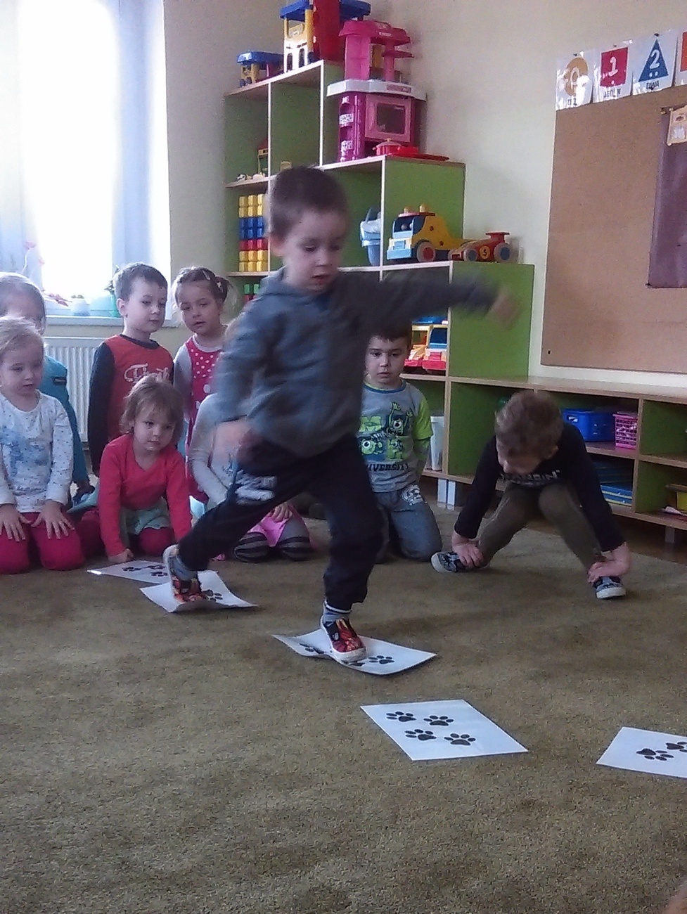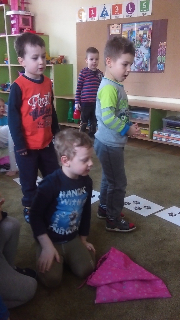 Dziś w przedszkolu mieliśmy wyjątkowego gościa – odwiedziła nas Wandzia. Wandzia to owczarek niemiecki, który przyjeżdża ze swoją opiekunką do naszego przedszkola. Dzisiaj razem z Wandzią trenowaliśmy liczenie. Pani miała dla nas wyjątkowe zadanie – ozdabialiśmy smycz Wandzi. Każdy z nas mógł przypiąć tyle spinaczy ile wskazywały wyrzucane kostką oczka. Na zakończenie wszyscy mogliśmy pogłaskać i przytulić się do Wandzi.