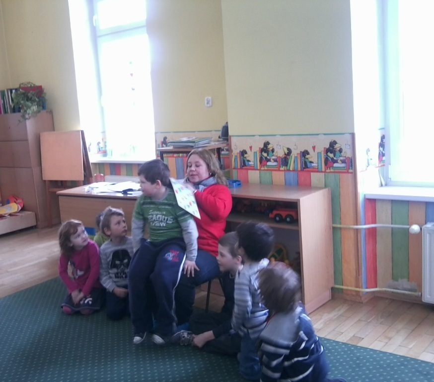 Odwiedziła nas Mama Kuby J. z bajką o „Bobie budowniczym”, Mama Basi , która przeczytałam nam baśń pt.: „Biała kotka”. Była także Mama Kuby K. z historią o Lego Ninjago, po wysłuchaniu której dzieci wzięły udział w krótkim konkursie wiedzy o bohaterach książki.