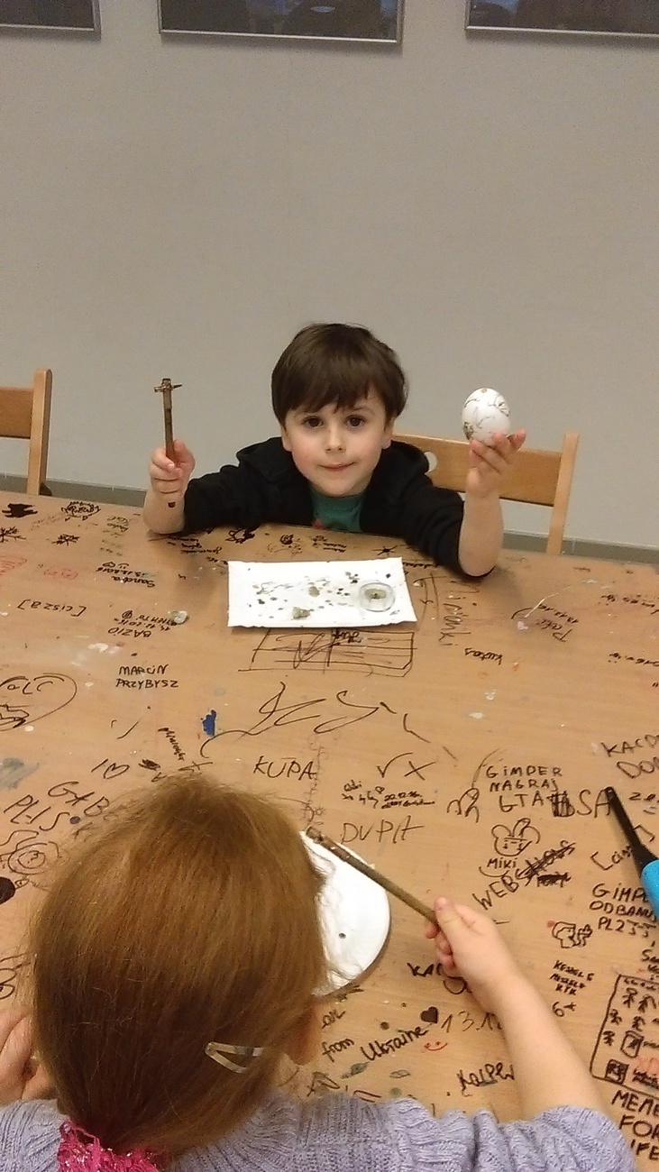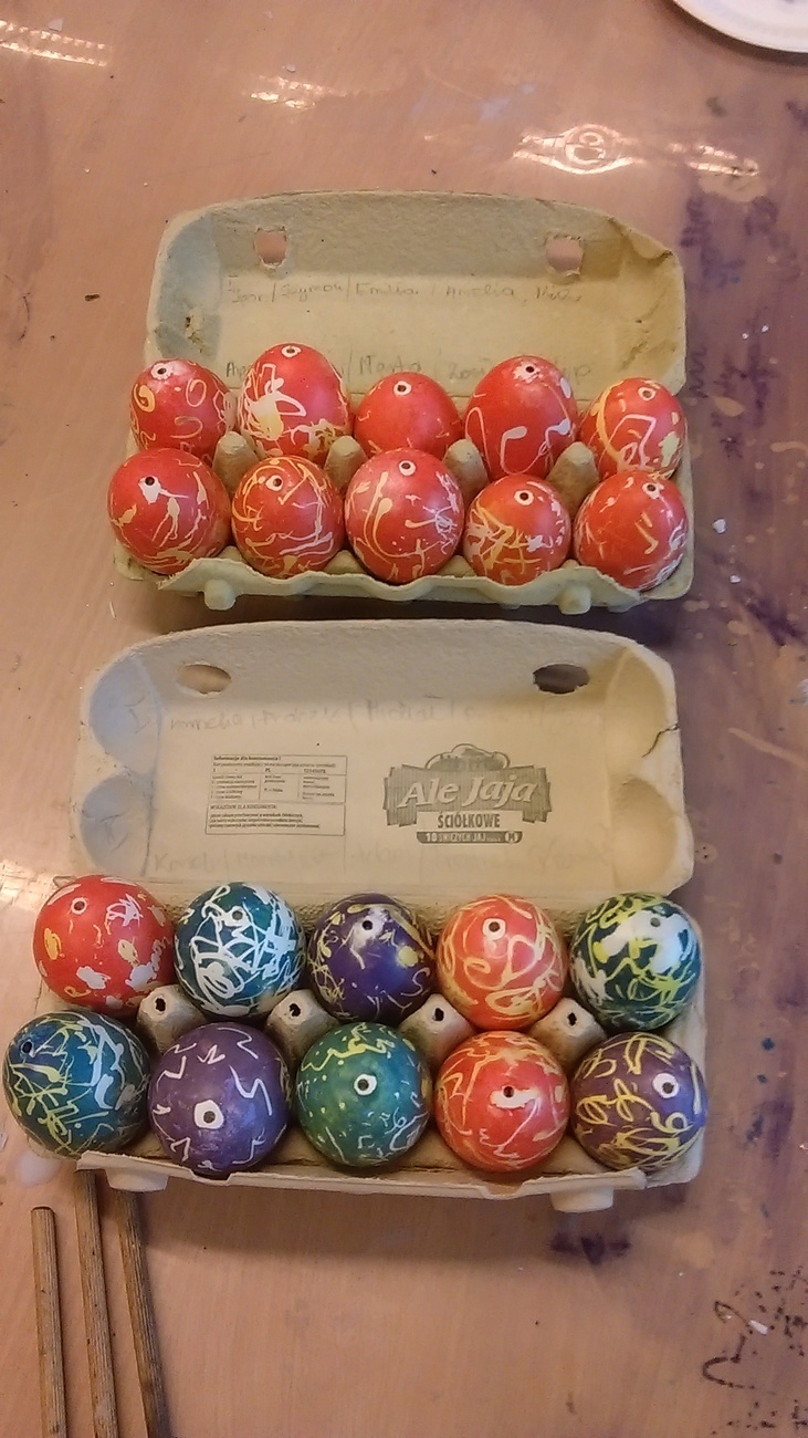 Dzisiaj byliśmy w Muzeum Karkonoskim i uczestniczyliśmy w warsztatach. Malowaliśmy wydmuszki, techniką która nazywa się batik. Pani rozpoczynając warsztaty roztopiła wosk. Później nakładaliśmy woskowy wzór, a następnie barwiliśmy wydmuszki. Czynność tę powtórzyliśmy. Musieliśmy być bardzo ostrożni, bo wosk był bardzo ciepły. Efekty naszej pracy były niesamowite.