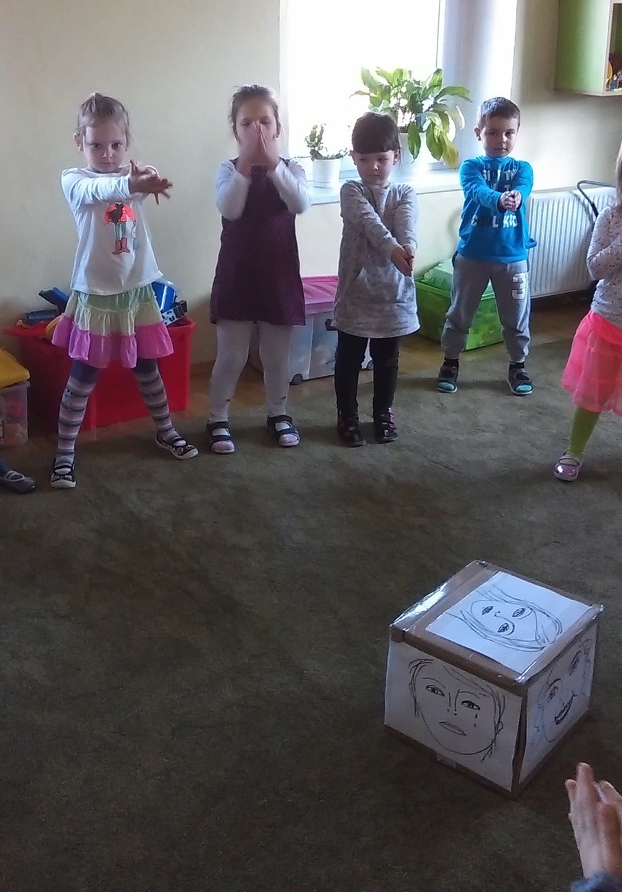 Dziś odbyły się w naszej grupie warsztaty z psychologiem – panią Henią poświęcone emocjom. Na początku zajęć pani Henia pokazała nam kostkę emocji. Następnie każdy z nas wykonał jeden rzut i miał pokazać jak daną emocję można wyrazić. Zajęcia zakończyliśmy rozmową można poradzić sobie w trudnych sytuacjach i jakie emocje nam towarzyszą.