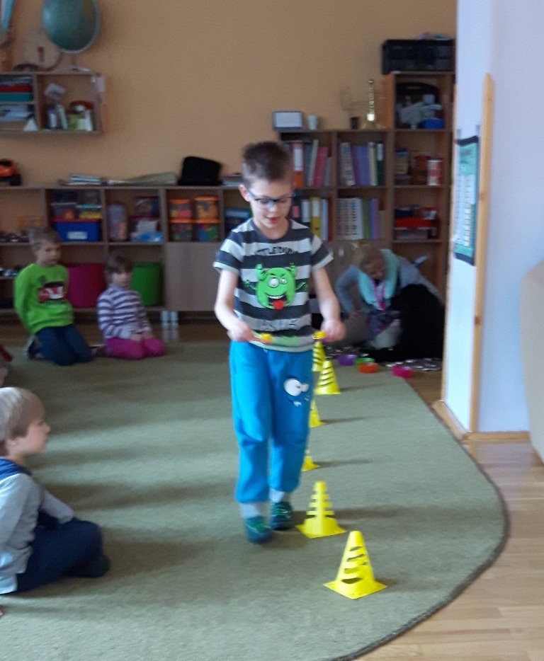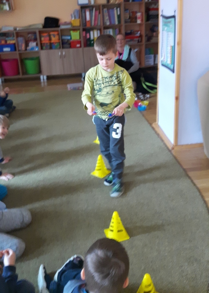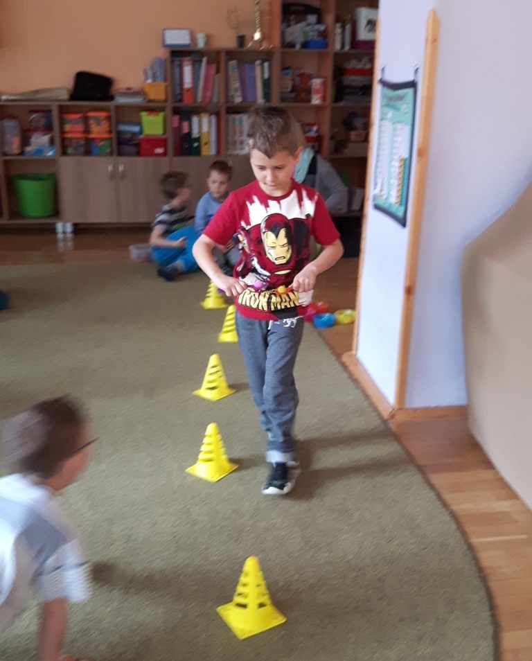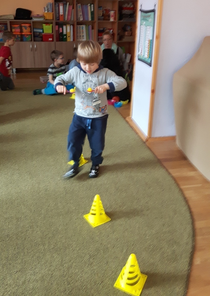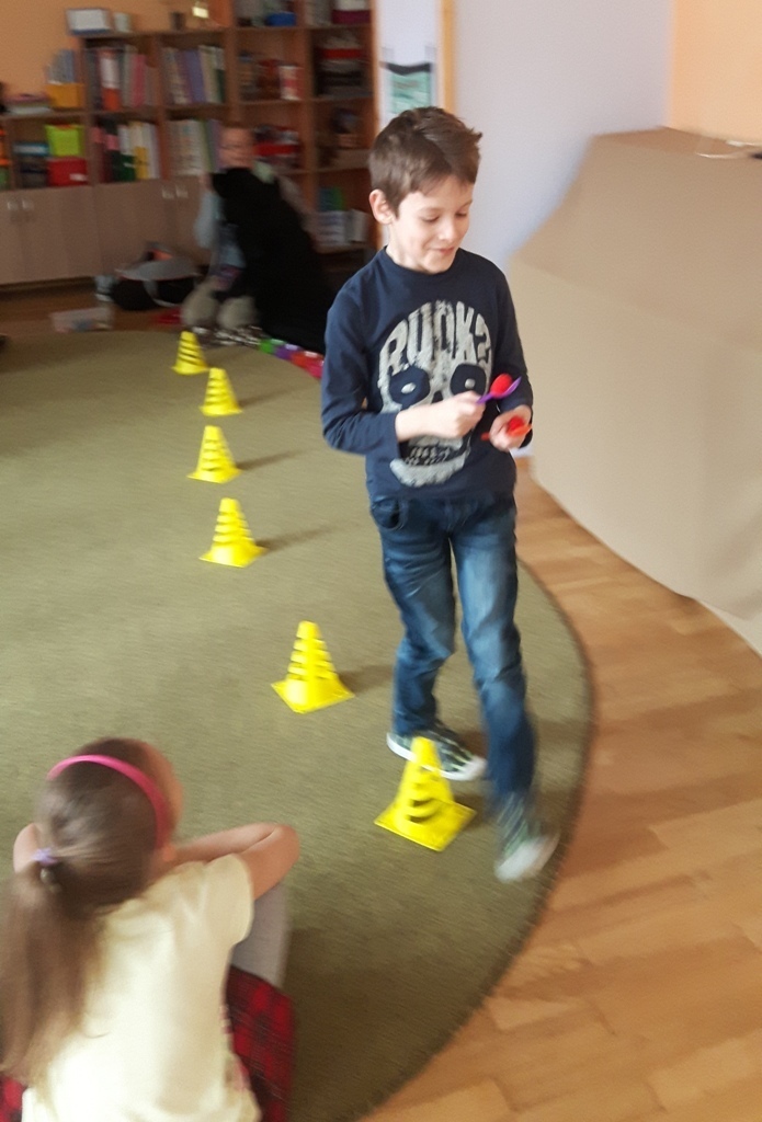 Ukochany przez wszystkie starszaki nowofundland – Lena dziś wyćwiczyła sprawne pokazywanie slalomu. Jednak nie mogło być to zbyt łatwe zadanie, dlatego Zuchy prócz ominięcia przeszkód musiały pilnować pluszowych pomponów spoczywających na łyżeczkach. Zadanie na pozór wydawało się bardzo łatwe, jednak to tylko pozory. Lekkie pompony błyskawicznie spadały z łyżeczek, a umieszczaniu ich z powrotem na łyżeczce, mając zajętą drugą rękę. Zabawy było co niemiara, a wszystkiemu bacznie przyglądała się Lena.