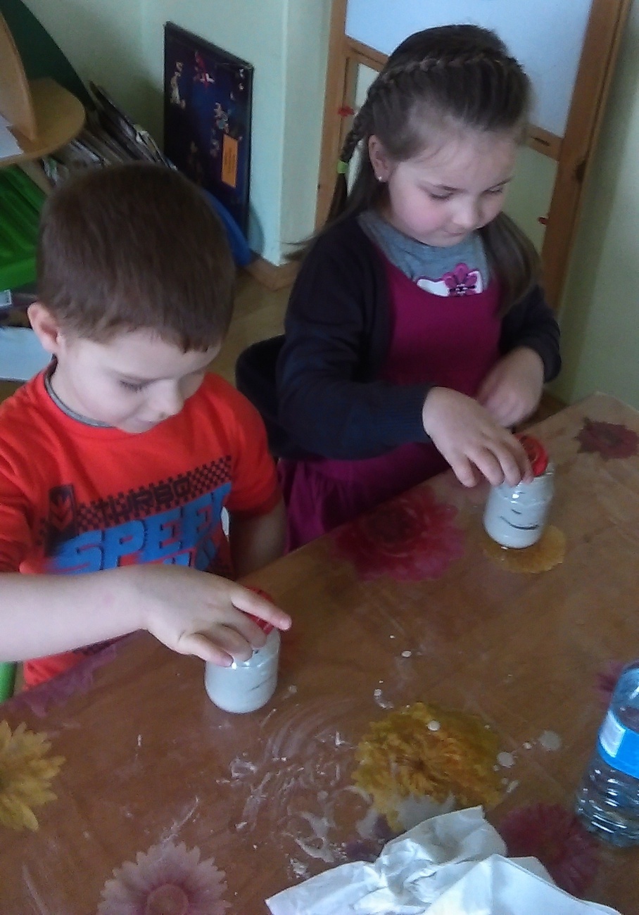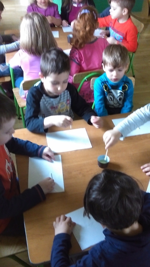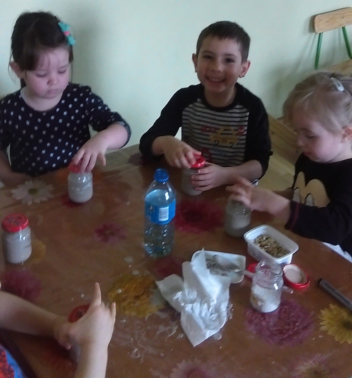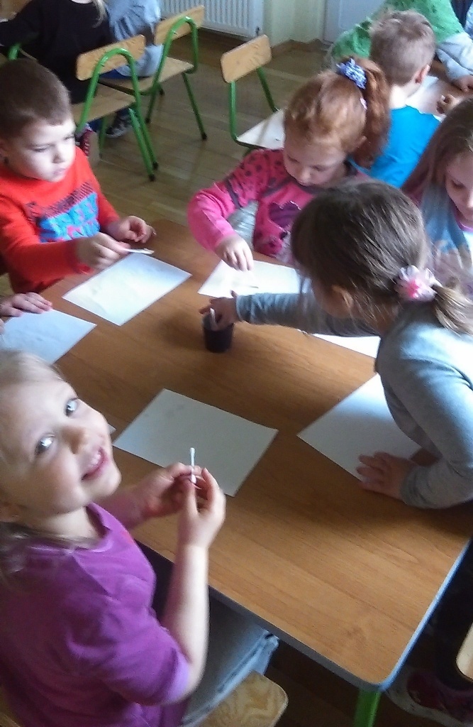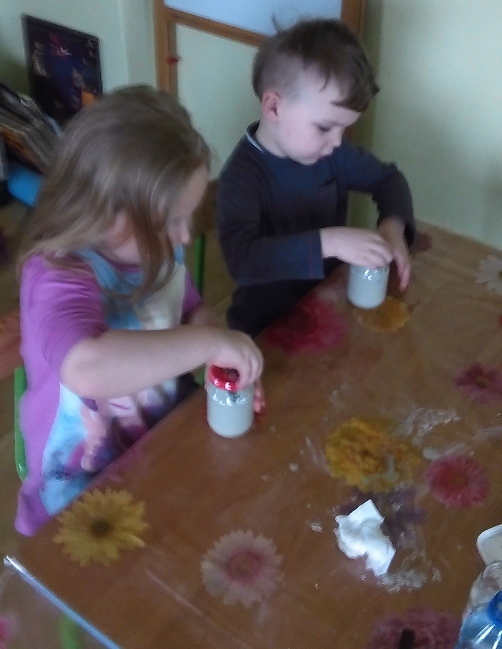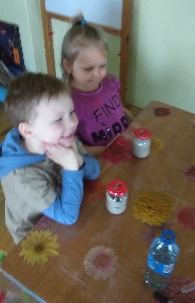 Dzisiaj w przedszkolu zajmowaliśmy się eksperymentami, w których sprawdzaliśmy siłę roślin. Na samym początku sprawdzaliśmy czy rośliny potrafią dochować tajemnicy - pisaliśmy zaszyfrowane wiadomości przy pomocy soku z cytryny przez cały dzień nie udało nam się zobaczyć jaką wiadomość napisali koledzy/. Następnie próbowaliśmy wyciągać chlorofil z trawy. W tym celu wykorzystaliśmy trzy płyny: woda, rozpuszczalnik, alkohol z apteki oraz kredę, która miała tle ten zielony kolor "przejąć": okazało się, że tylko alkohol potrafi oddzielić chlorofil. W ostatnim eksperymencie umieściliśmy ziarna fasoli w słoikach i zalaliśmy je gipsem. Jednak na wynik tego eksperymentu będziemy musieli cierpliwie poczekać, dlatego zabraliśmy nasze fasolki do domów.