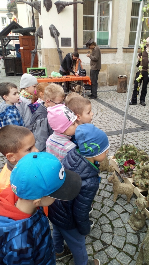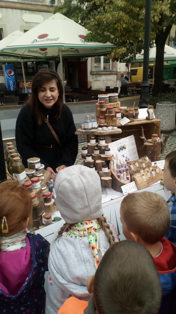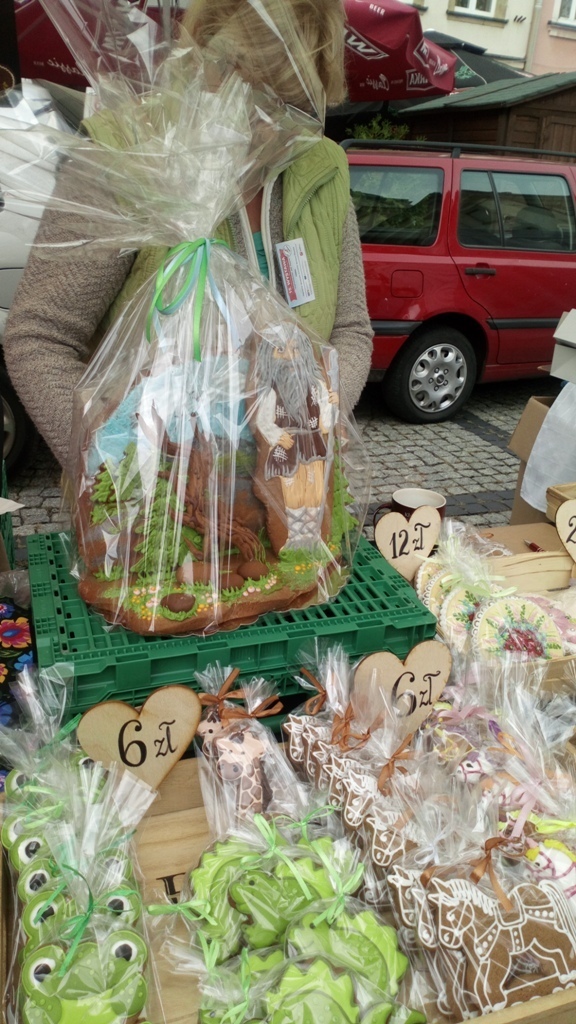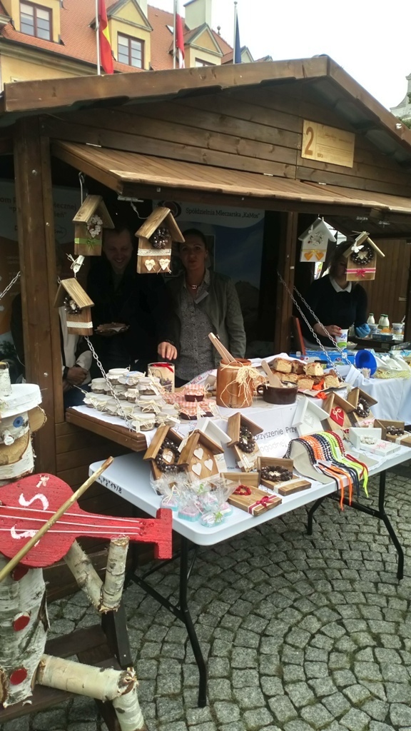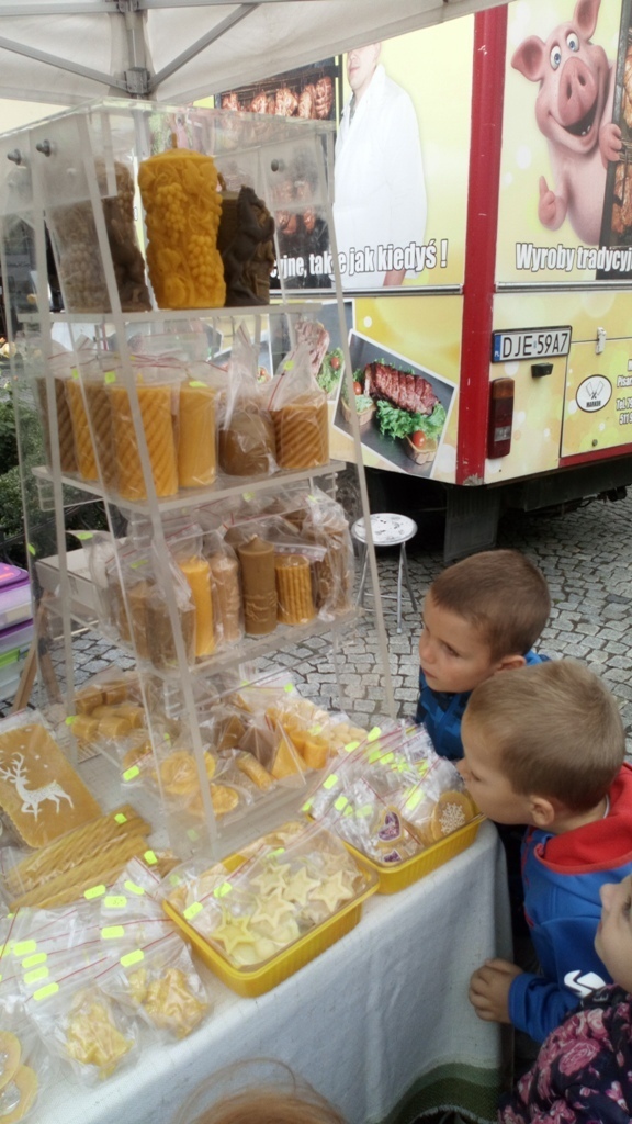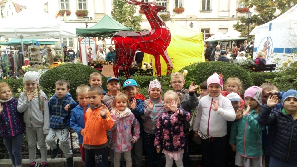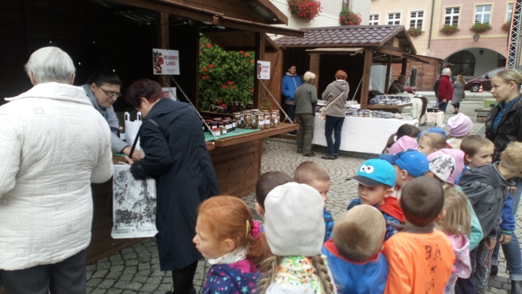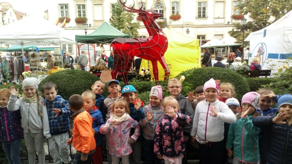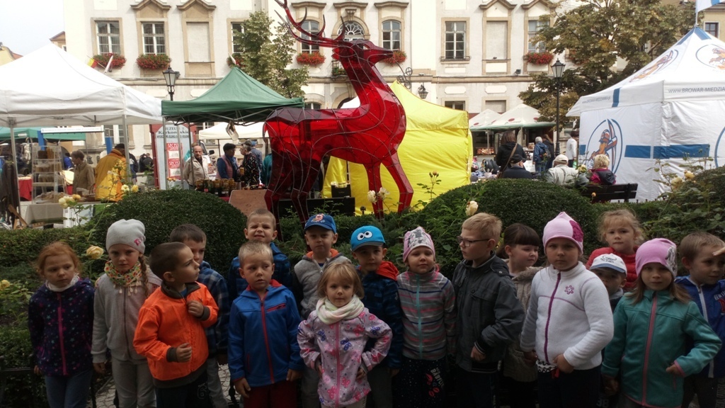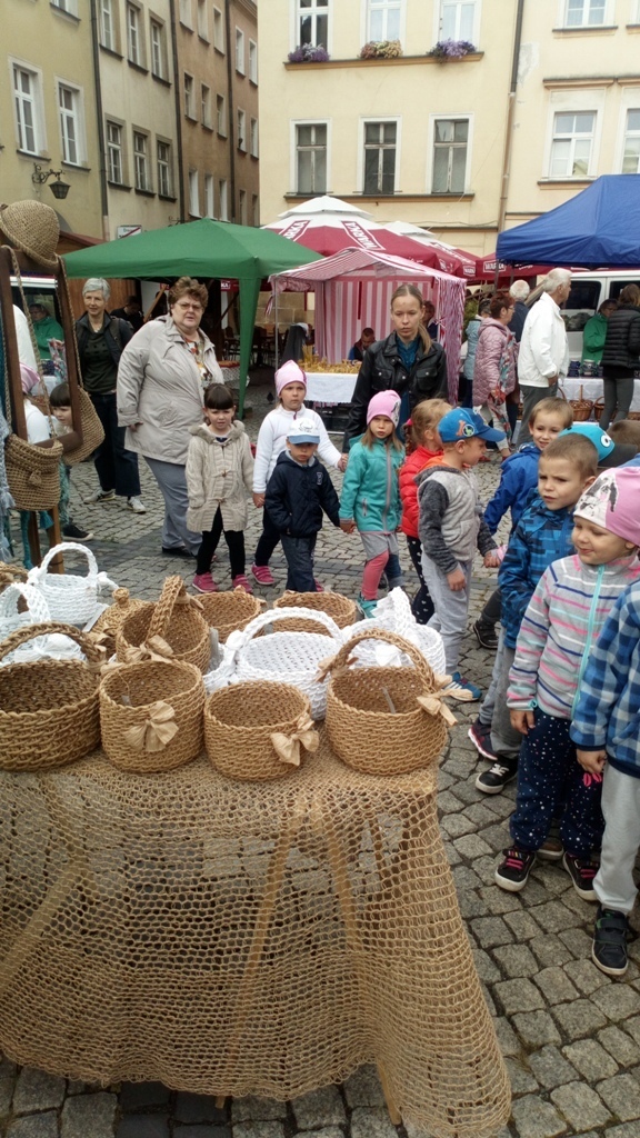 Dzisiaj wybraliśmy się na Plac Ratuszowy. Pani powiedziała nam, że odbędzie się tam wystawa produktów regionalnych. Mieliśmy okazję zobaczyć ręcznie wykonane koszyki i kosze, zdobione pierniki, czy stare urządzenie do krojenia chleba. Najciekawiej jednak o swoich produktach opowiadała pani, która prezentowała na wystawie: kremy, pomadki, toniki wykonane z różnych roślin i ziół. Były nawet pasty do zębów, które wcale nie były białe. Na zakończenie naszej wycieczki wysłuchaliśmy hejnału, który jest grany tylko we wrześniu.