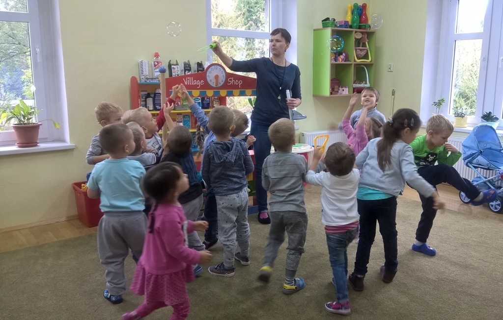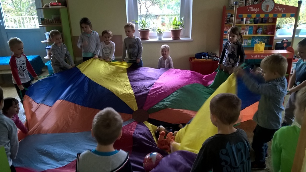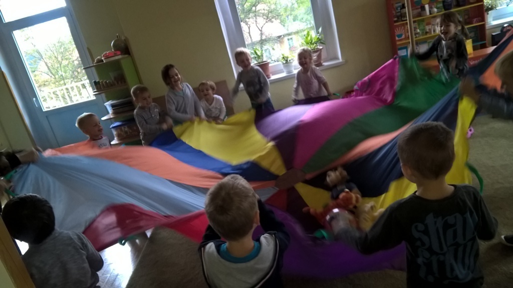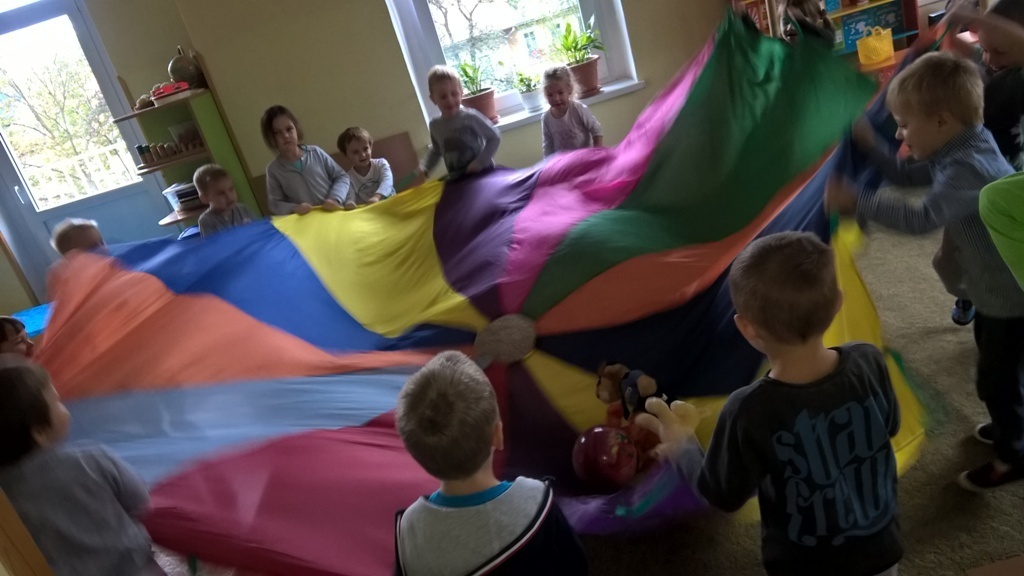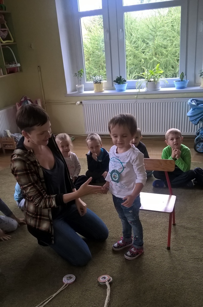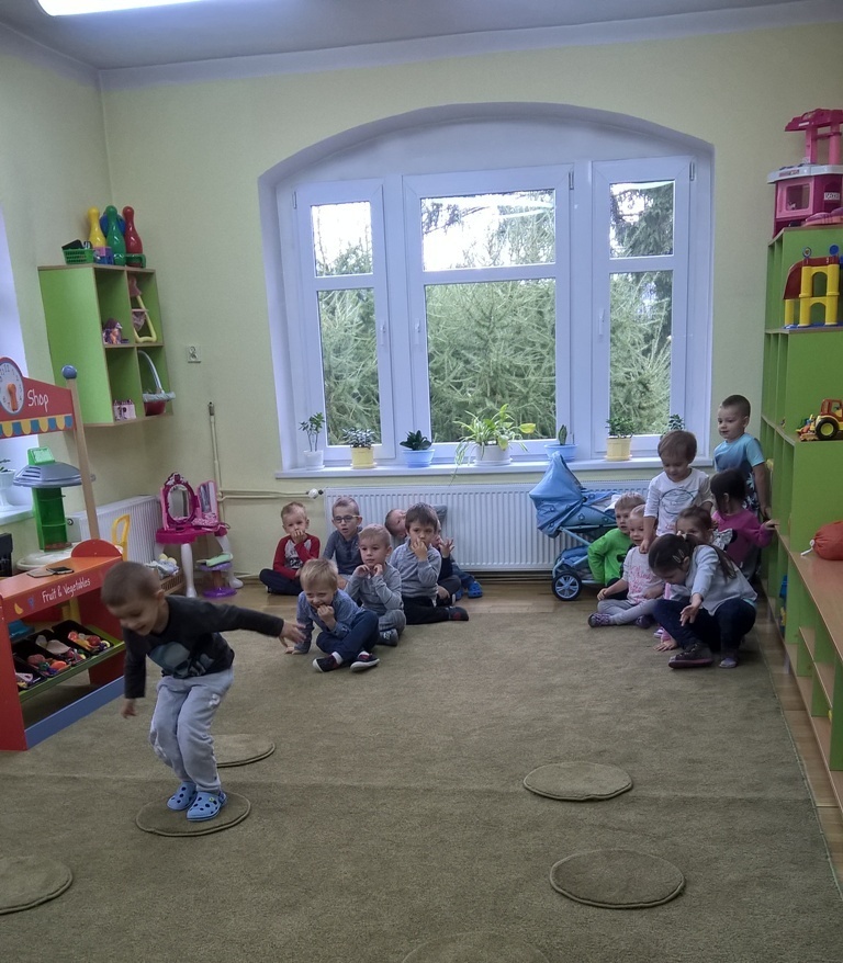 W Dzień Przedszkolaka Smyki podjęły aktywną walkę z jesiennym przesileniem. Aby przemóc upadek nastroju spowodowany brzydką pogodą Pani urządziła zawody sportowe. Zaczęliśmy od puszczania Wielkich baniek na czas, potem był tor przeszkód, przenoszenie jajka na łyżce, przechodzenie przez tunel oraz tańce wygłupiań-ce. Okazało się, że jesteśmy wszyscy w niezłej formie. Każdy z nas zasłużył na medal. W zdrowym ciele, zdrowy duch!