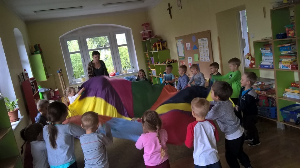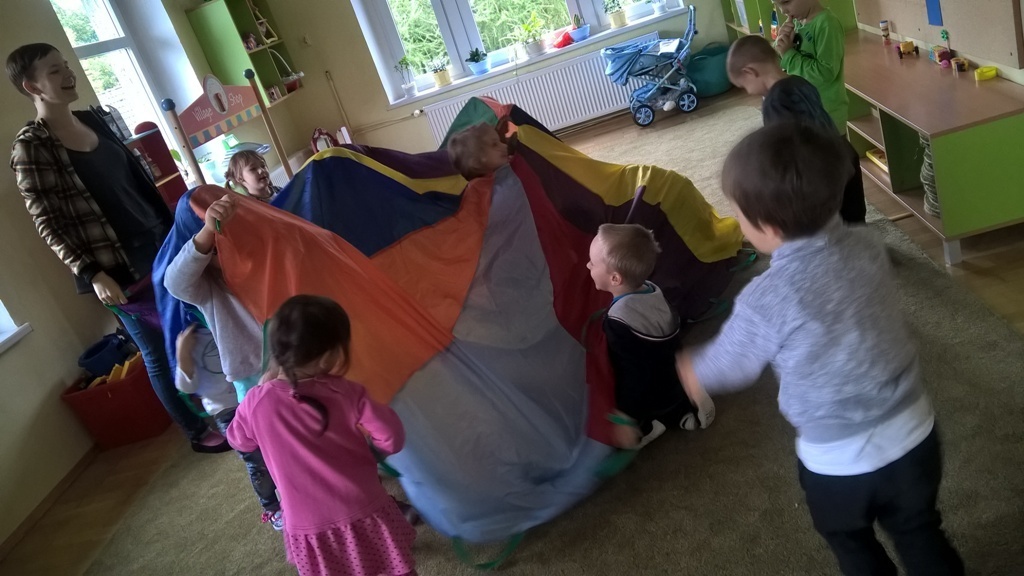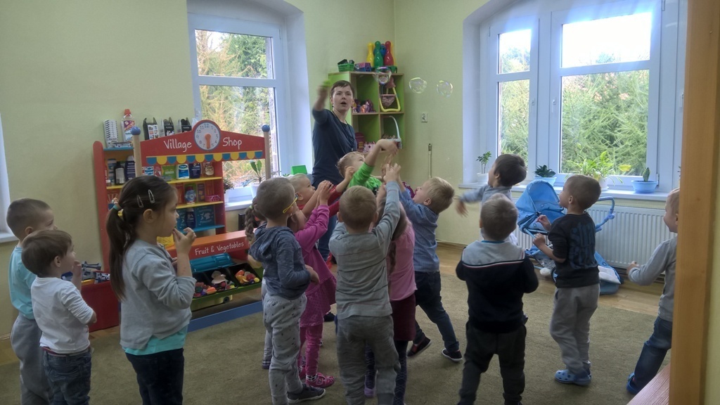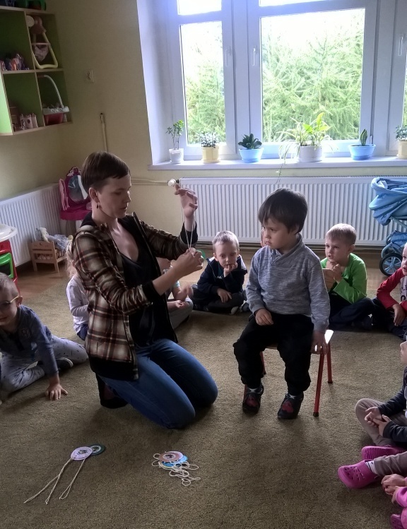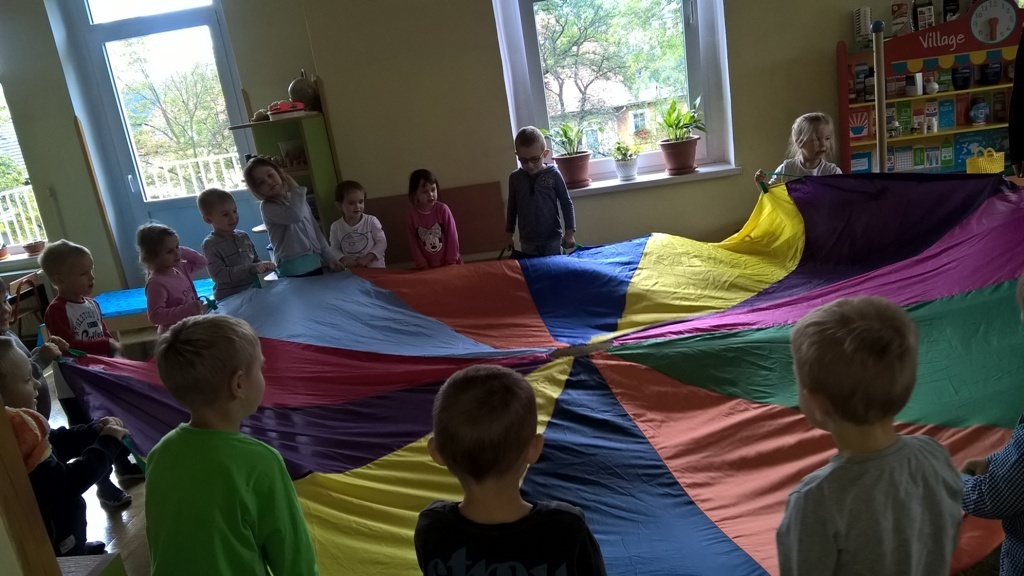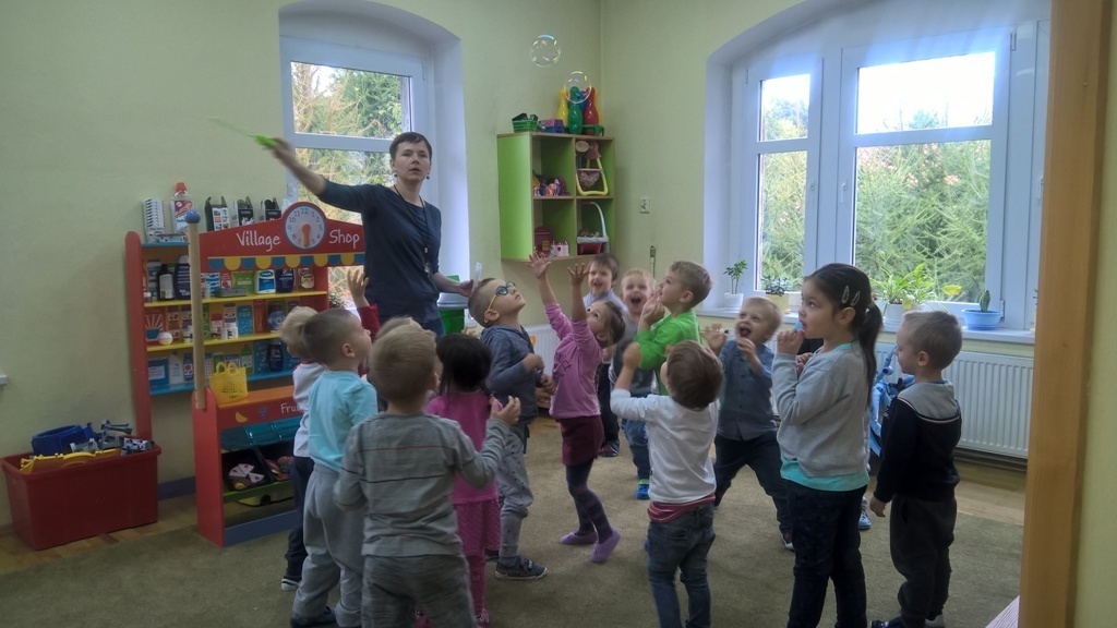 W Dzień Przedszkolaka Smyki podjęły aktywną walkę z jesiennym przesileniem. Aby przemóc upadek nastroju spowodowany brzydką pogodą Pani urządziła zawody sportowe. Zaczęliśmy od puszczania Wielkich baniek na czas, potem był tor przeszkód, przenoszenie jajka na łyżce, przechodzenie przez tunel oraz tańce wygłupiań-ce. Okazało się, że jesteśmy wszyscy w niezłej formie. Każdy z nas zasłużył na medal. W zdrowym ciele, zdrowy duch!