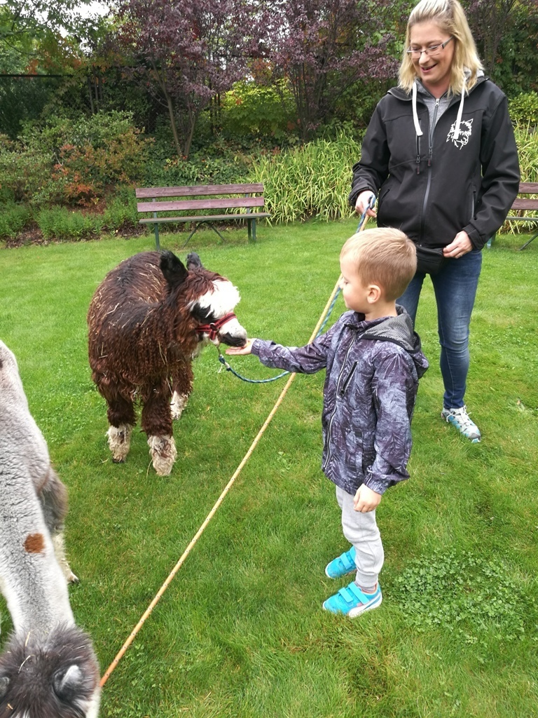22 września do starszaków zawitali nasi starzy przyjaciele: Alpaki. W zeszłym roku nasze spotkania odbywały się cyklicznie, a i w tym roku szkolnym będziemy się widywać. Dzieci ochoczo brały udział w zajęciach i wykonywały wszystkie zadania. Najwięcej radości sprawiło im karmienie i przytulanie zwierząt. Za każdym razem dowiadujemy się o nich czegoś nowego i zaskakującego i to właśnie podoba nam się w nich najbardziej.