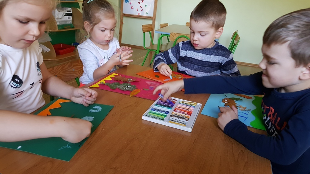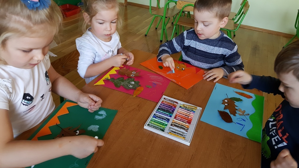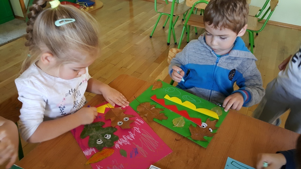 Wykorzystując znalezione podczas wycieczki do parku jesienne skarby wykonywaliśmy dziś pracę plastyczną. Ze znalezionych wcześniej i wysuszonych liści, gałązek, szyszek tworzyliśmy barwne kompozycje, cudaczne ludziki i bajkowe zwierzęta.