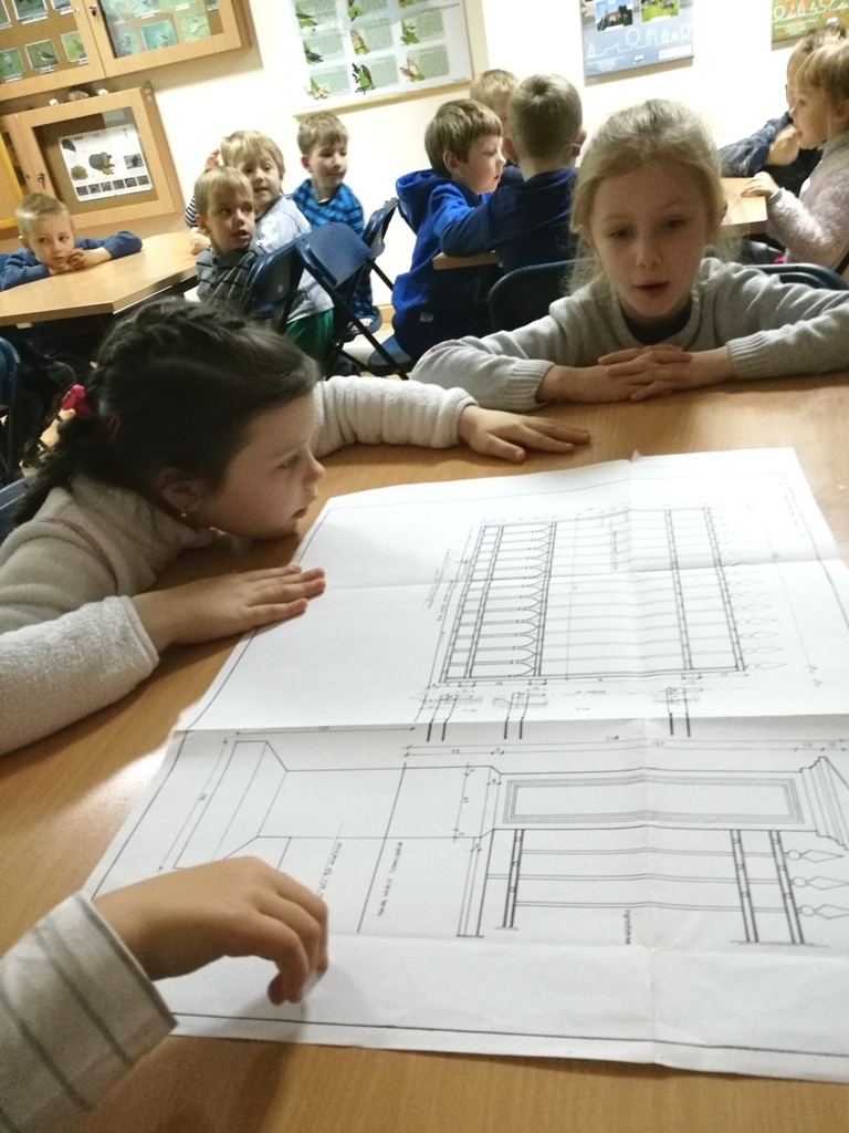 Dzieci z gr.V zaplanowały wycieczkę do DZPK w Sobieszowie na zajęcia edukacyjne pt. „ Mali architekci". Na samym początku spotkania dowiedzieliśmy się, że będziemy rozmawiać o architekturze krajobrazu, o tym czym rożni się park od ogrodu i na czym polega projektowanie takiego miejsca. W trakcie zajęć oglądaliśmy zdjęcia parków i ogrodów z całego świata - w stylu hiszpańskim i angielskim. Mogliśmy podziwiać wspaniałe labirynty stworzone z różnego rodzaju krzewów, a także marmurowe posągi i pomniki ustawione w ogrodach. Pod koniec spotkania pan Adrian przygotował dla nas niespodziankę, przyniósł nam do pokazania swoje projekty terenów zielonych. Byliśmy pod ogromnym wrażeniem ilości pracy jaką trzeba włożyć, by stworzyć taki projekt. Na planie zaznaczone były wszystkie drzewa, krzewy rośliny znajdujące się w danym parku. Rysunki były wykonane w bardzo szczegółowy sposób i wszyscy byliśmy przekonani, że jest to projekt wykonany komputerowo. Na zakończenie zajęć otrzymaliśmy plansze z elementami architektury ogrodu, parku tak byśmy mogli sami stworzyć swój wymarzony ogród. Wracając do przedszkola każdy z nas obmyślał jak będzie wyglądał jego projekt.